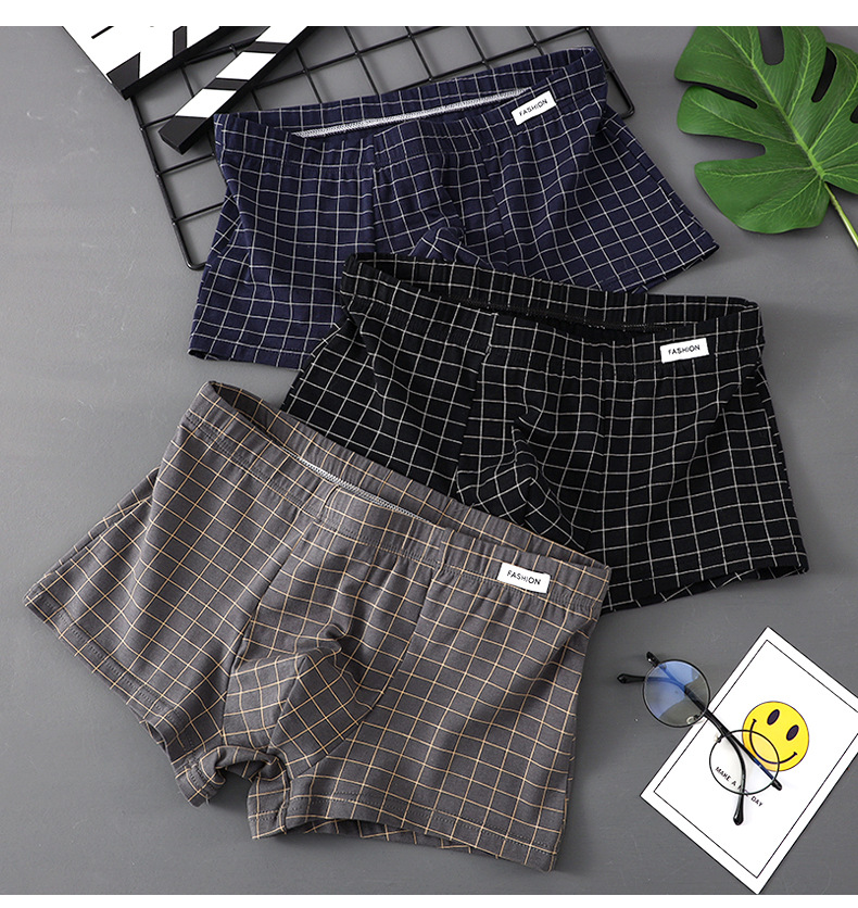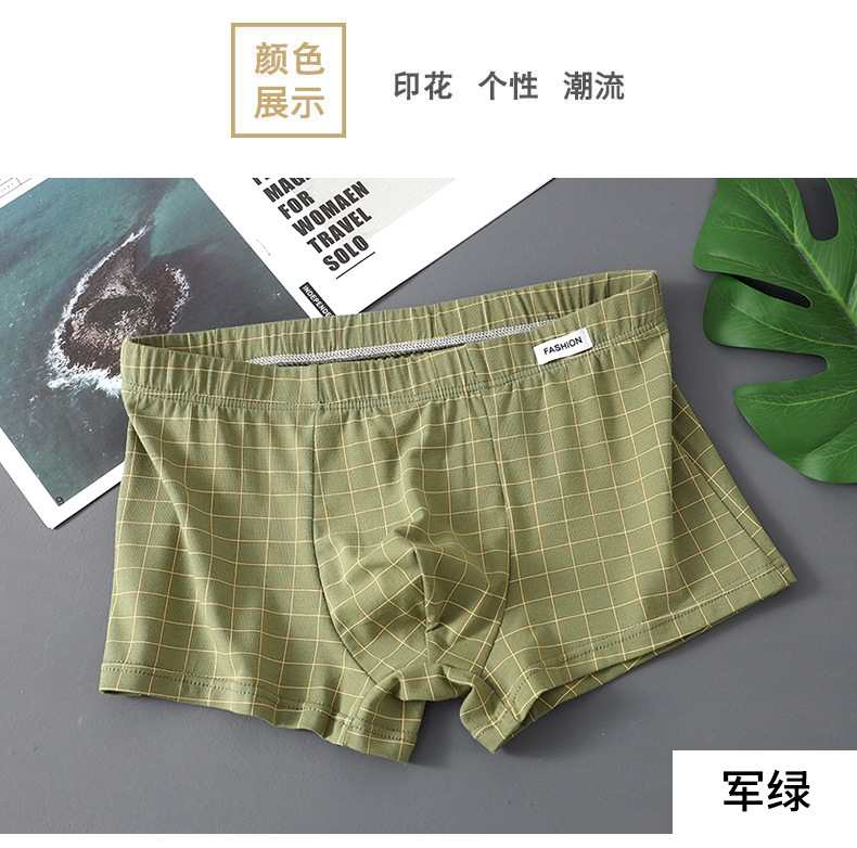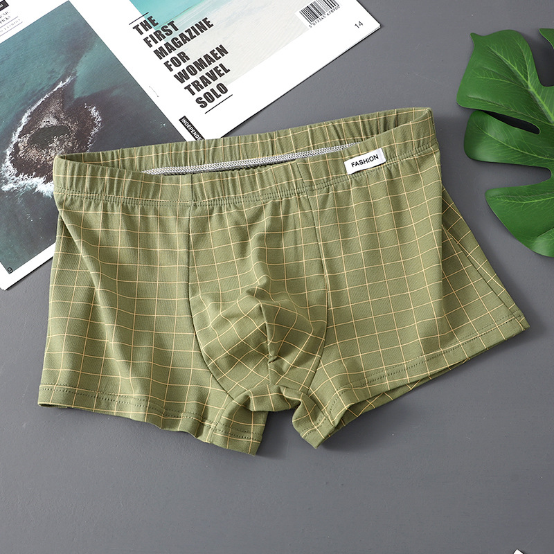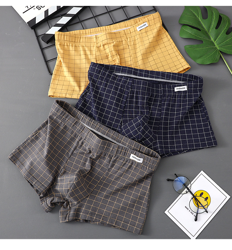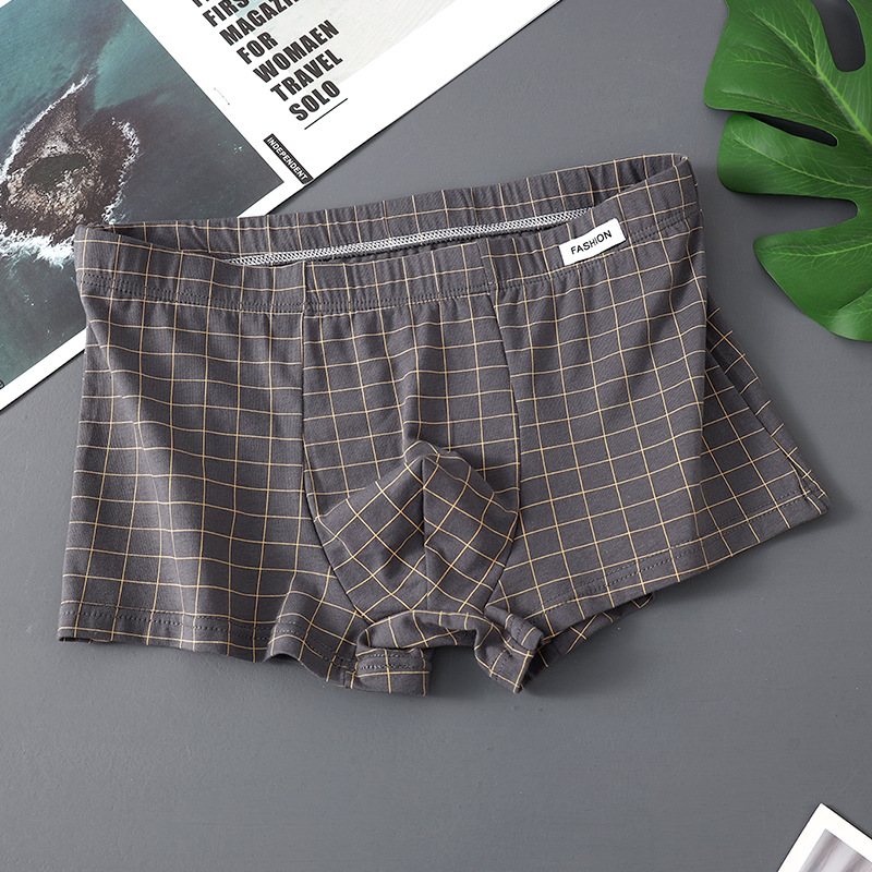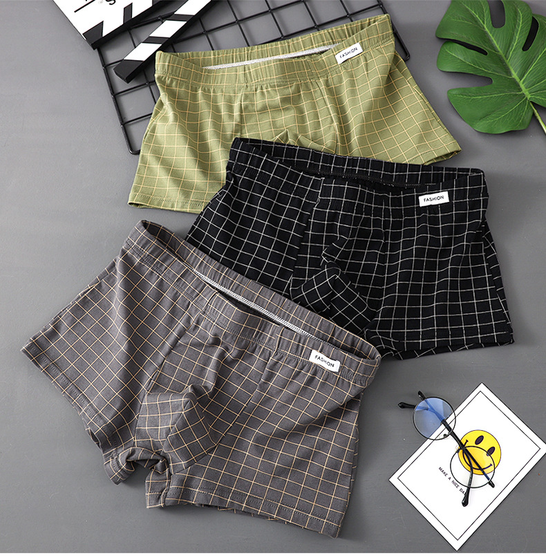 공장 도매 격자 무늬 남성용 속옷 남성용 면화 복서 반바지 어린 소년 복서 반바지 머리 바지 세대 머리카락스토어 가기