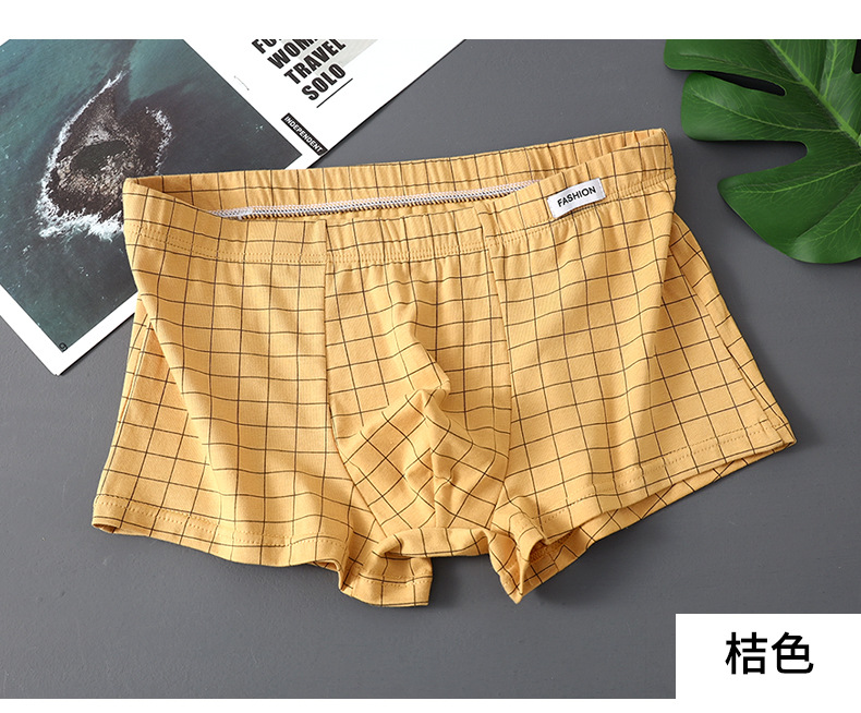 공장 도매 격자 무늬 남성용 속옷 남성용 면화 복서 반바지 어린 소년 복서 반바지 머리 바지 세대 머리카락