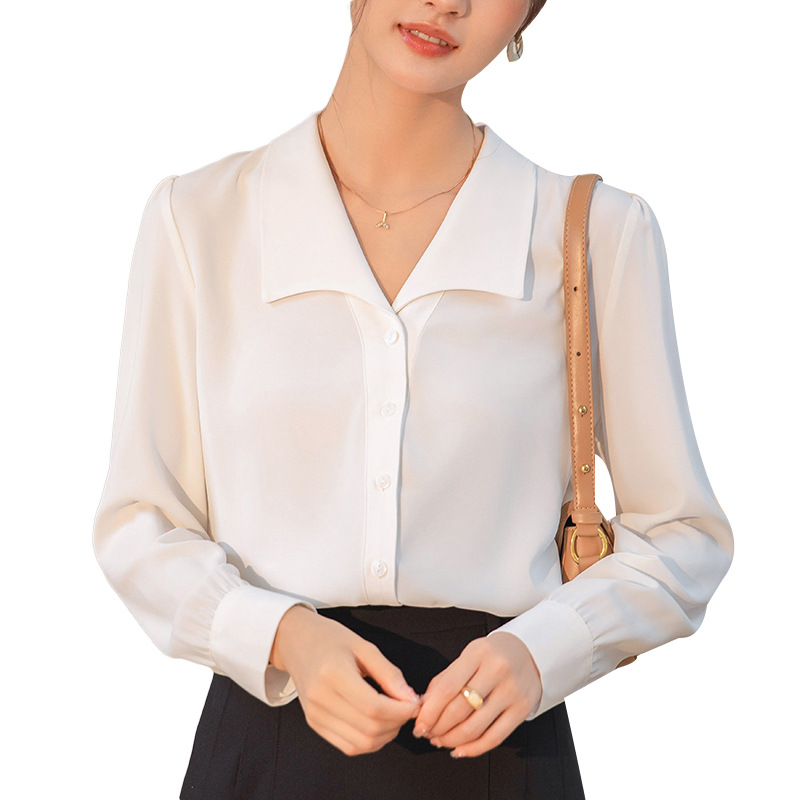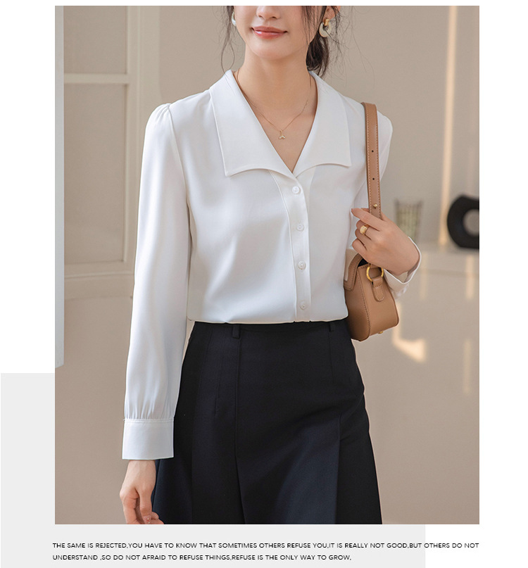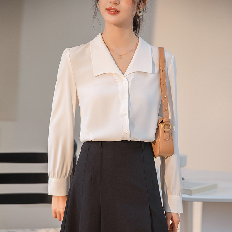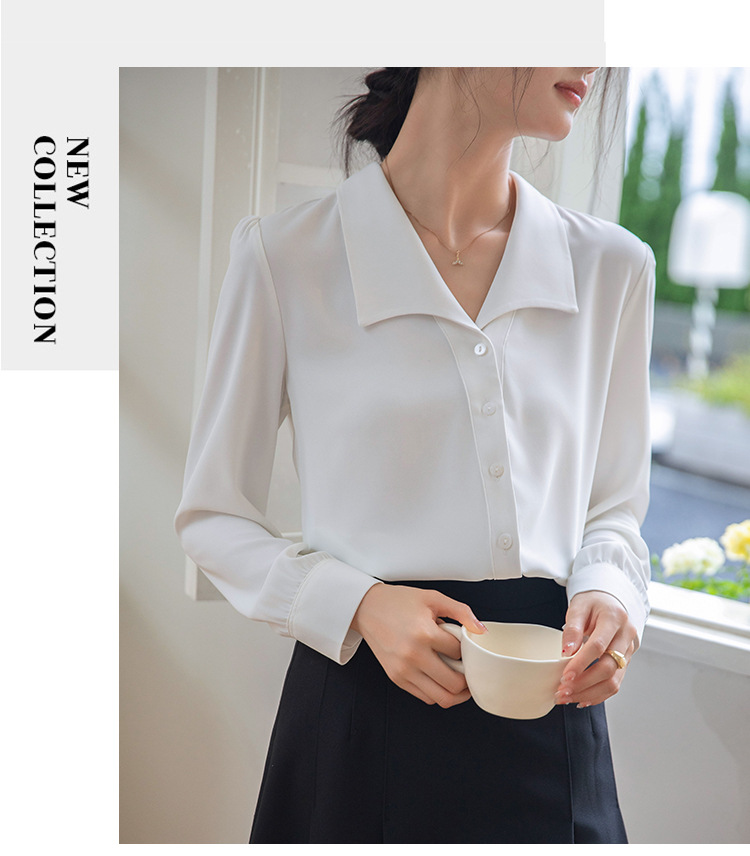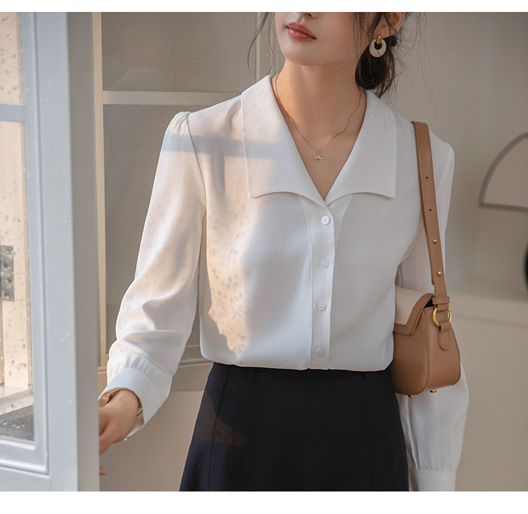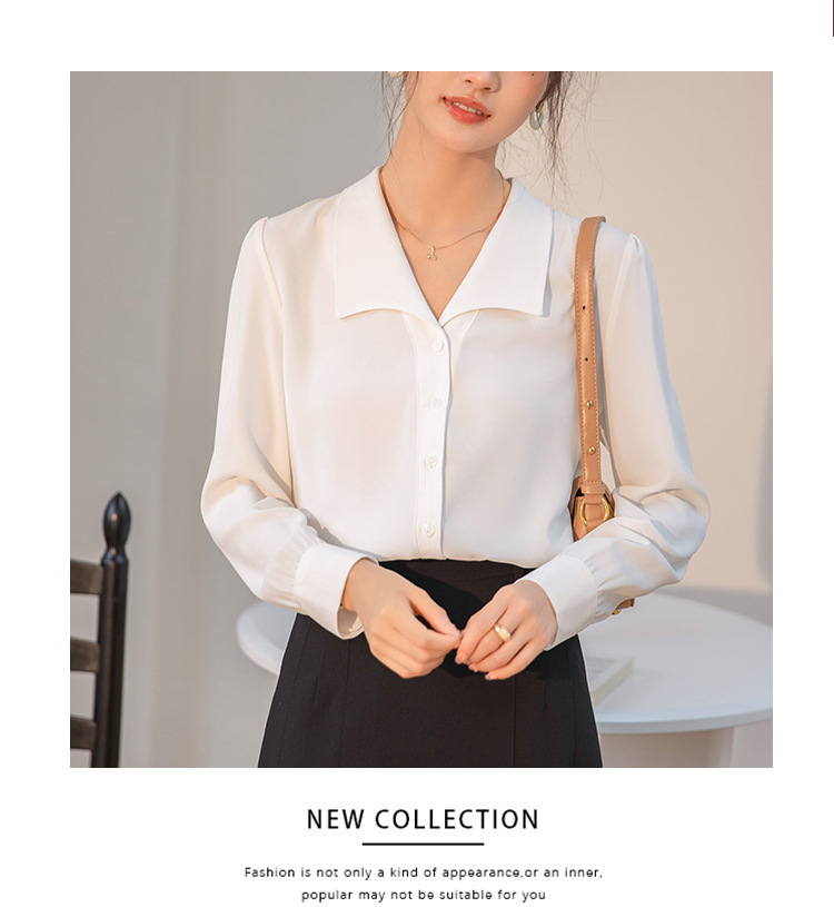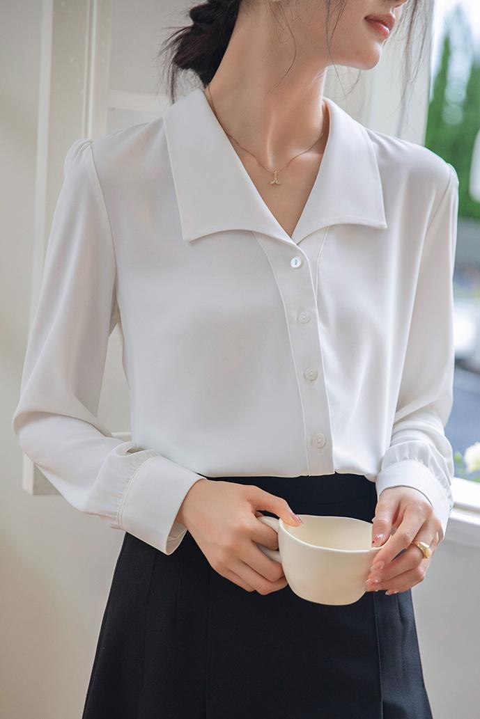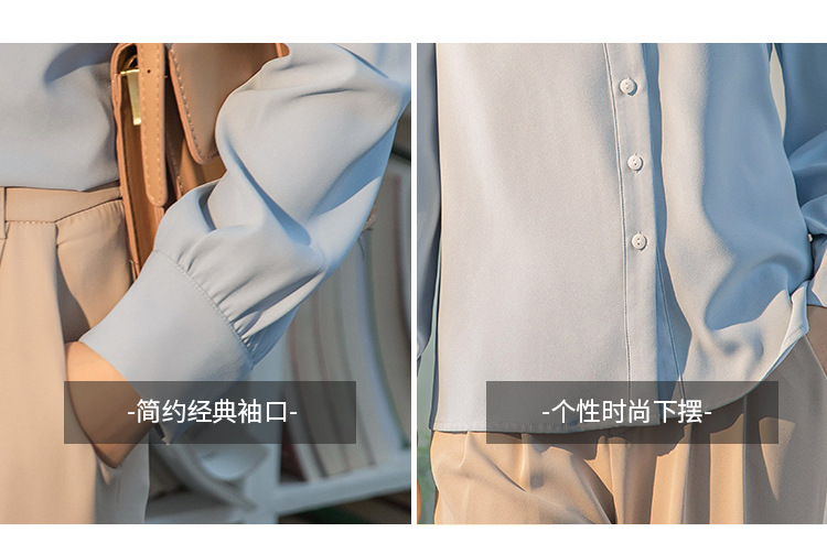 2024 리얼 샷 새로운 블루 긴 소매 셔츠 여성의 가을 경력 통근 셔츠 프랑스 최고 인터뷰 셔츠스토어 가기