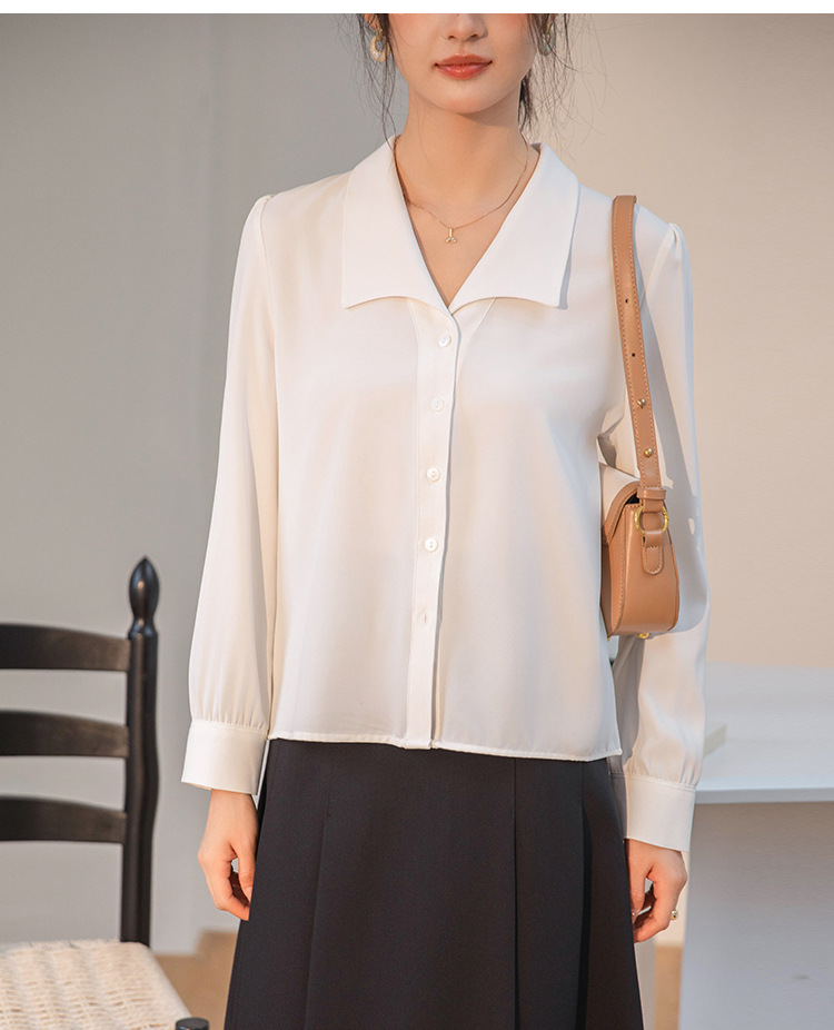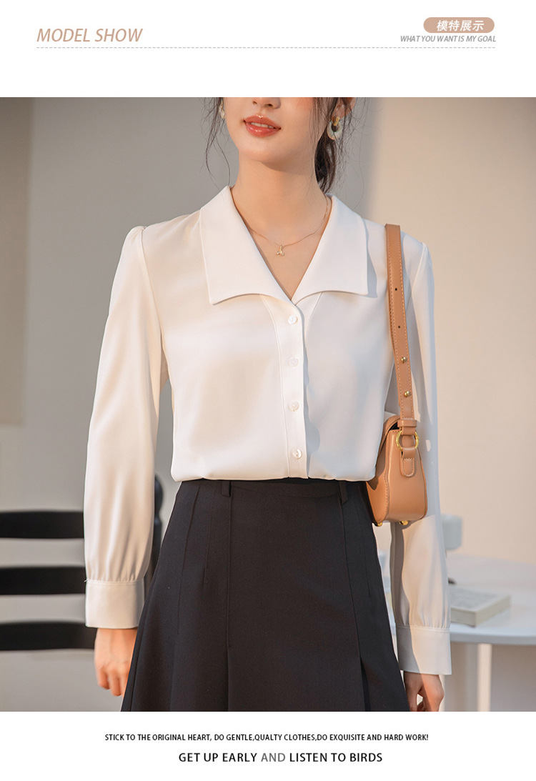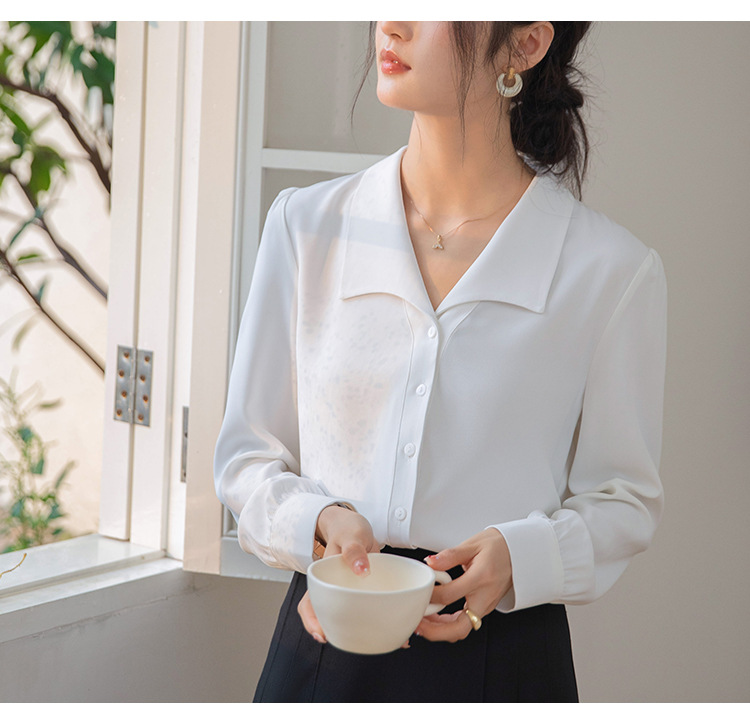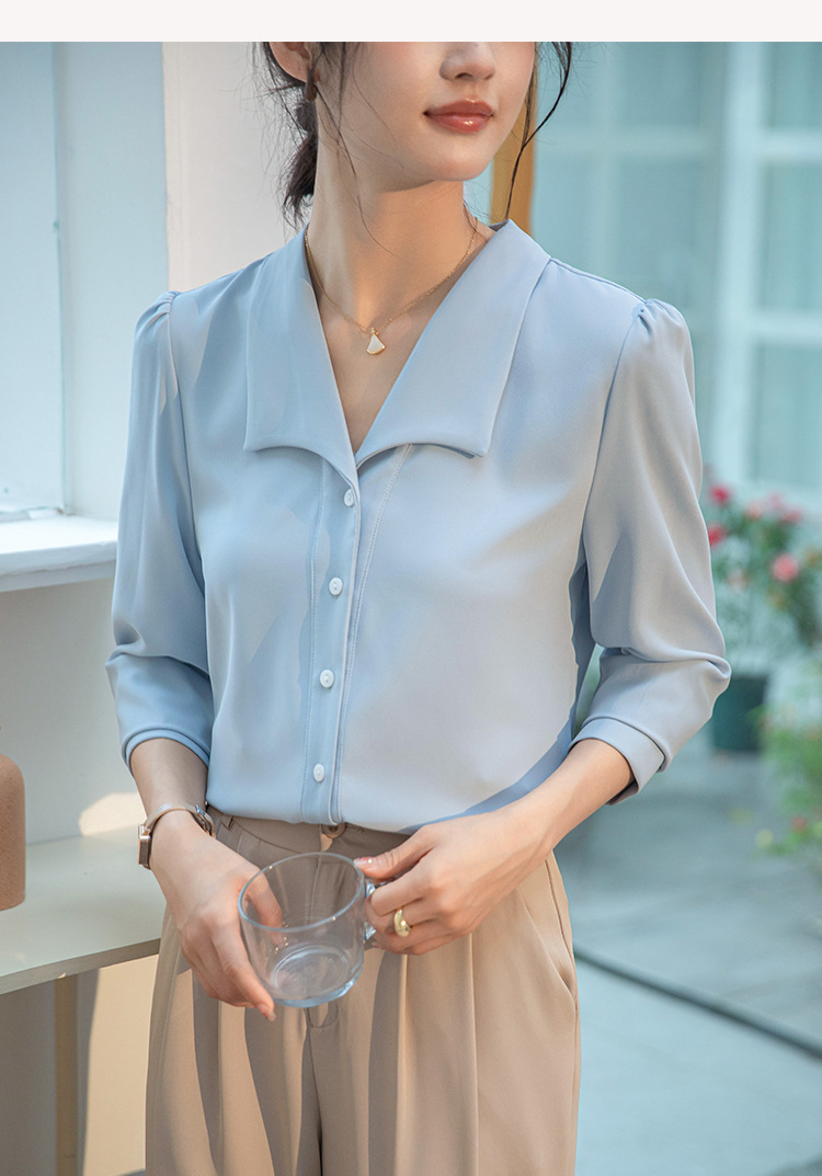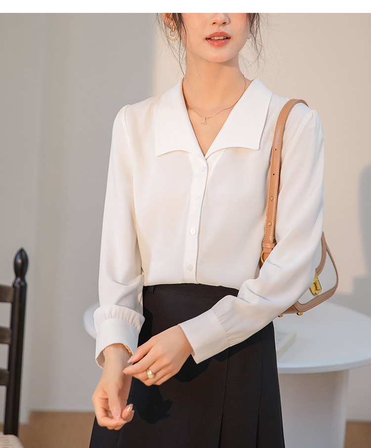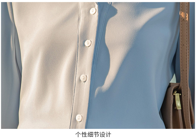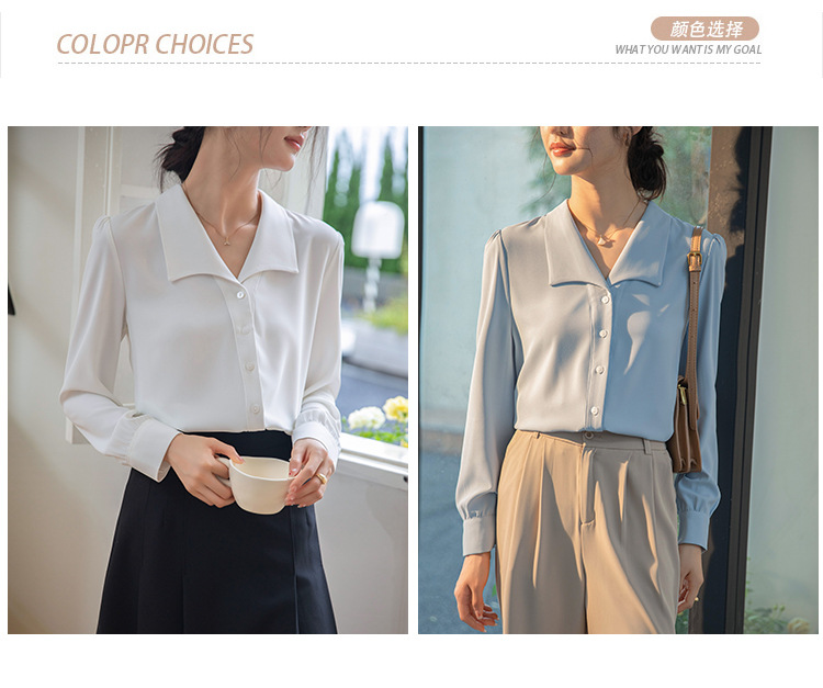 2024 리얼 샷 새로운 블루 긴 소매 셔츠 여성의 가을 경력 통근 셔츠 프랑스 최고 인터뷰 셔츠스토어 가기