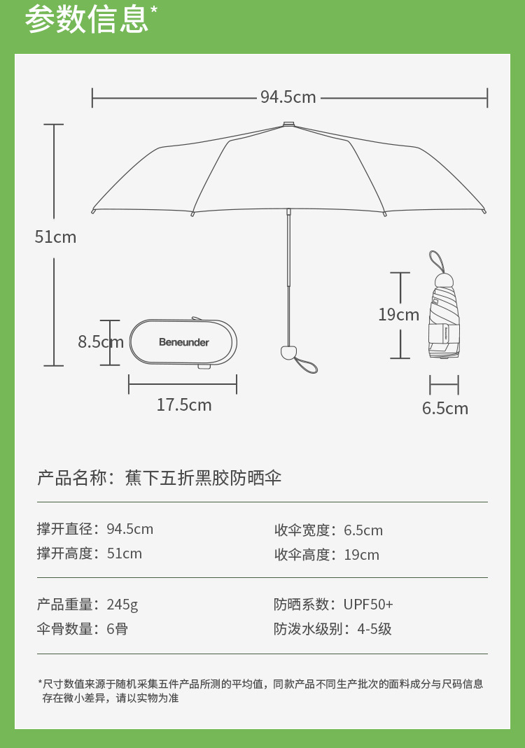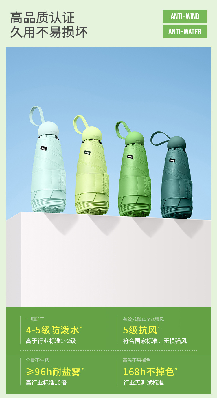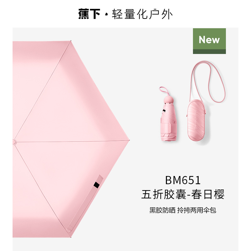 바나나캡슐 파라솔 BM525 자외선 차단 휴대용 접이식 우산, 햇빛과 비 모두 사용 가능스토어 가기
