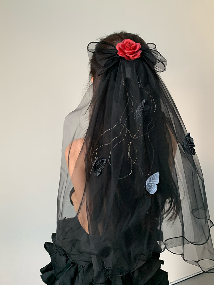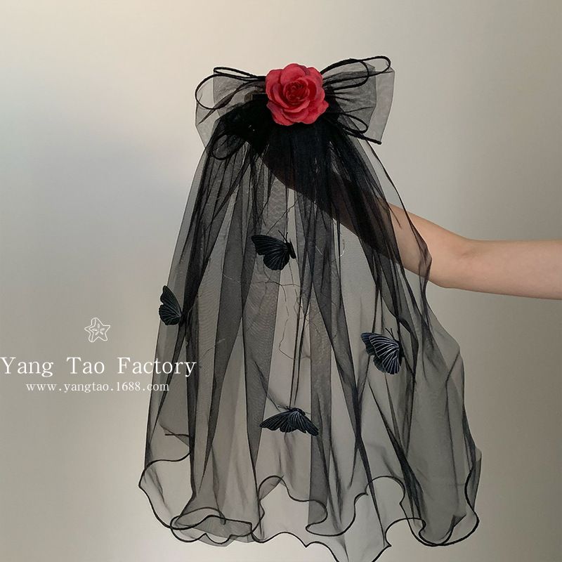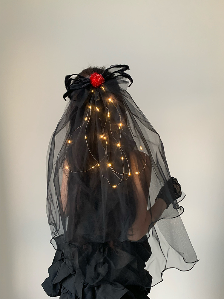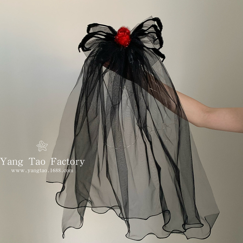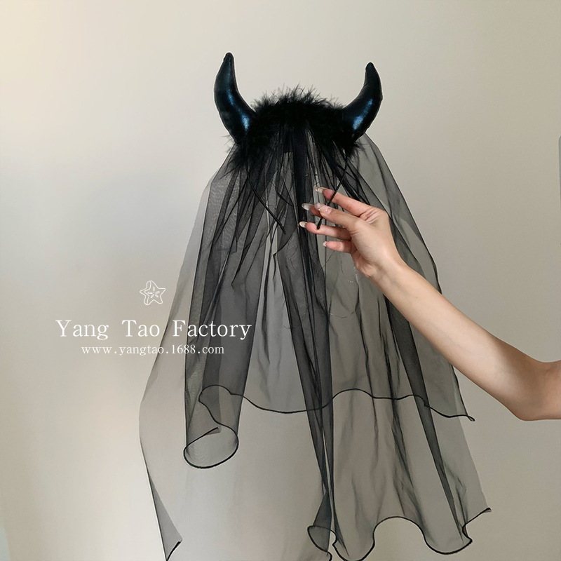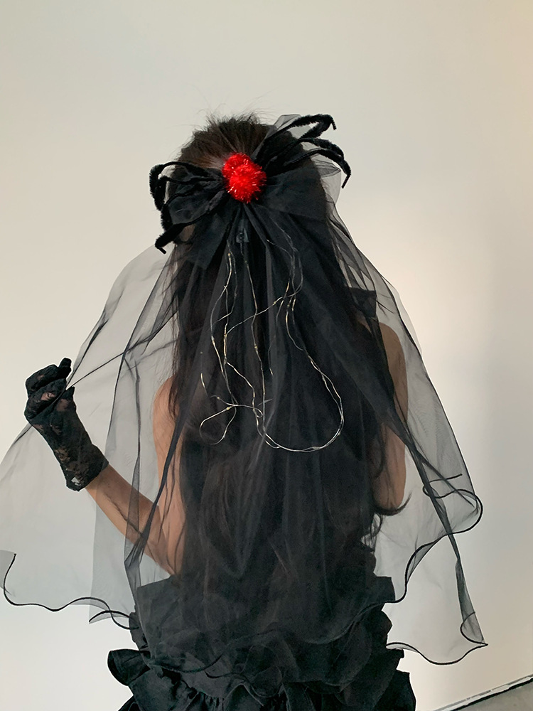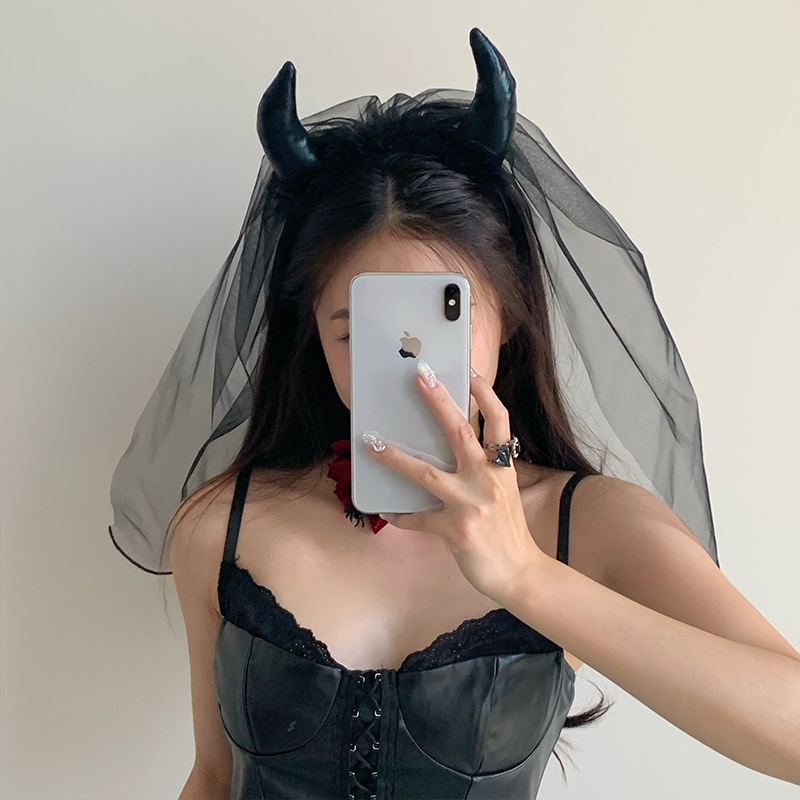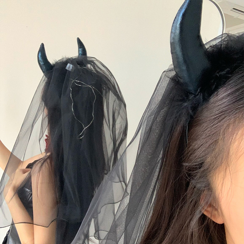2024 새로운 할로윈 헤드웨어 어두운 악마 신부 베일 블랙 웃긴 원피스 사진 소품스토어 가기