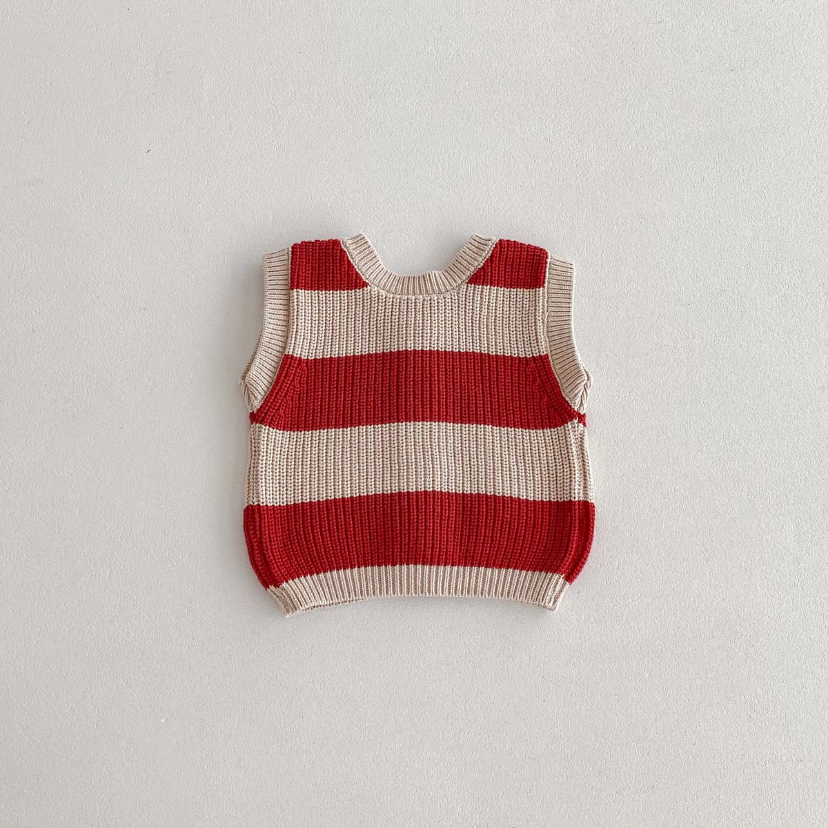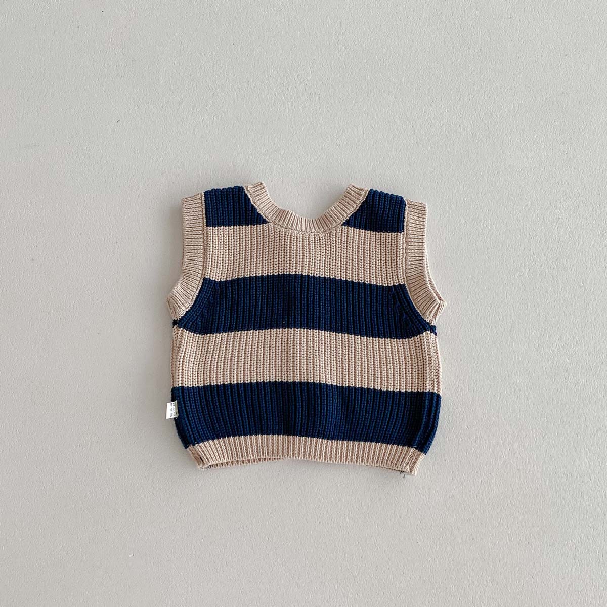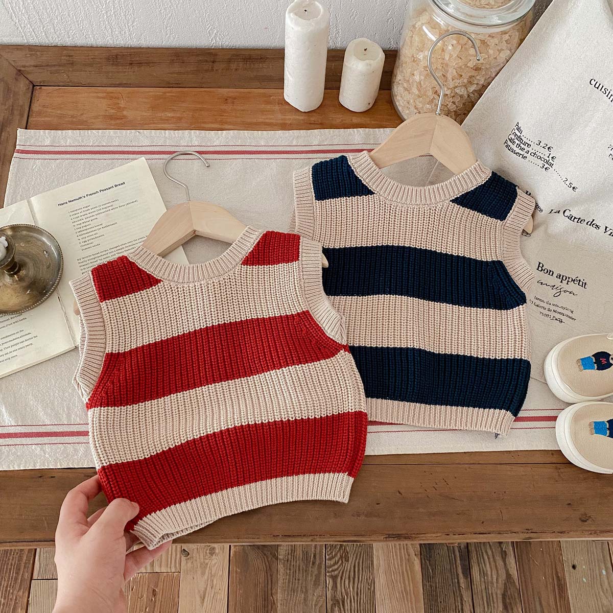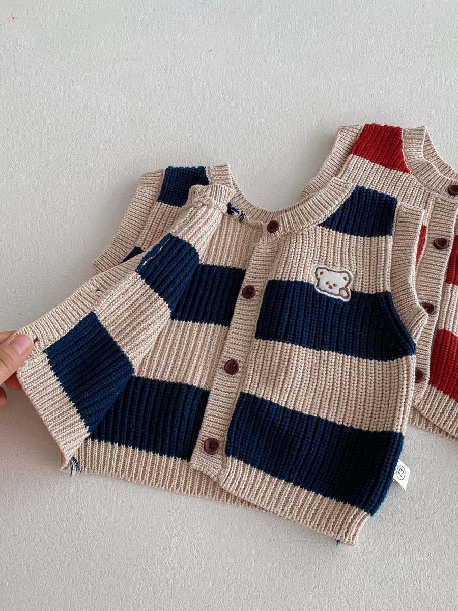 한국 스타일 아동복 아기 가을 새 줄무늬 곰 스웨터 조끼 신생아 아기 소년과 소녀 니트 카디건 조끼