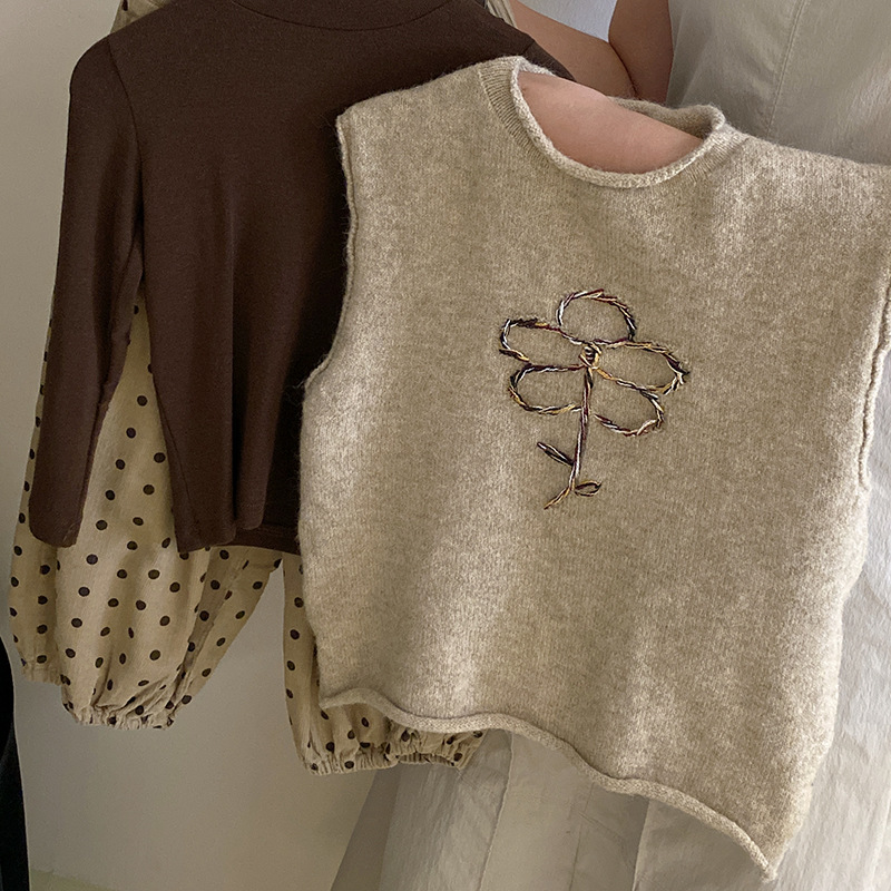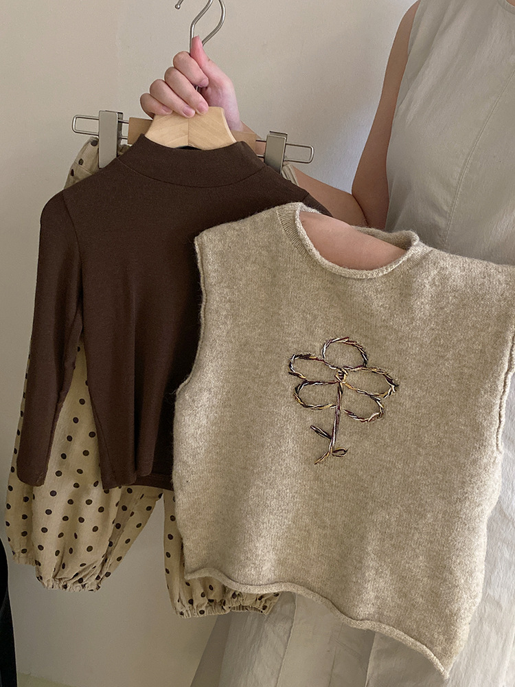 한국 스타일 여자 꽃 조끼 조끼 2024 가을 새로운 단색베이스 셔츠 코듀로이 폴로 도트 트렌디 바지 세트스토어 가기