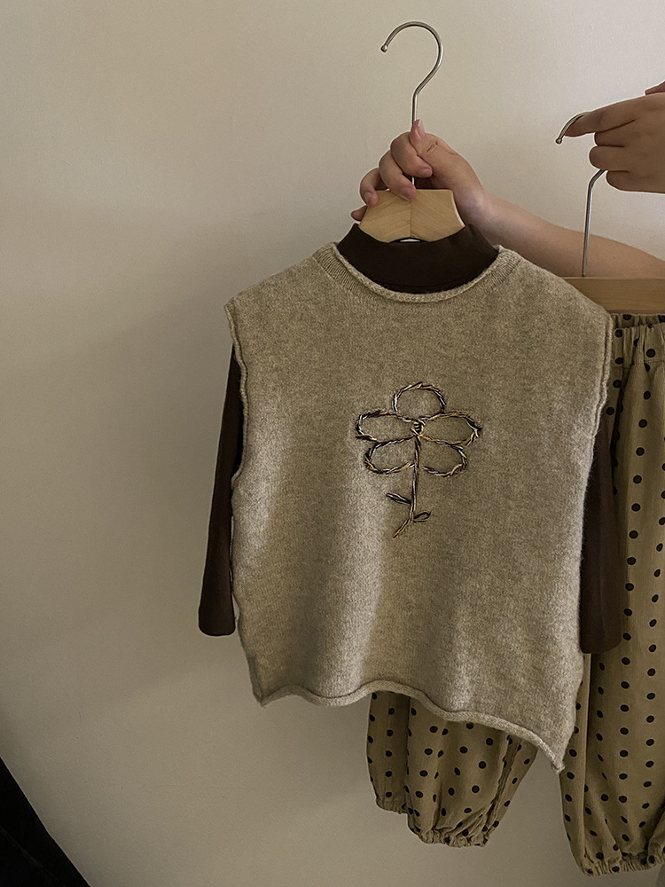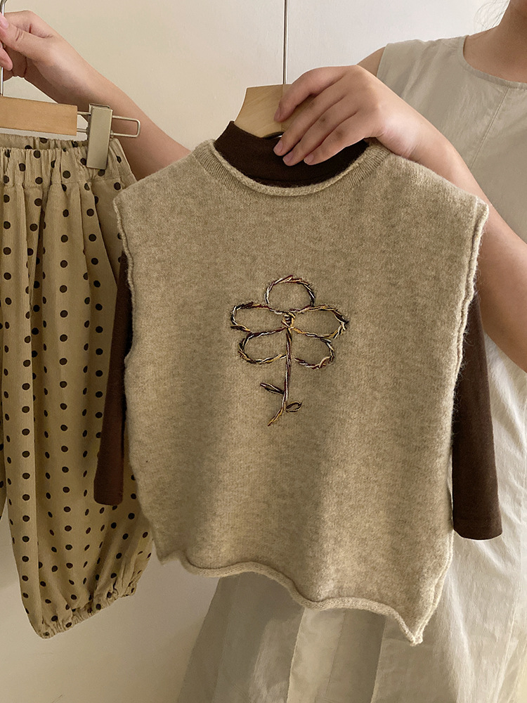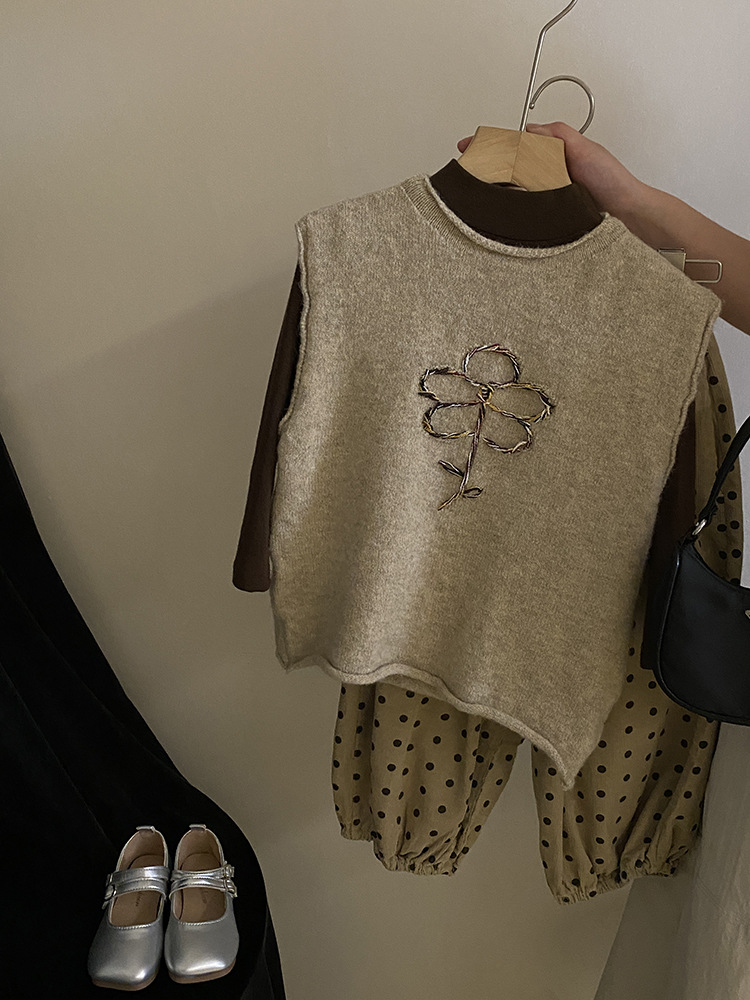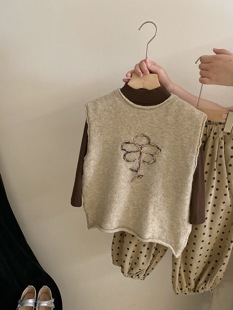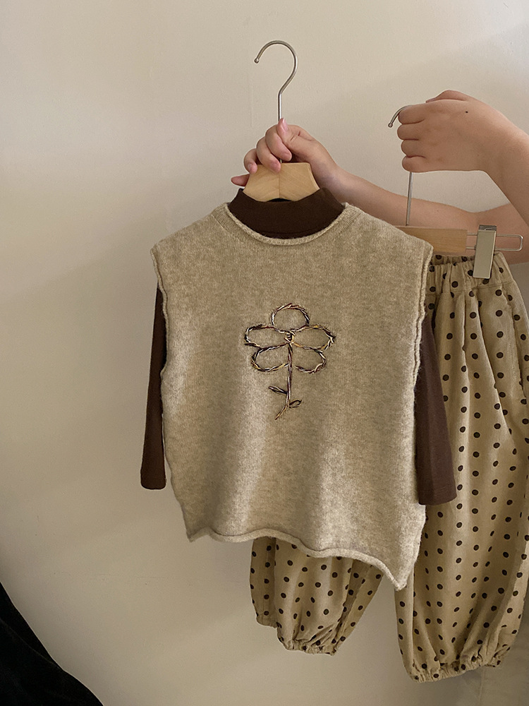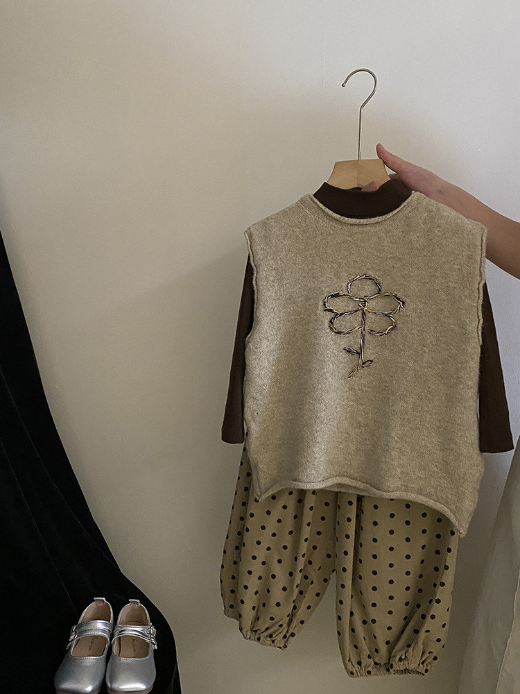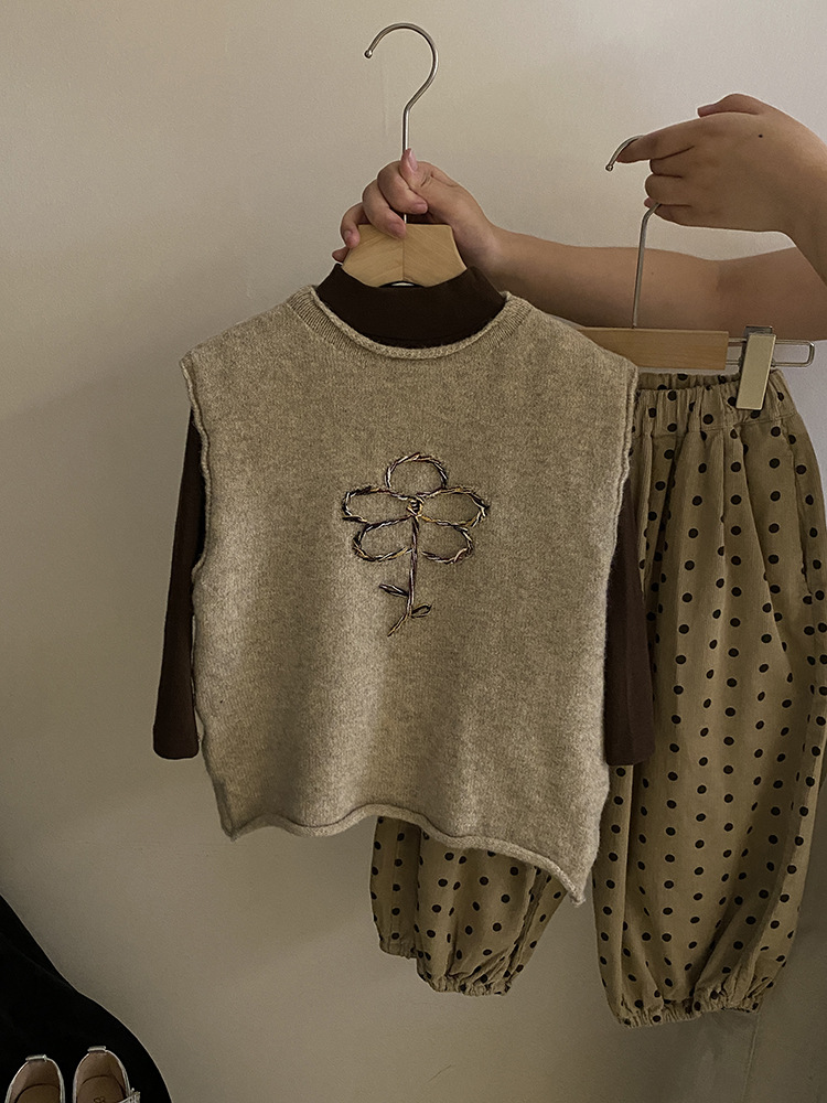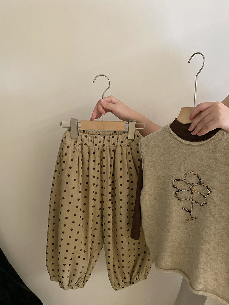 한국 스타일 여자 꽃 조끼 조끼 2024 가을 새로운 단색베이스 셔츠 코듀로이 폴로 도트 트렌디 바지 세트