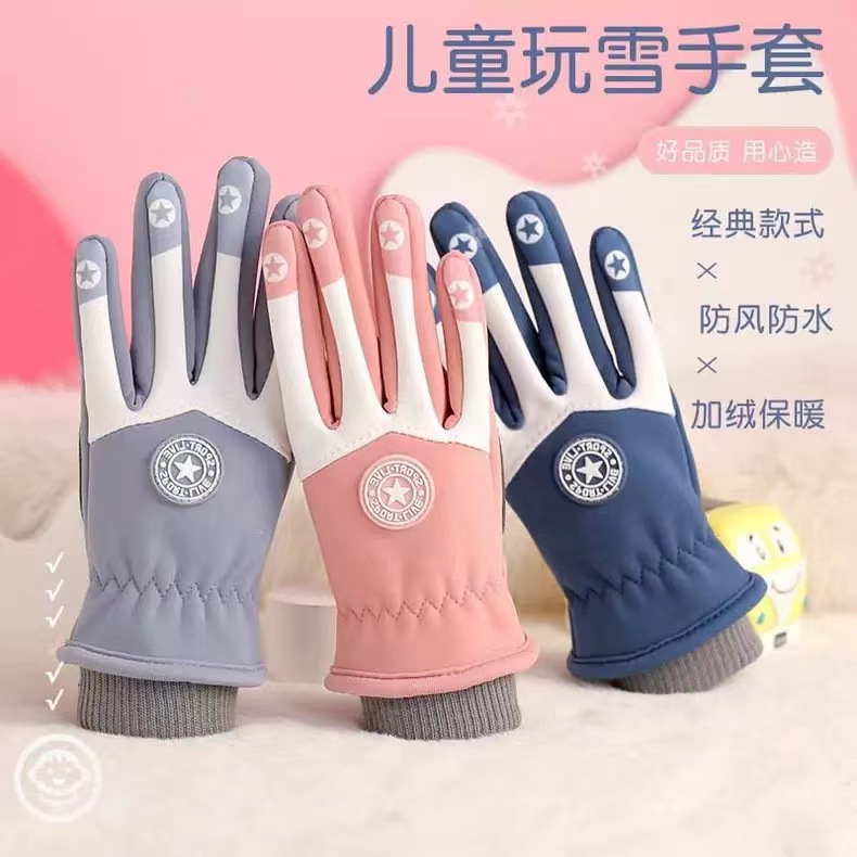어린이 겨울 기모 따뜻한 장갑 대형 어린이 야외 승마 방수 미끄럼 방지 스포츠 장갑 공장 스트레이트 헤어