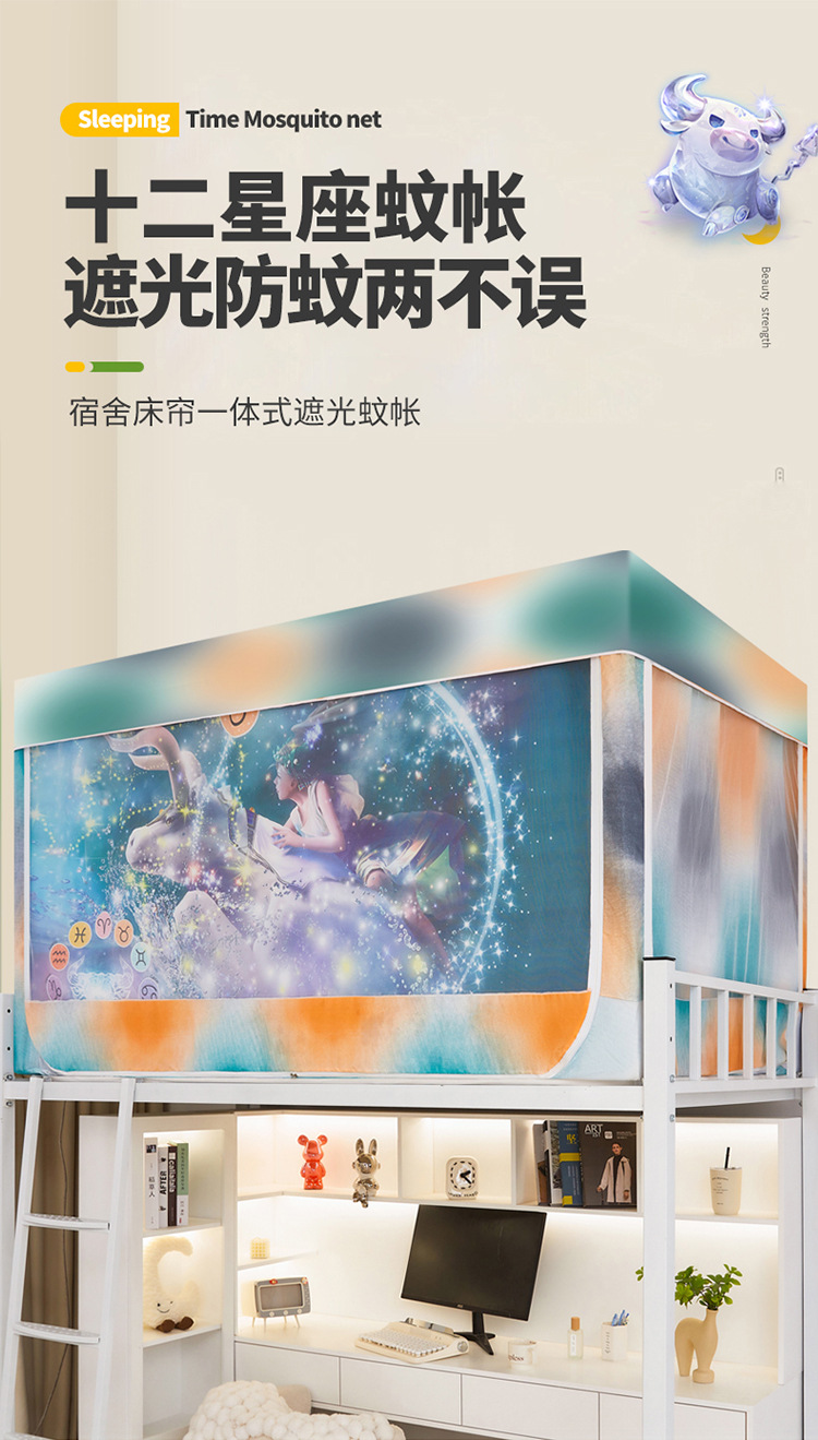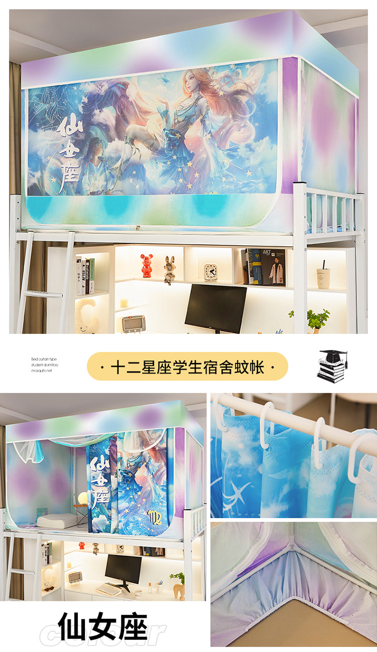 12 개의 별자리 학생 기숙사 모기장 침실 침대 커튼 상부 침대 낮은 침대 3 도어 무료 설치스토어 가기