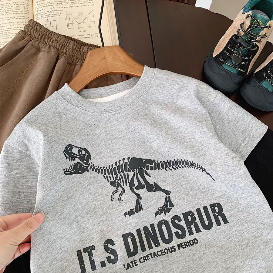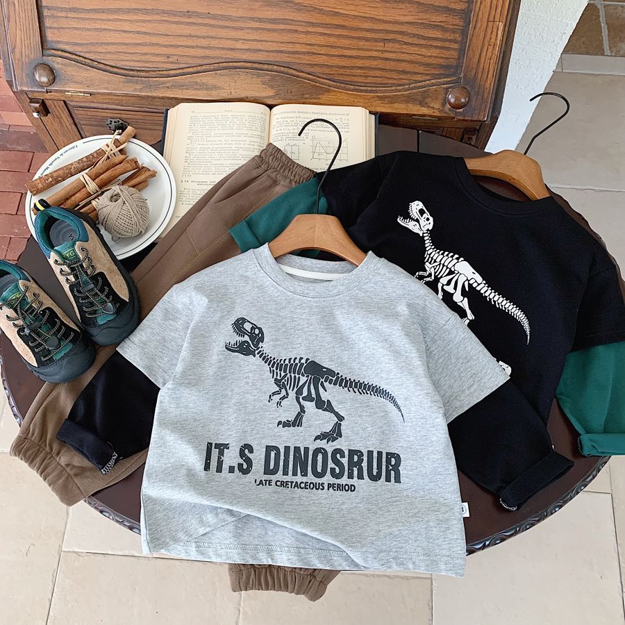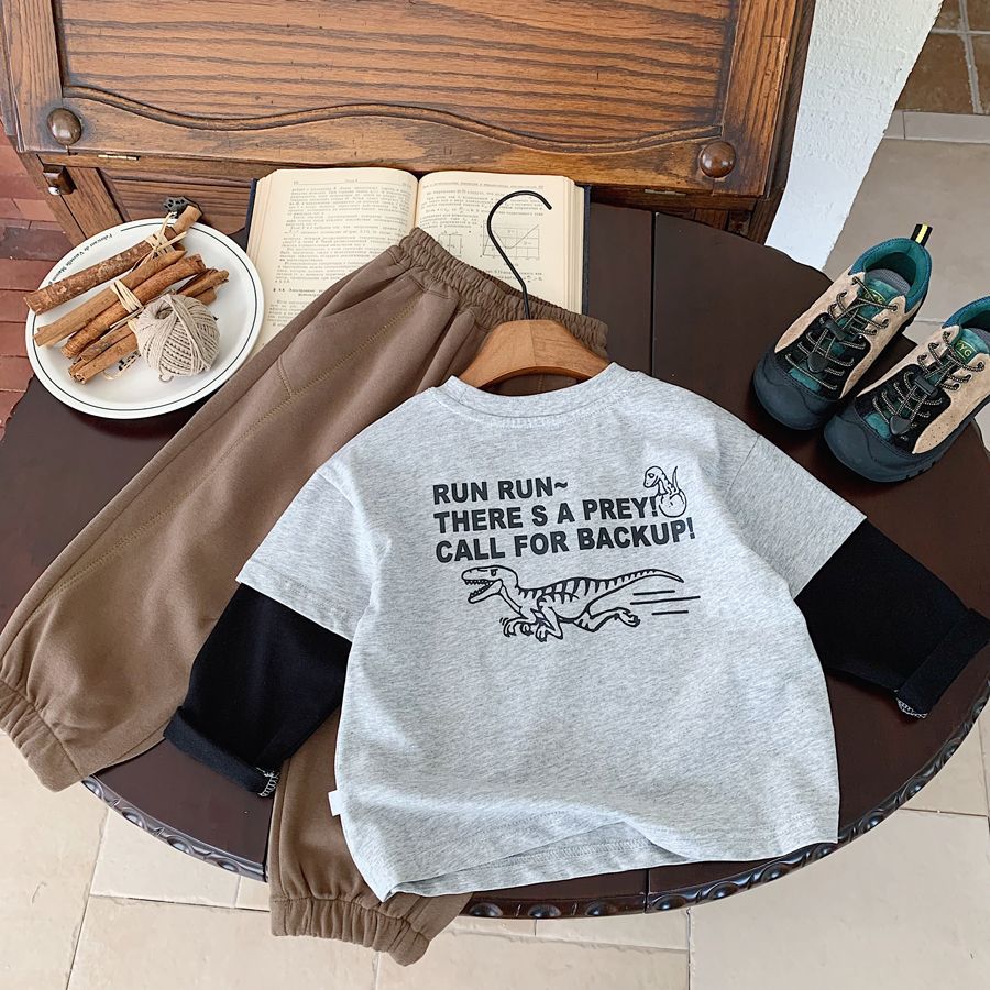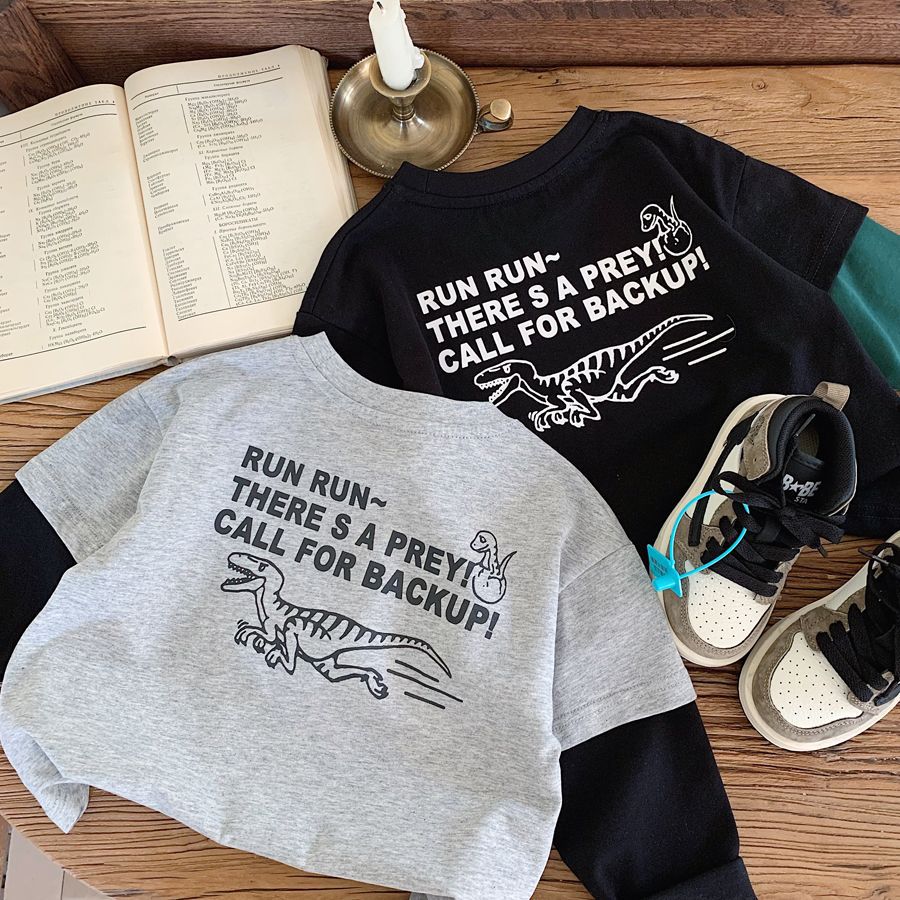 남아용 긴팔 티셔츠 2025 가을 신상 아동용 페이크 투피스 순면 공룡 캐주얼 루즈핏 상의 풀오버스토어 가기