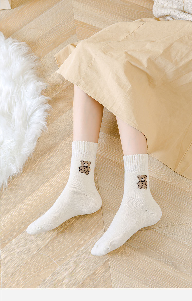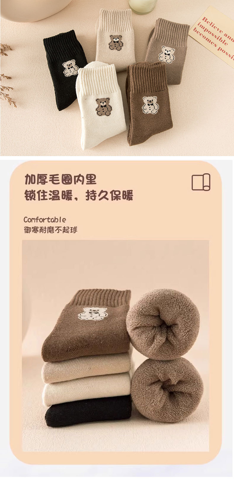 양말 여성의 가을과 겨울 두꺼운 따뜻한 곰 테리 양말 기모 수건 양말 일본 여성 바닥 양말면 양말스토어 가기