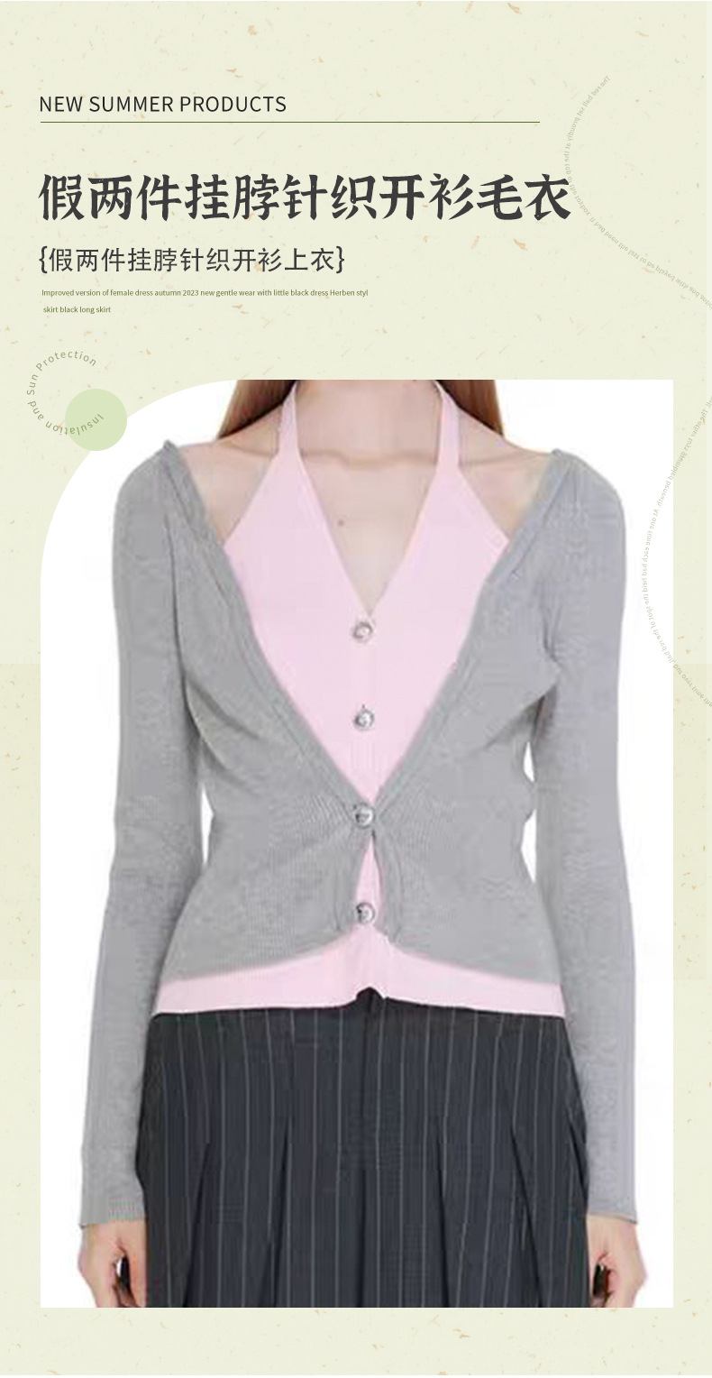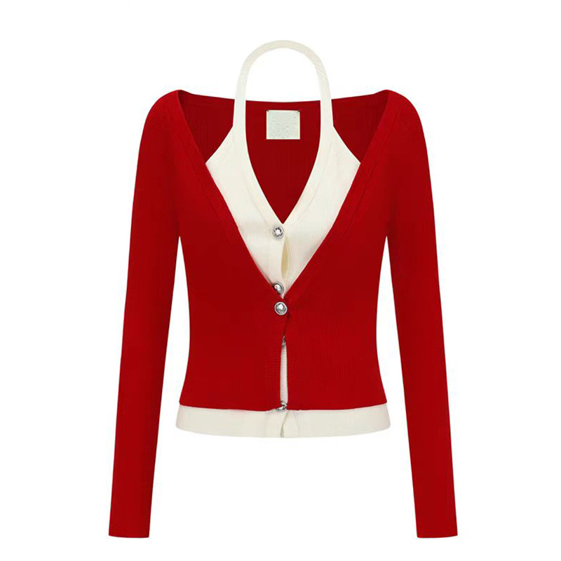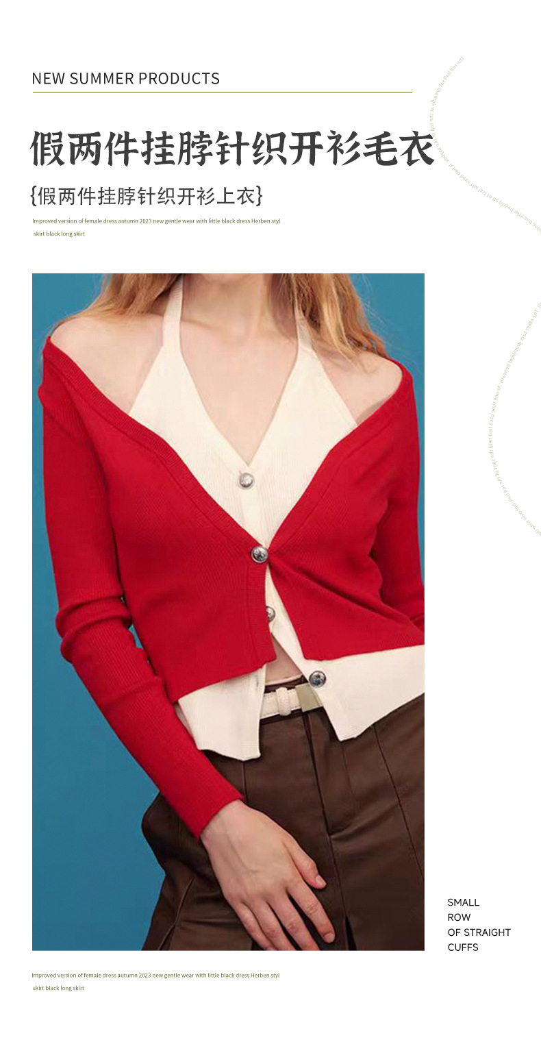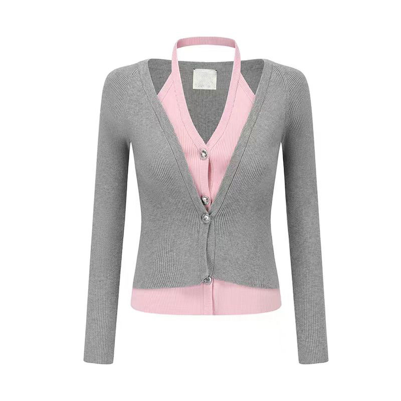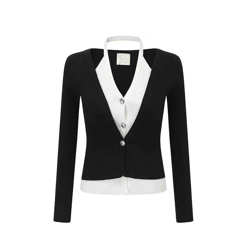 브이넥 페이크 투피스 홀터넥 니트 가디건 슬림핏 오프숄더 배색 가디건 긴팔 탑 미드기장