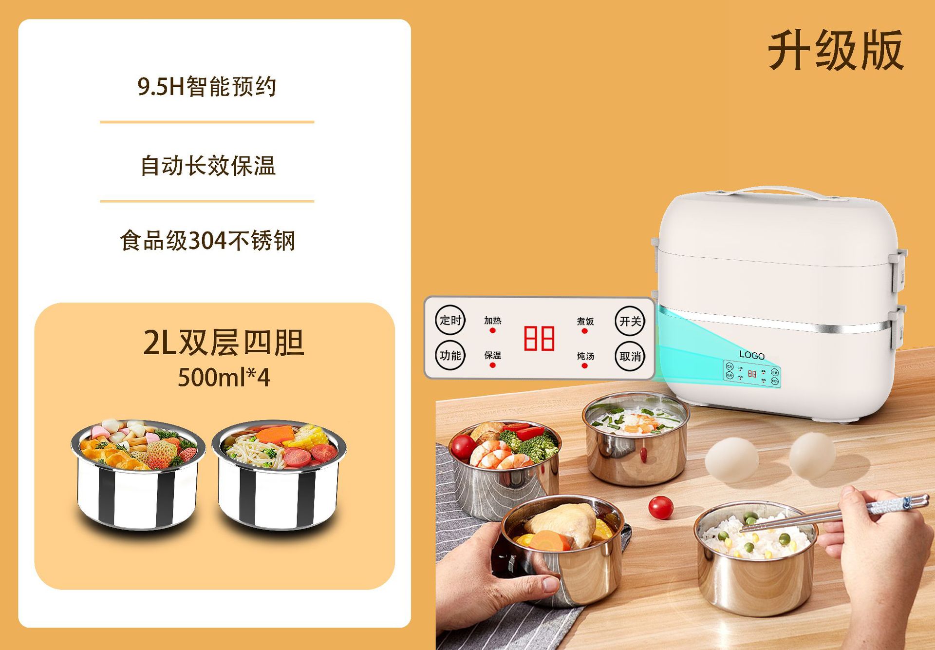 새 스마트 미니 밥솥 사무원 자열 단열재 쌀 김이 나는 유물로 전기 난방 도시락 선물