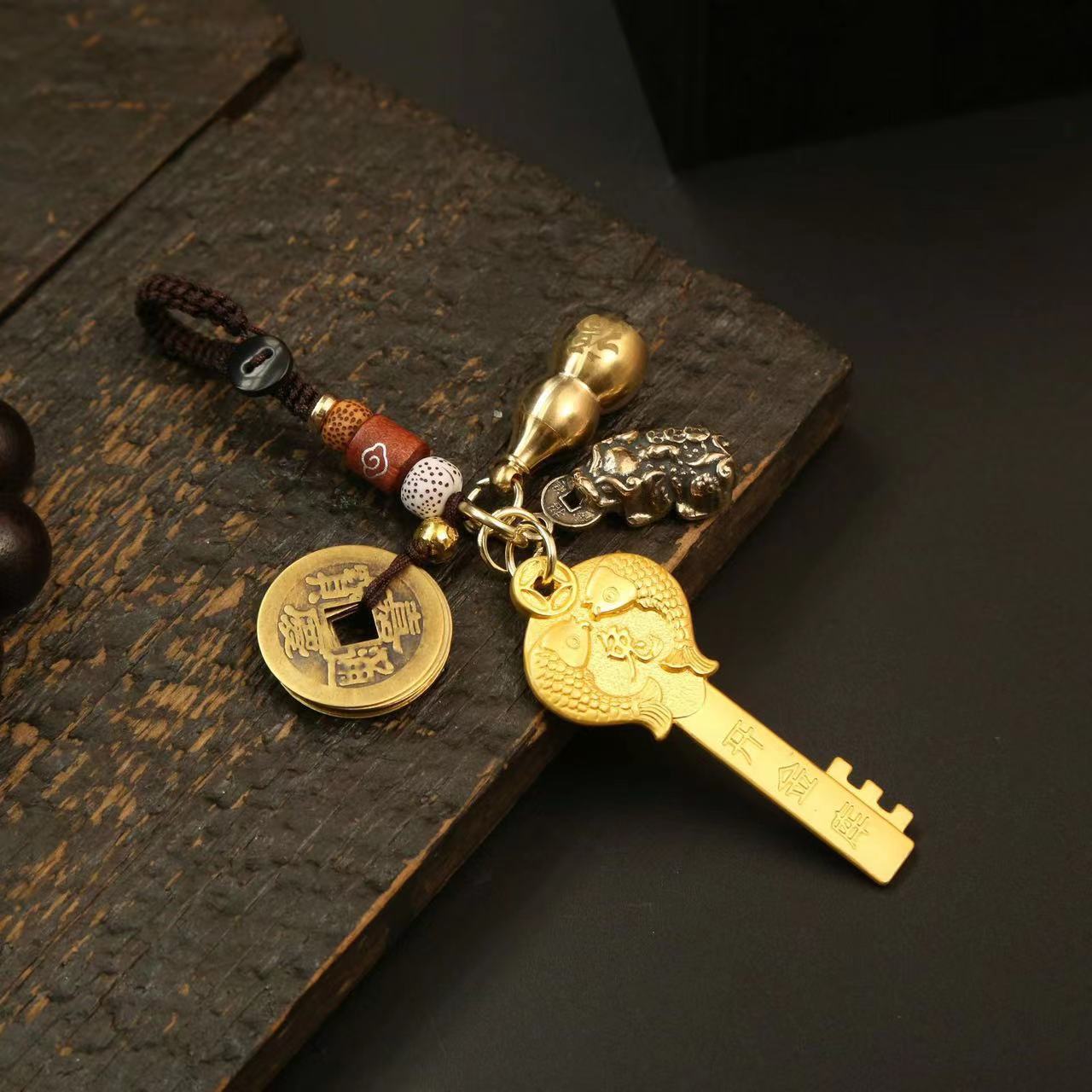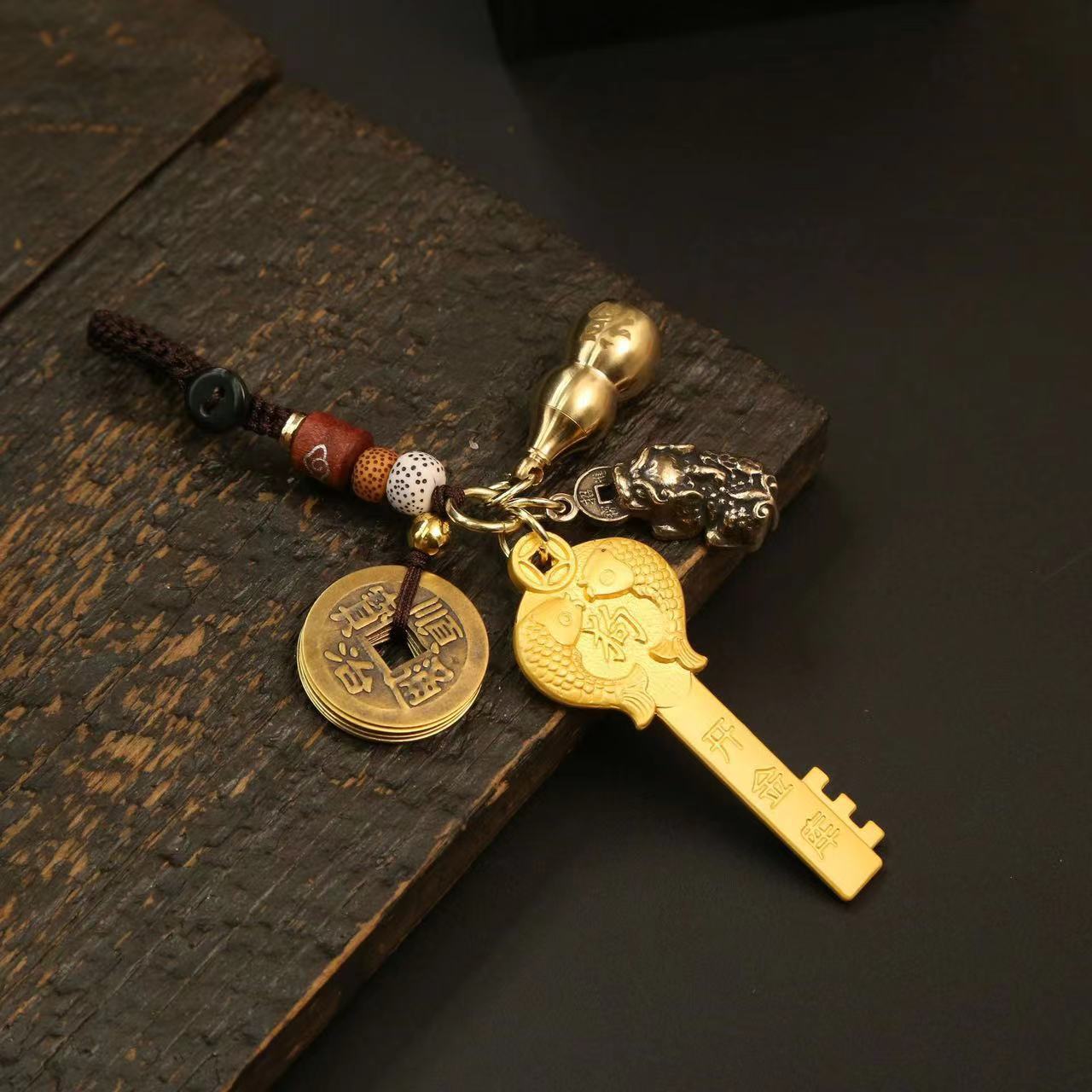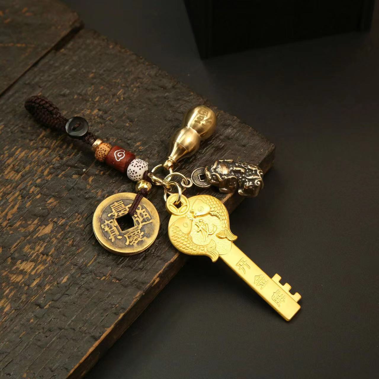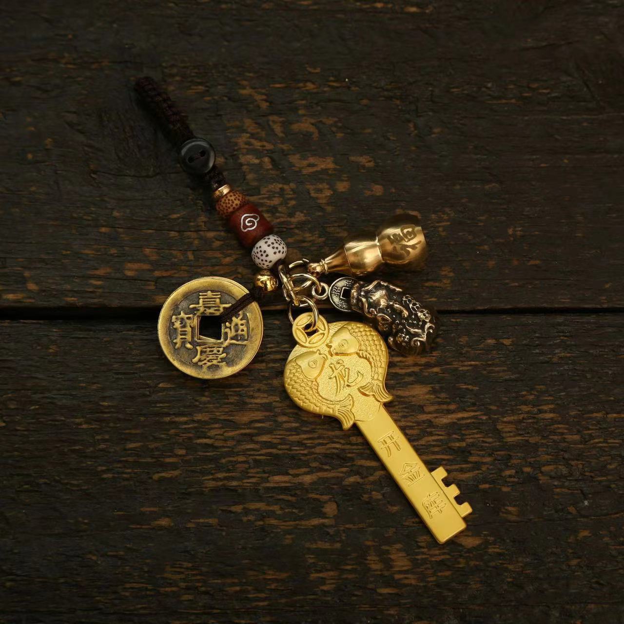 황동 물고기 자리 재무 키 펜던트 남성과 여성의 가방 자동차 키 펜던트 키 체인 보석