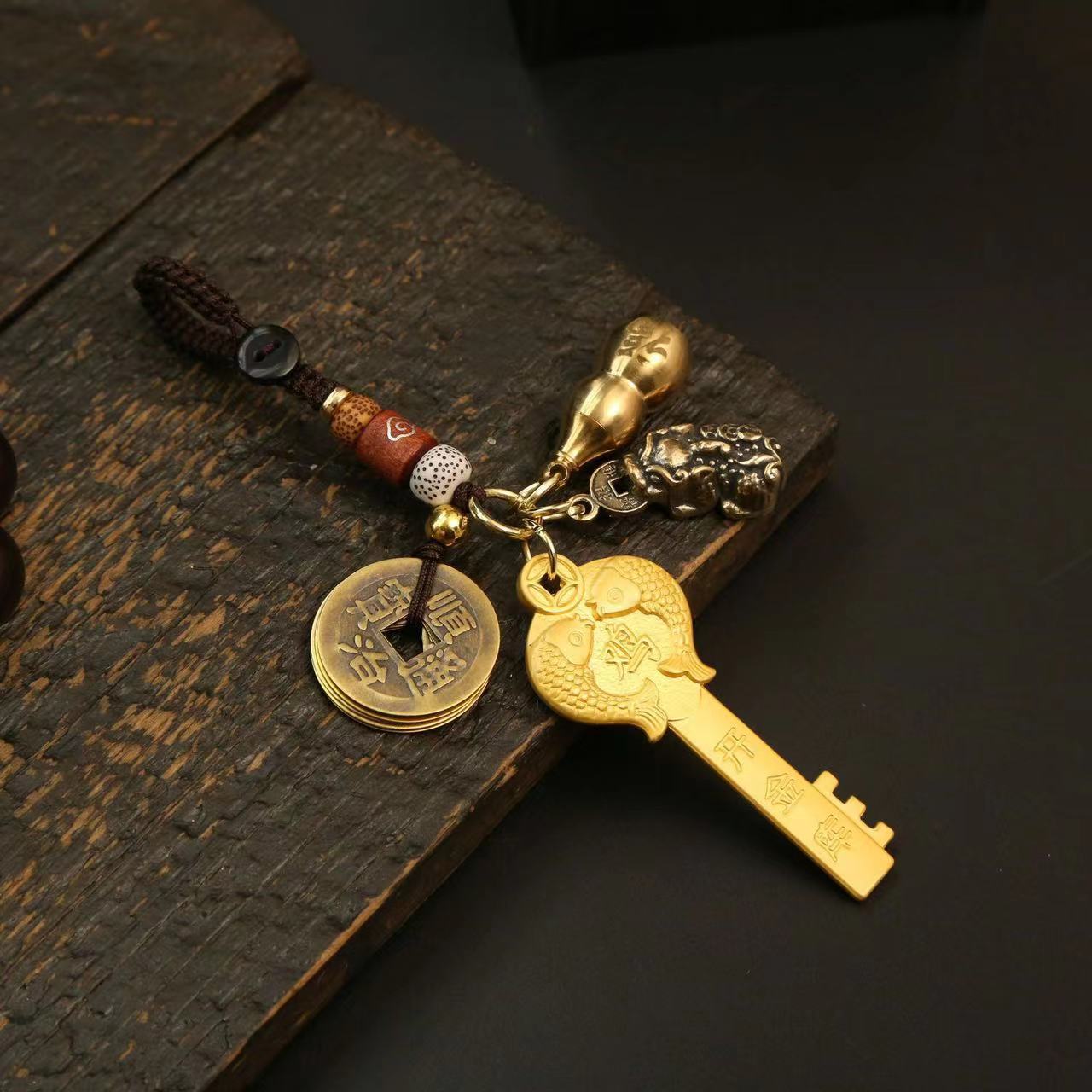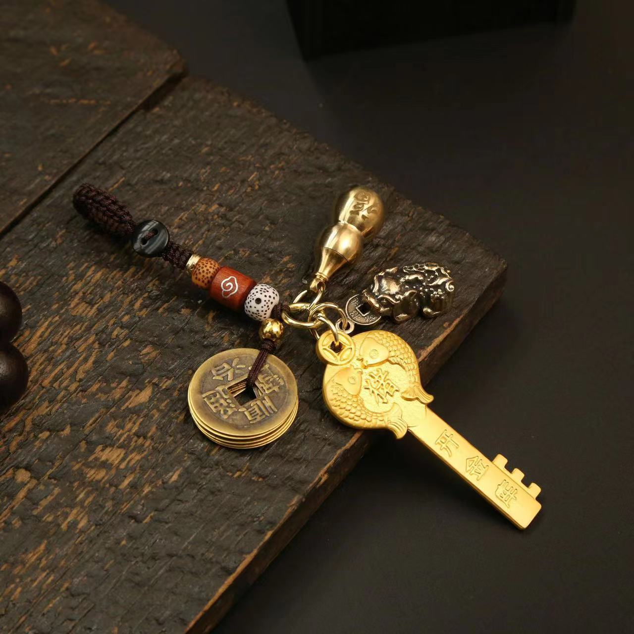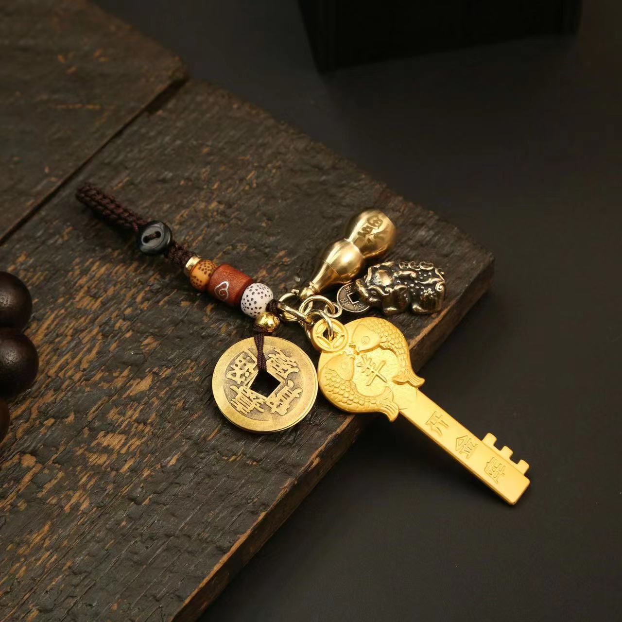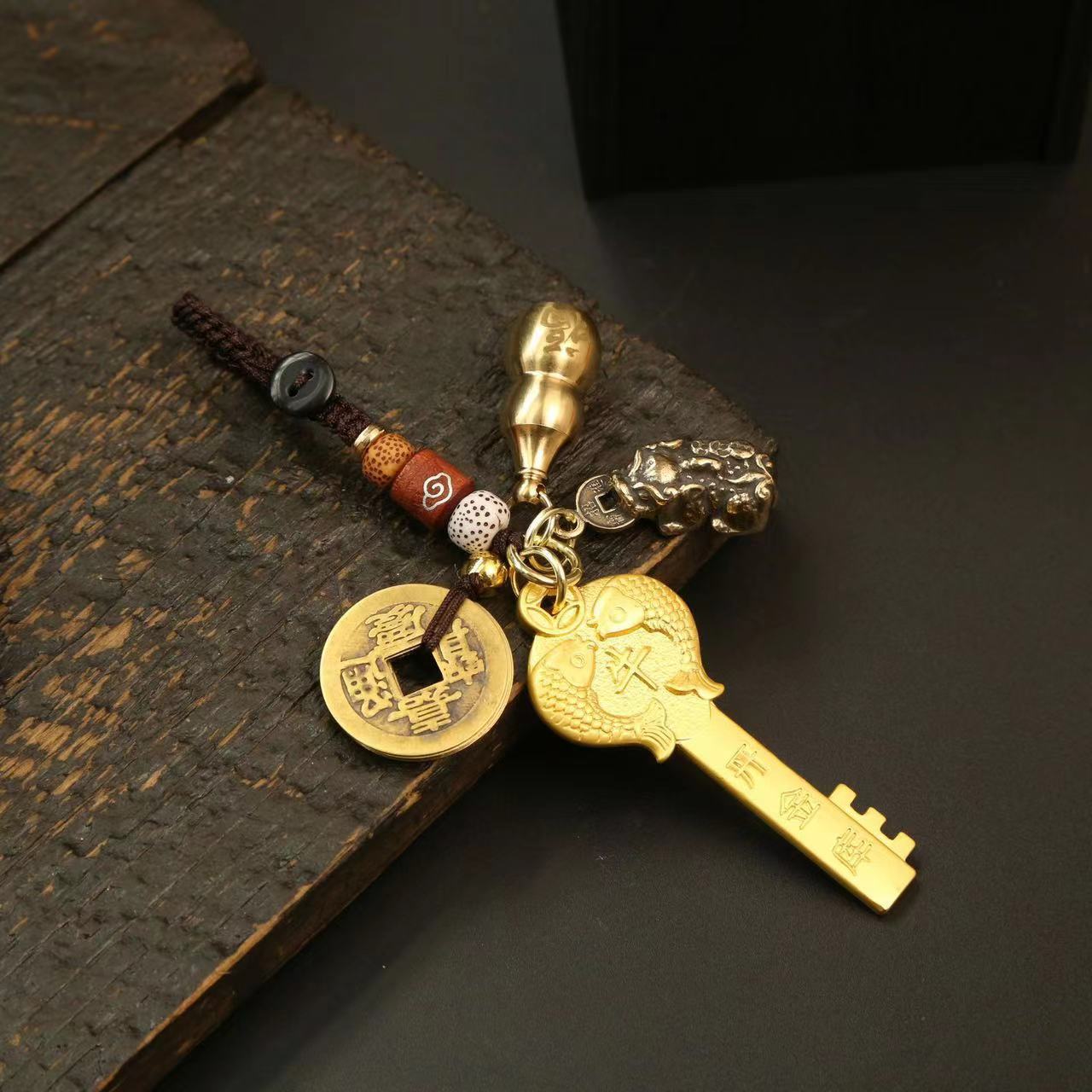 황동 물고기 자리 재무 키 펜던트 남성과 여성의 가방 자동차 키 펜던트 키 체인 보석