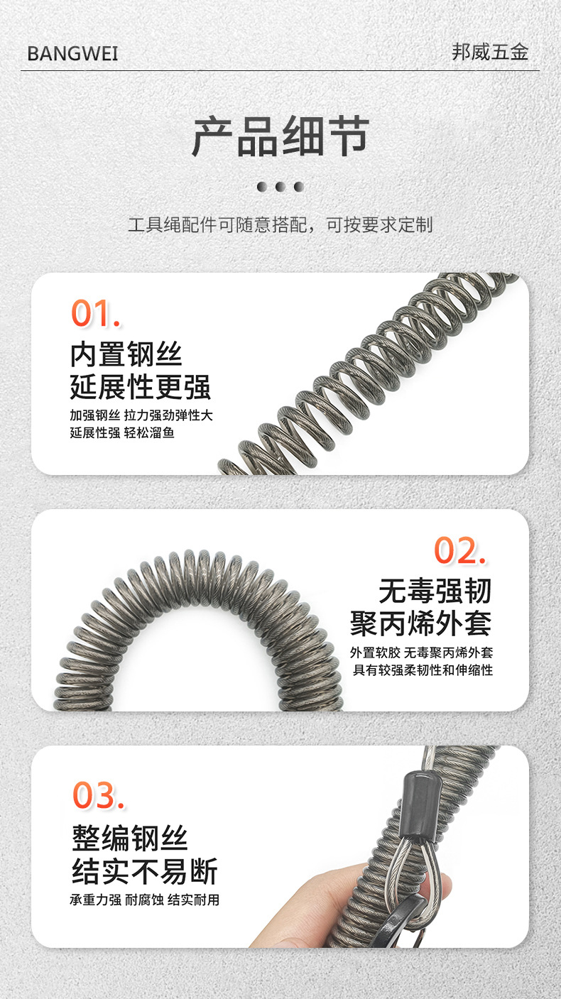 손을 잃는 스테인레스 스틸 와이어 야외 낚시 기어 반대로 잃어버린 로프 휴대용 스트레치 끈 봄 밧줄 반대로 떨어지는 안전 버클