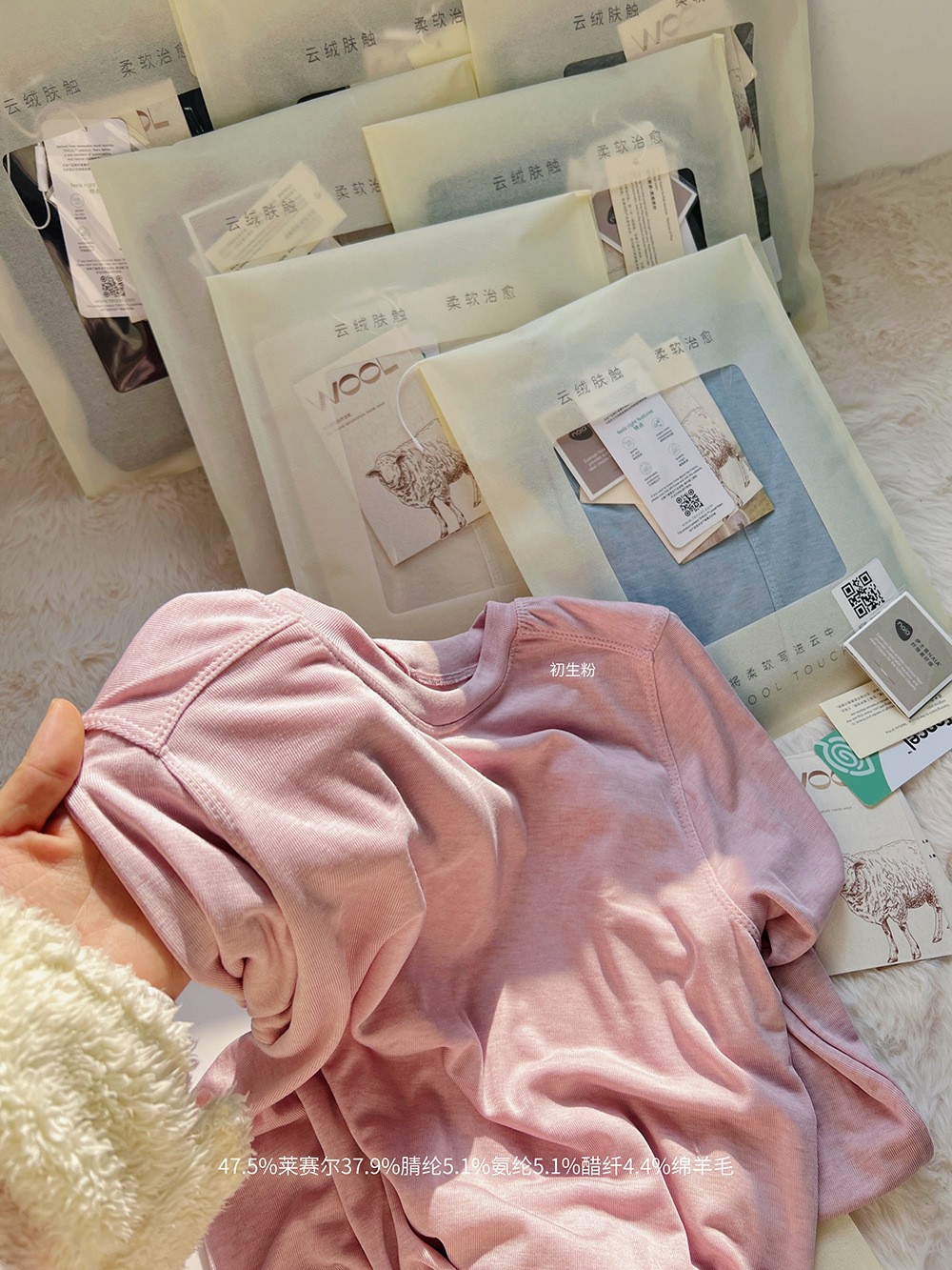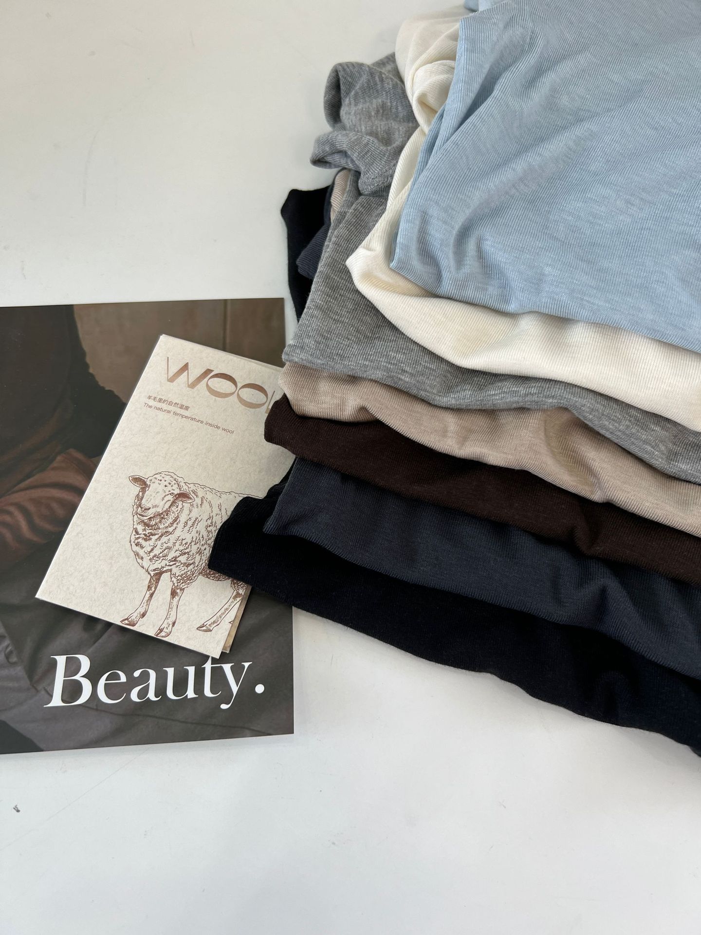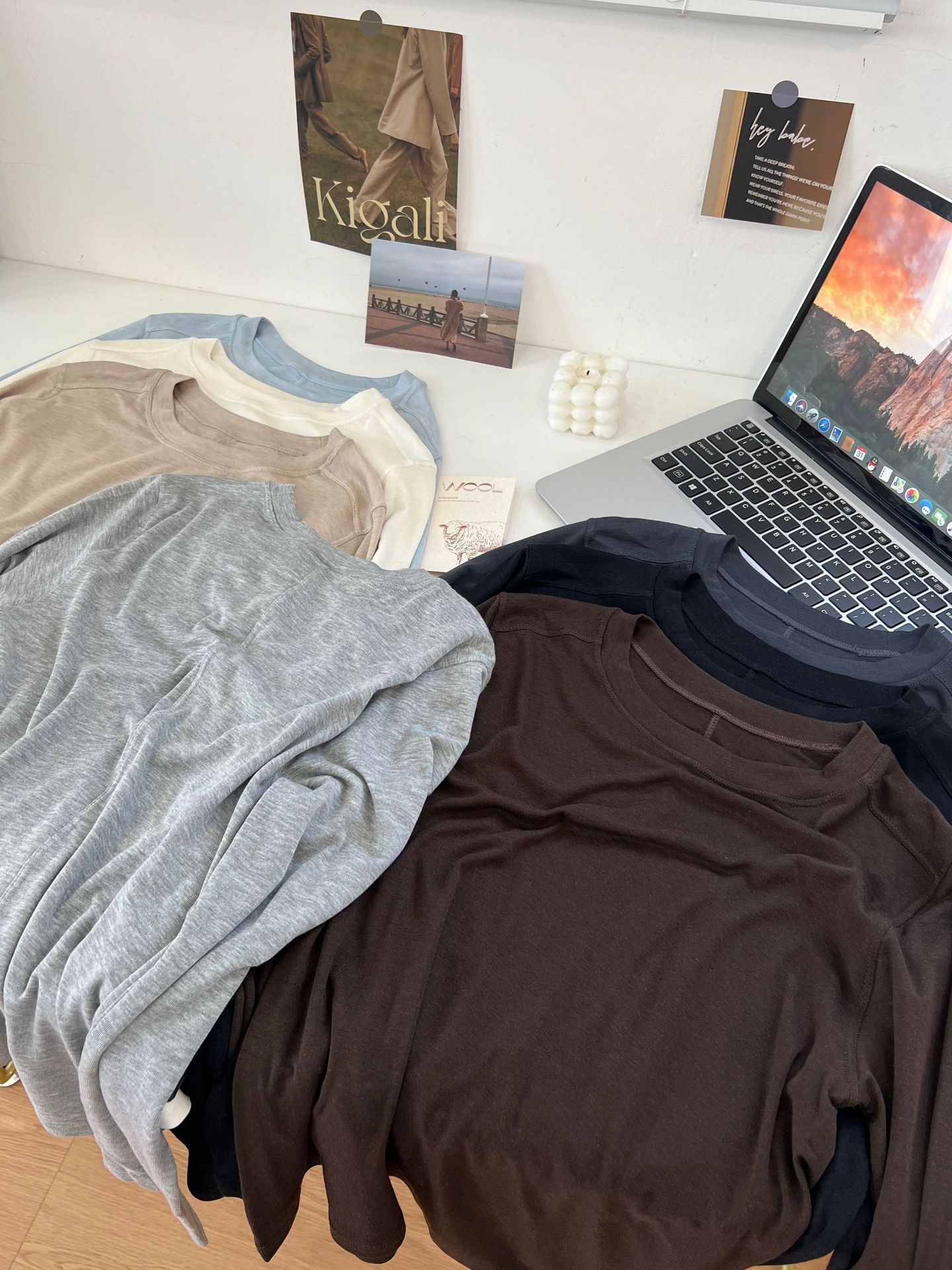 봄과 가을 신상 얇은 울 텐셀 부드럽고 왁시한 라운드 넥 바닥 셔츠 슬림핏 긴팔 티셔츠 여성상의스토어 가기