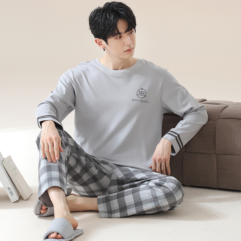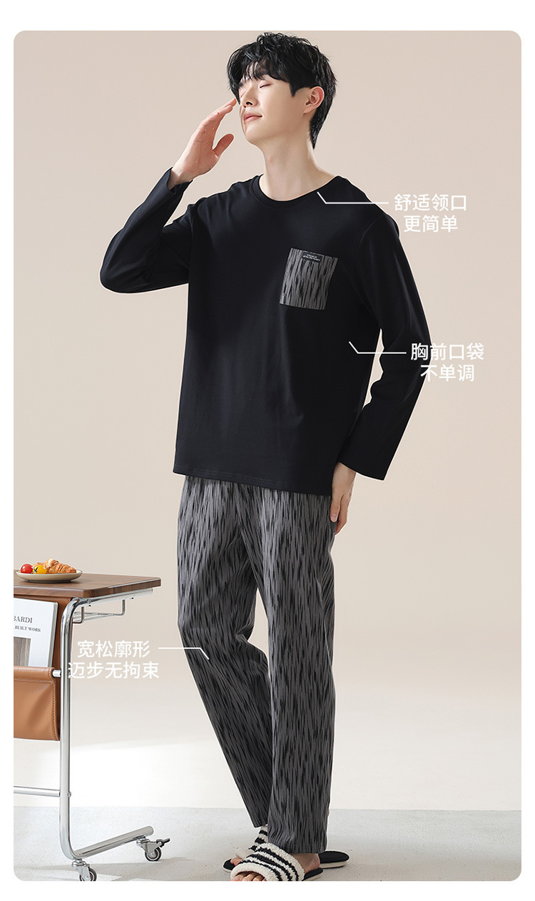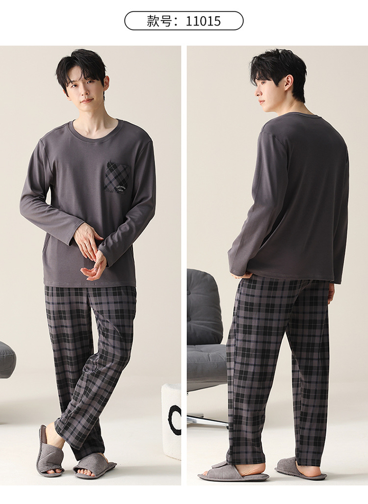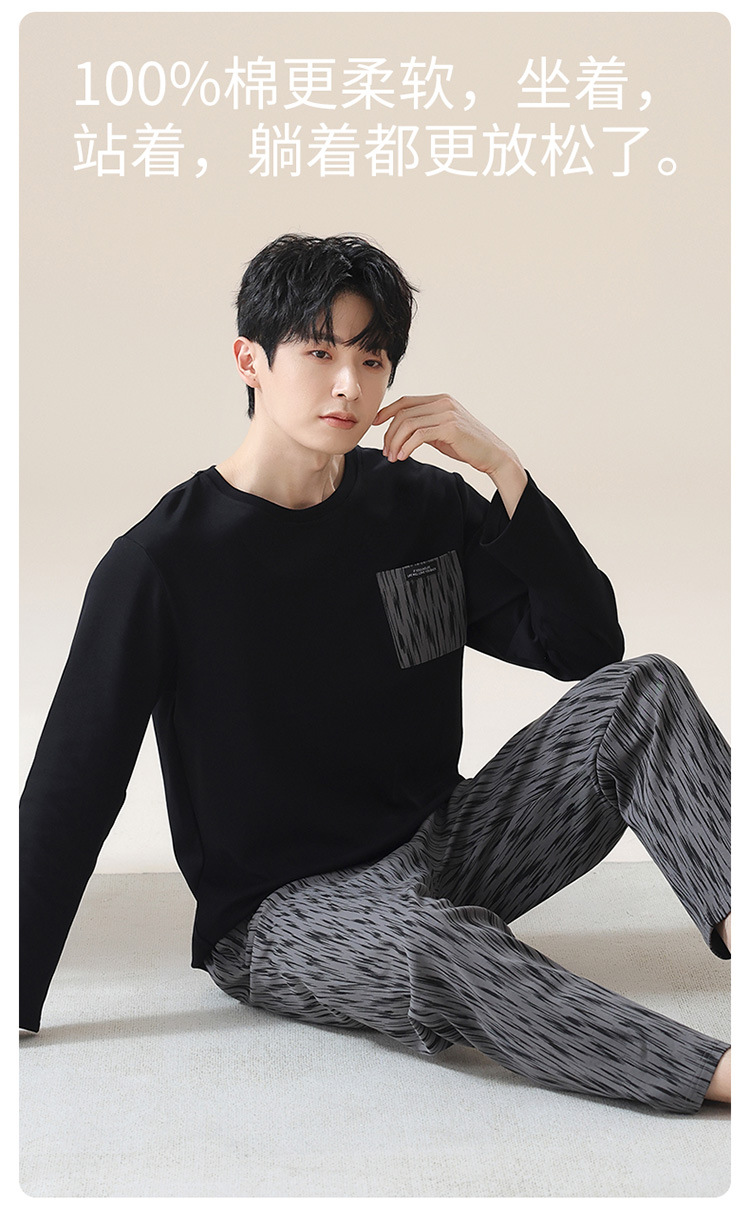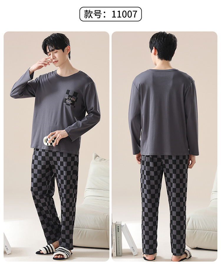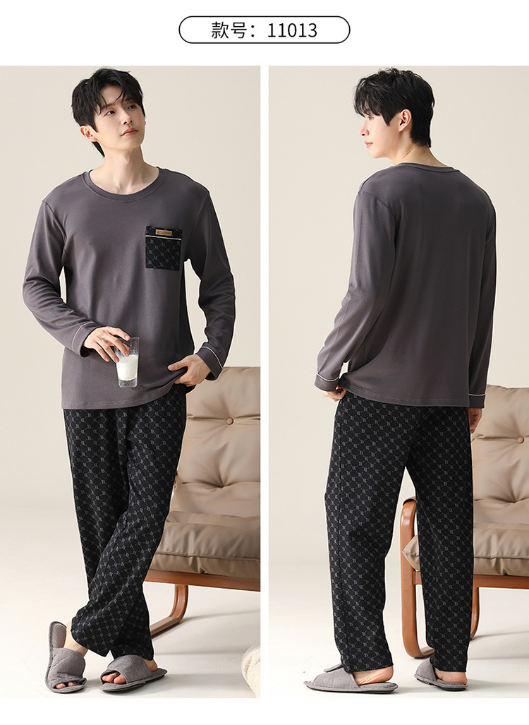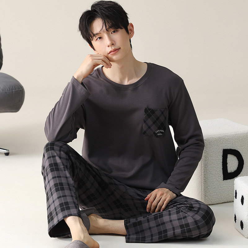2024 새로운 남성 잠옷 가을 긴팔 바지 크루 넥 세트 가을과 겨울 외부 플러스 에디션 홈 옷을 입을 수 있습니다스토어 가기