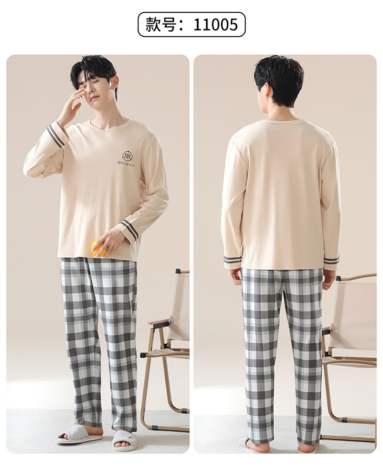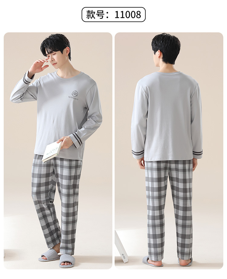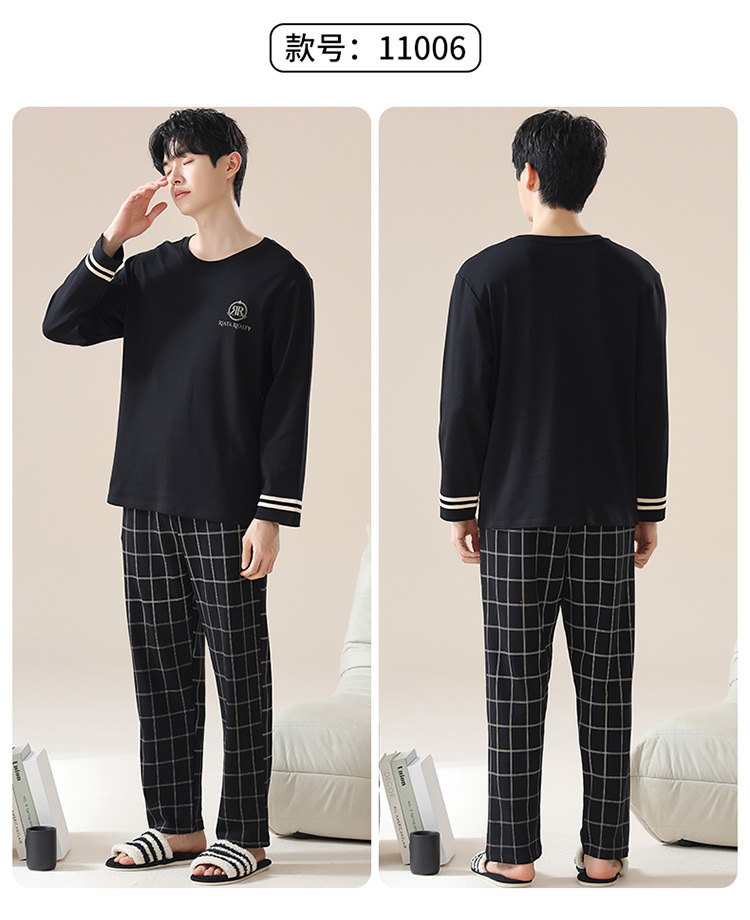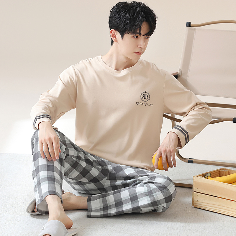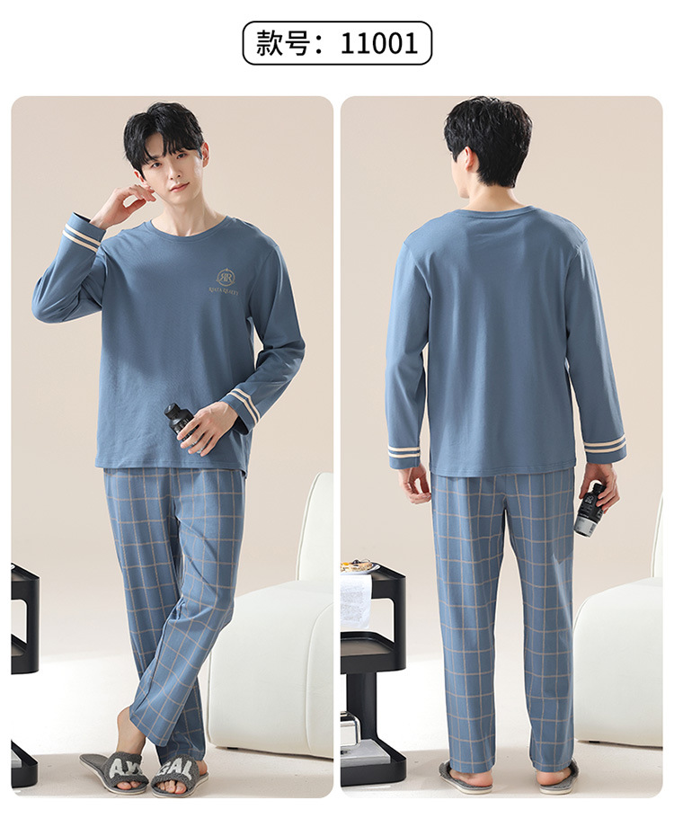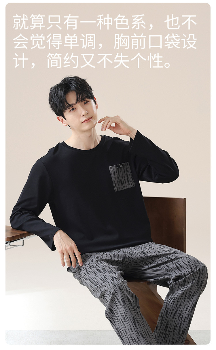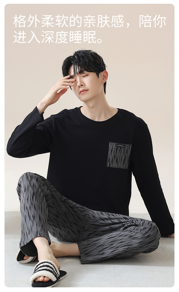 2024 새로운 남성 잠옷 가을 긴팔 바지 크루 넥 세트 가을과 겨울 외부 플러스 에디션 홈 옷을 입을 수 있습니다스토어 가기