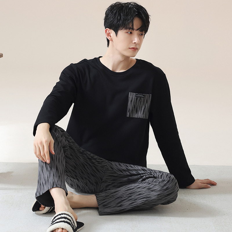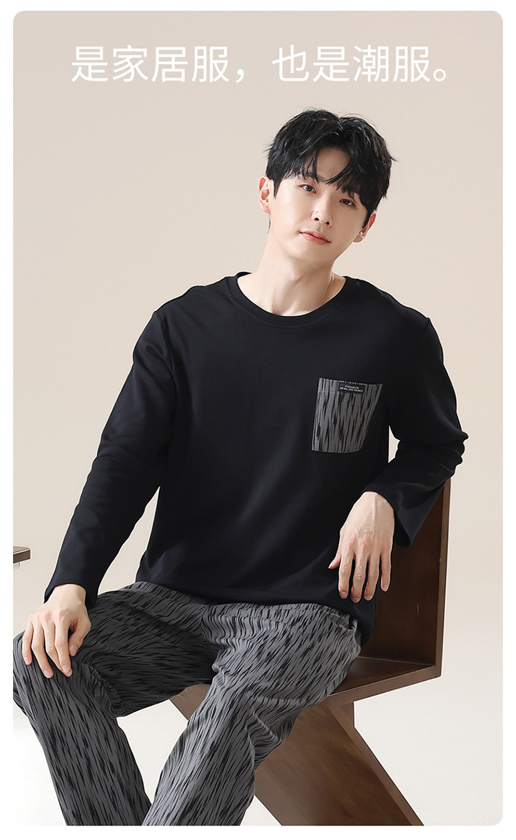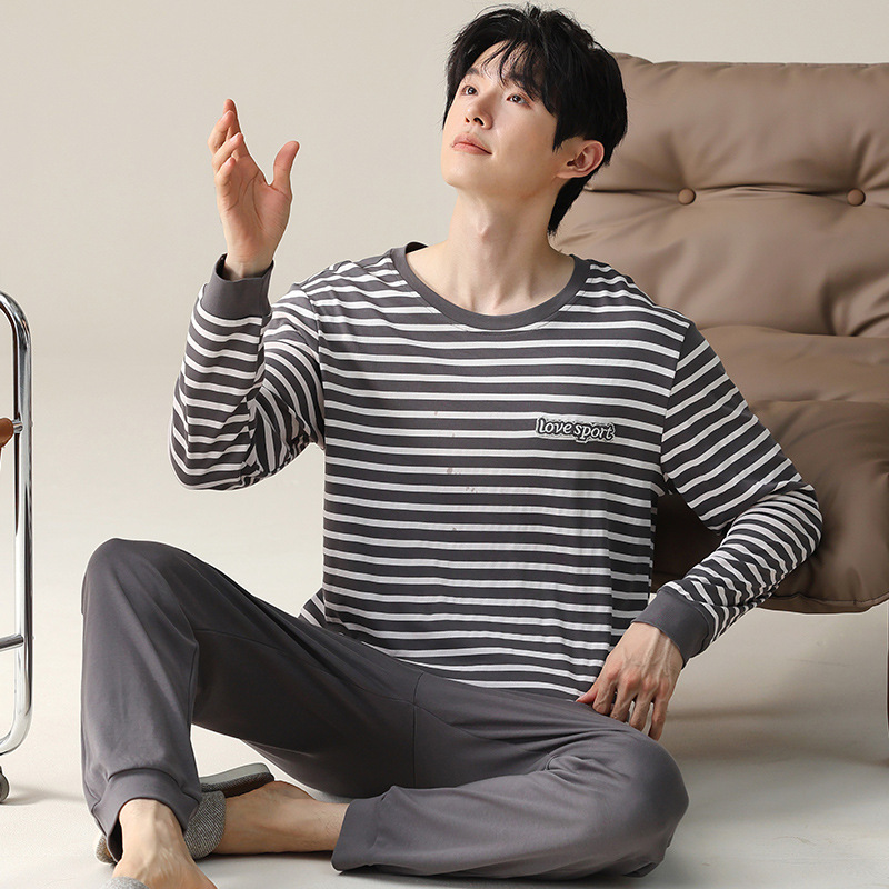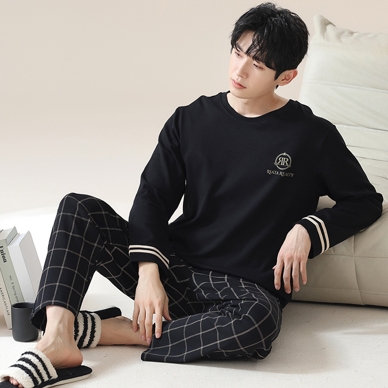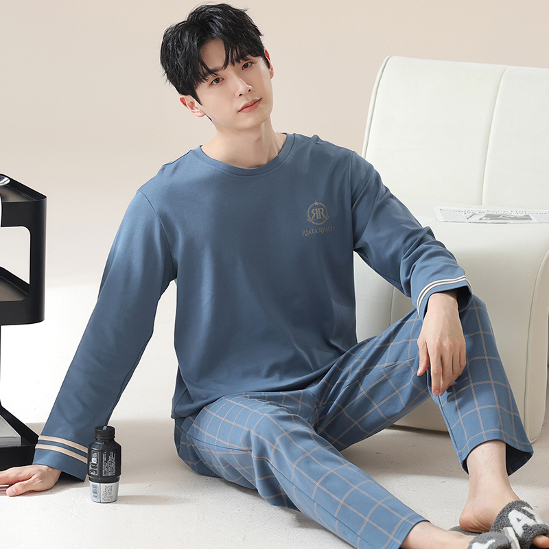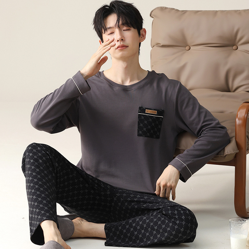 2024 새로운 남성 잠옷 가을 긴팔 바지 크루 넥 세트 가을과 겨울 외부 플러스 에디션 홈 옷을 입을 수 있습니다