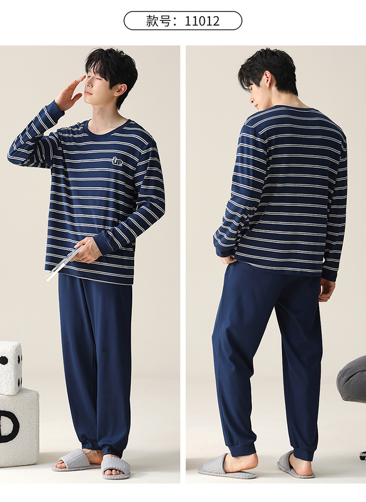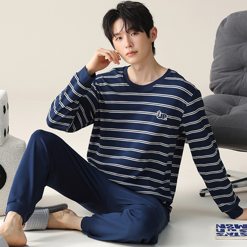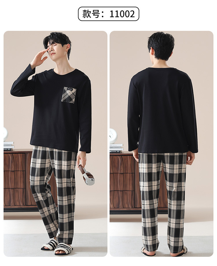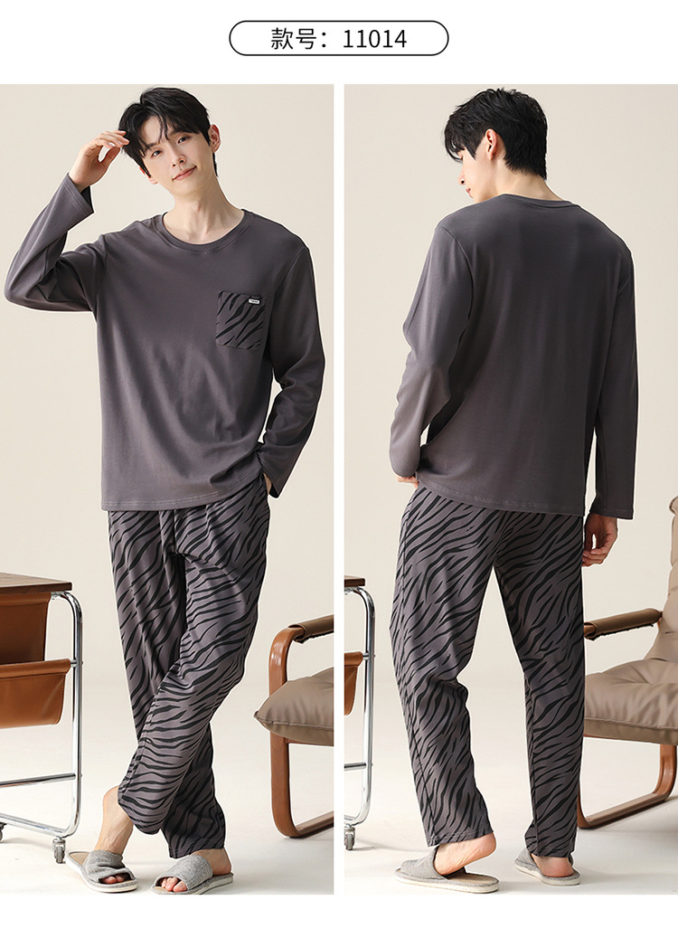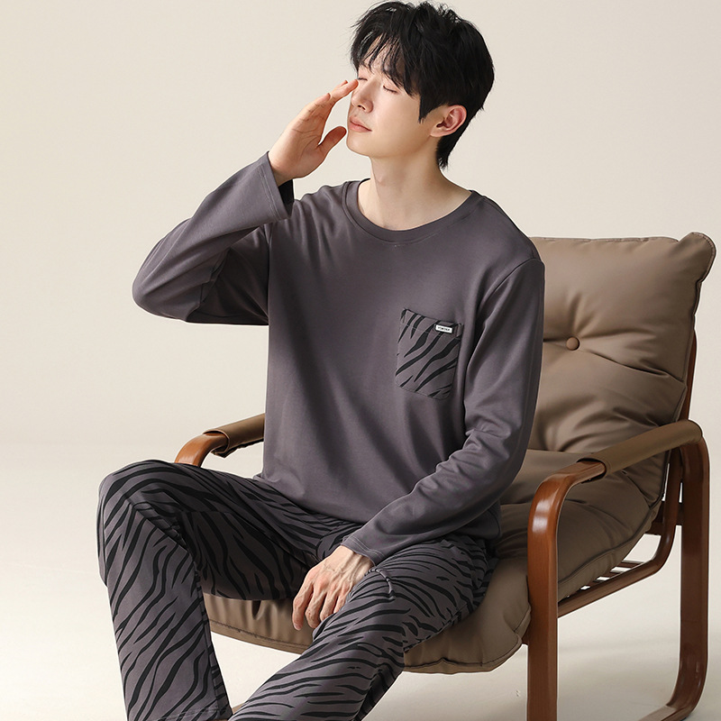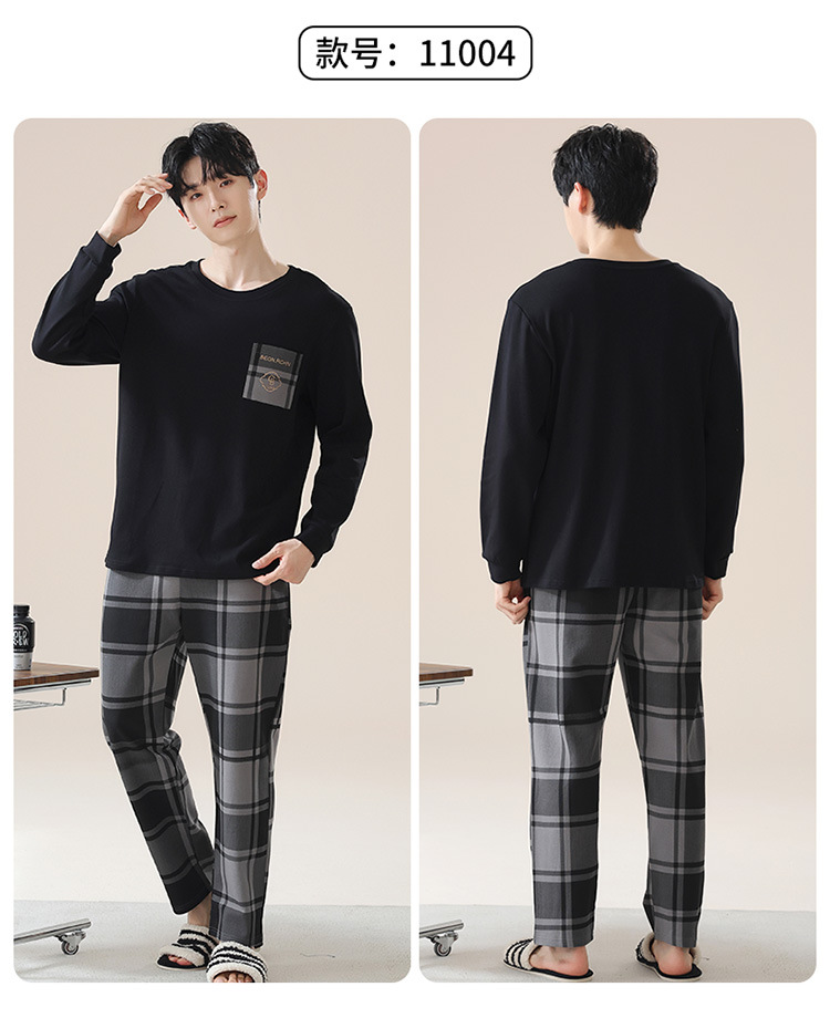 2024 새로운 남성 잠옷 가을 긴팔 바지 크루 넥 세트 가을과 겨울 외부 플러스 에디션 홈 옷을 입을 수 있습니다