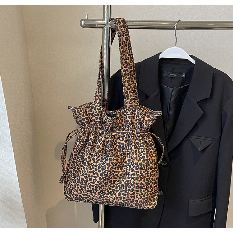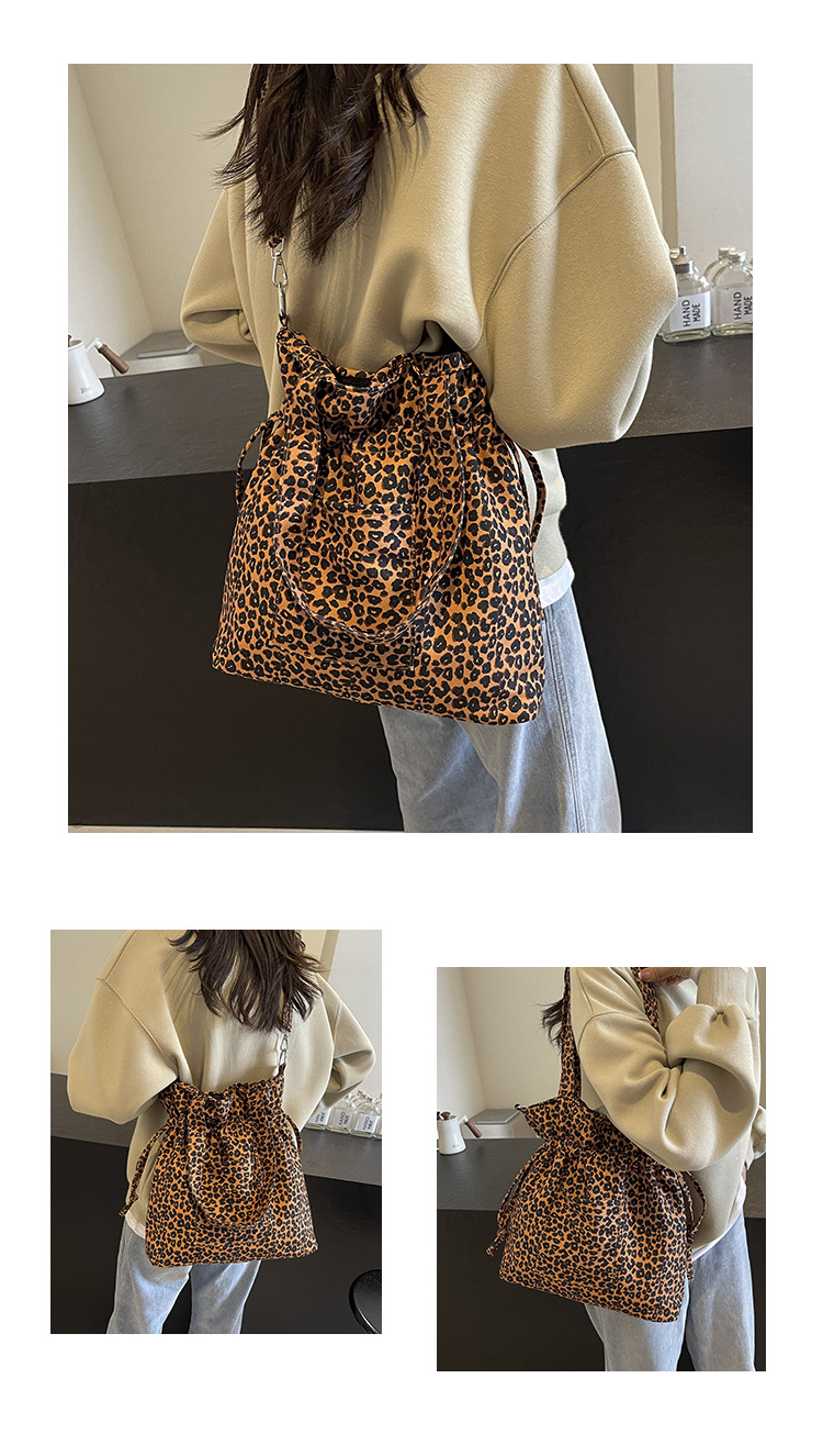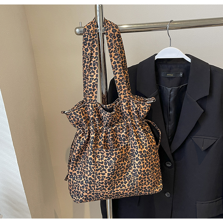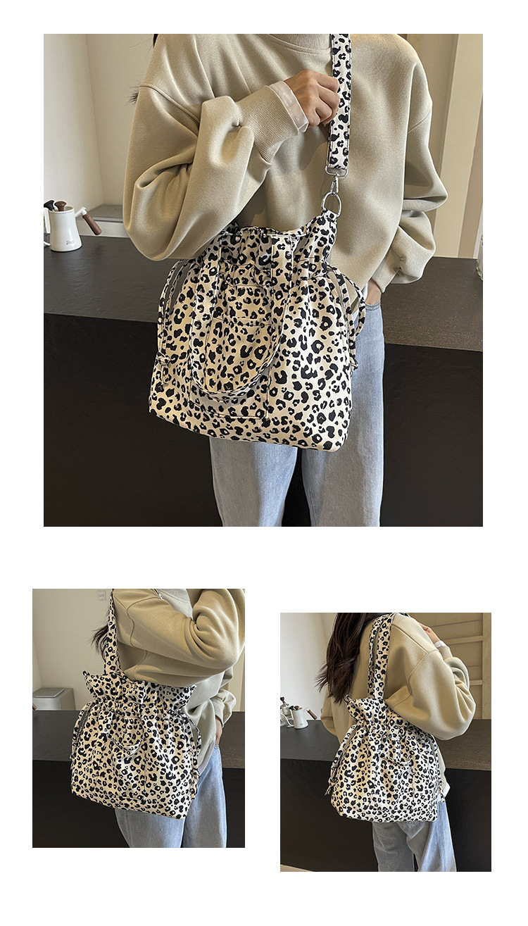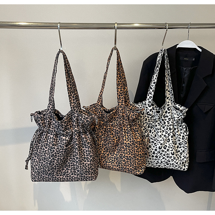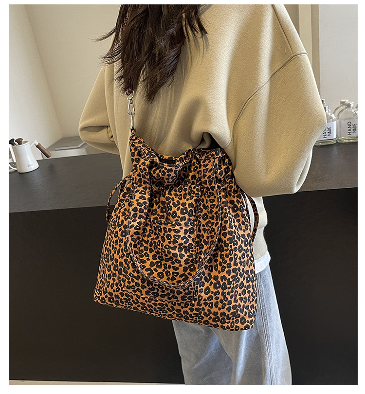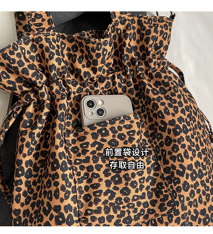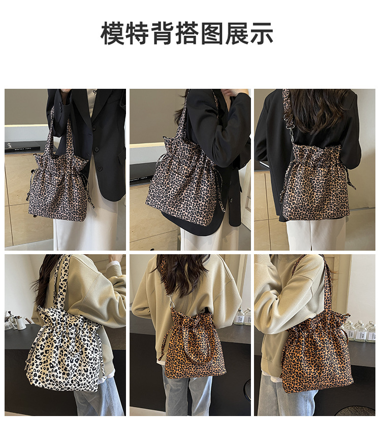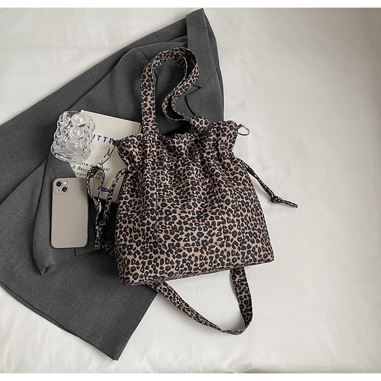 2024 새로운 한국 스타일 유행 캔버스 가방 어깨 가방 레오파드 무늬 대용량 게으른 스타일 천 가방 여성 끈 버킷 가방스토어 가기