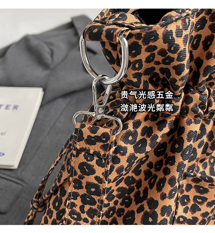 2024 새로운 한국 스타일 유행 캔버스 가방 어깨 가방 레오파드 무늬 대용량 게으른 스타일 천 가방 여성 끈 버킷 가방