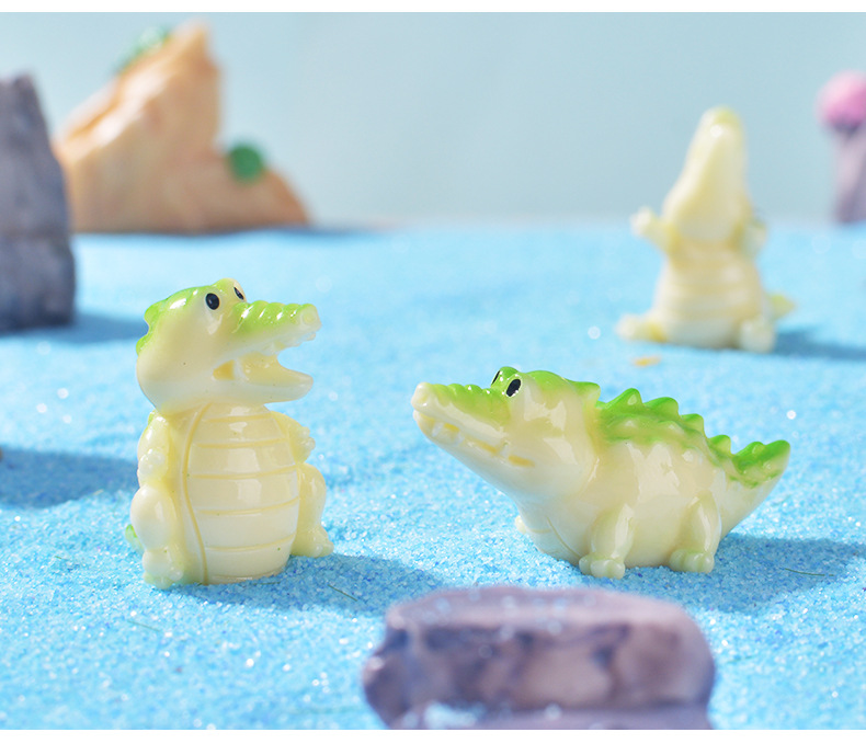 마이크로 풍경 해양 장식품 귀여운 작은 악어 수족관 작은 액세서리 만화 악어 DIY 수지 작은 장식품