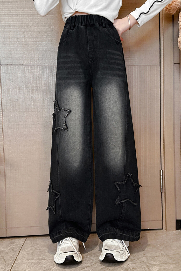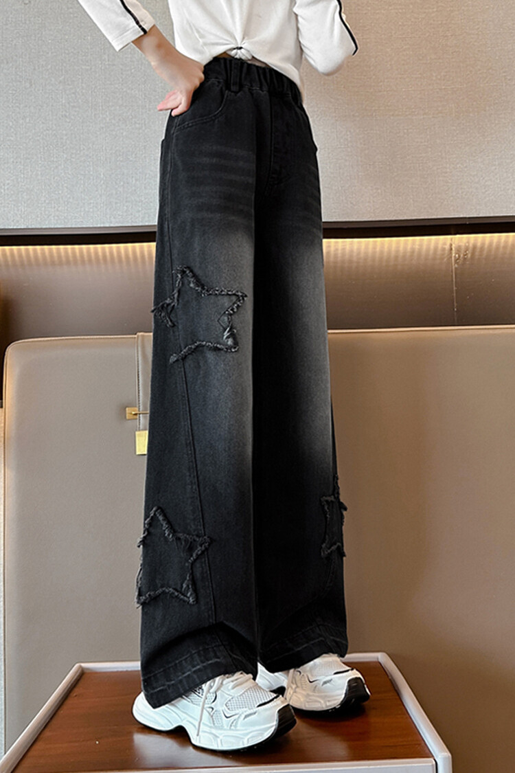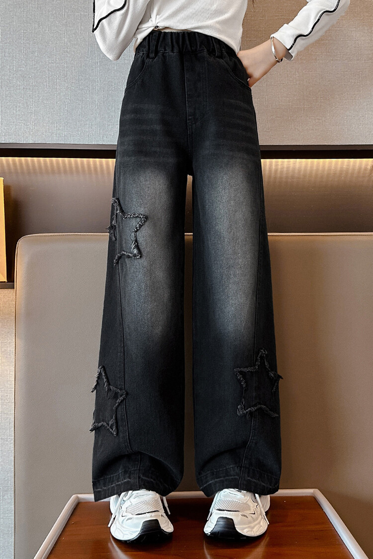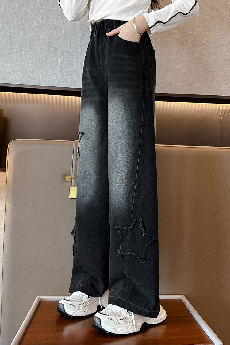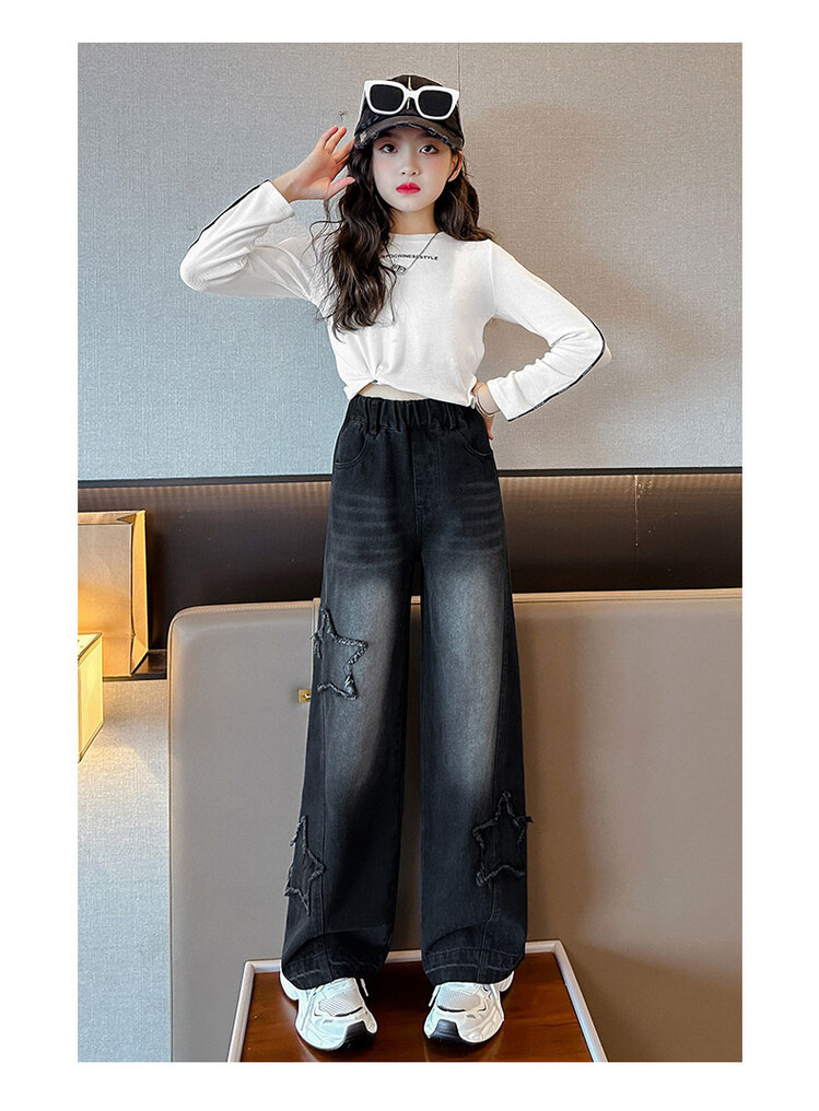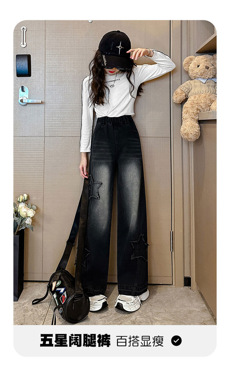 여아 봄옷 바지 2025년 봄 가을 신상 큰아이 봄 패션 자수 스트레이트 와이드 레그 아동 청바지스토어 가기