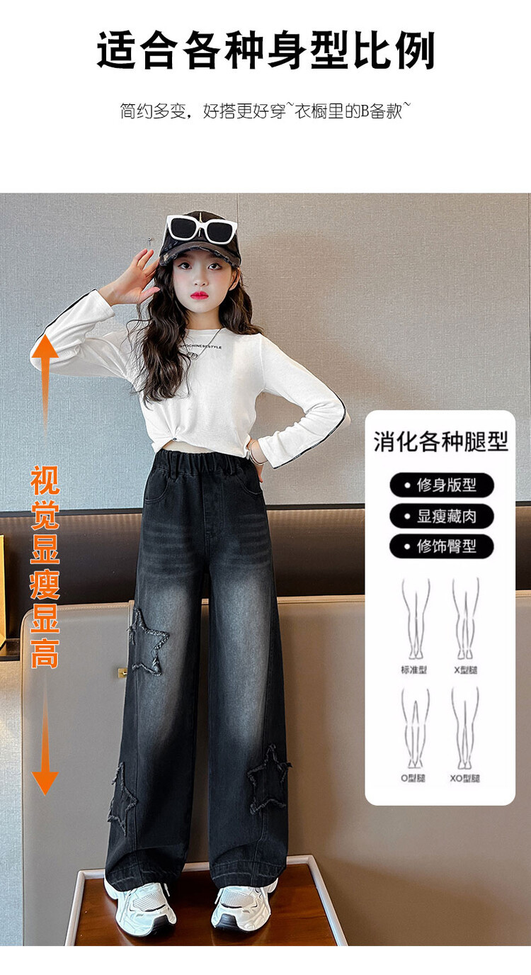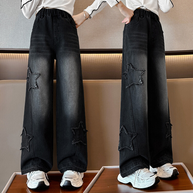 여아 봄옷 바지 2025년 봄 가을 신상 큰아이 봄 패션 자수 스트레이트 와이드 레그 아동 청바지
