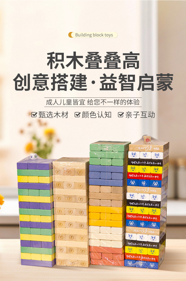 맞춤형 빌딩 블록, 대형, 중형 및 소형 Jenga, 맞춤형 보드 게임, 로고 컬러 박스 디자인 지원, 국경 간 인기 판매스토어 가기
