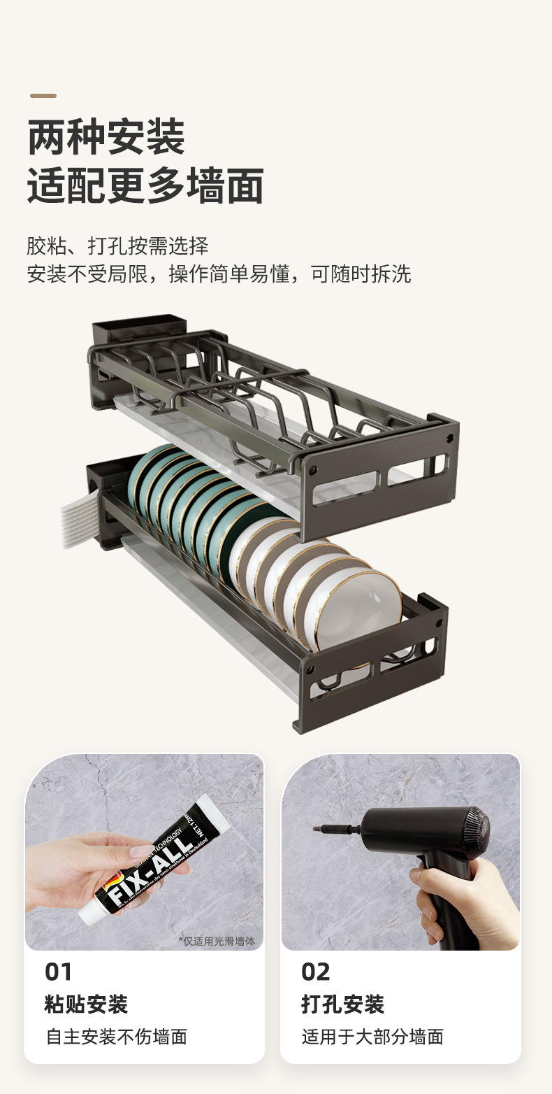 • 블랙 [그릇걸이+접시걸이+젓가락통*2+숟가락통*2] 펀치없는 겸용설치