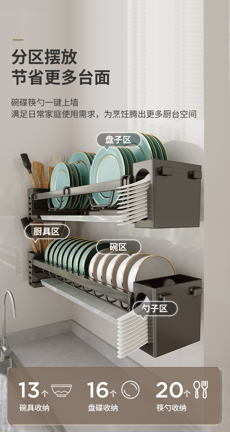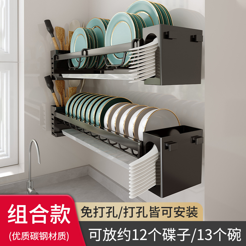 주방 접시 보관 랙 벽걸이 형 접시 랙 배수 접시 선반 보관 용 젓가락 보관 상자