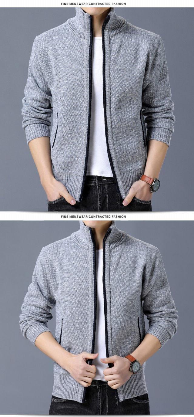 가을과 겨울 남성의 두꺼운 스탠드 칼라 니트 카디건 도매 새로운 단색 코트 트렌디 한 중년 스웨터 재킷스토어 가기