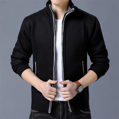 가을과 겨울 남성의 두꺼운 스탠드 칼라 니트 카디건 도매 새로운 단색 코트 트렌디 한 중년 스웨터 재킷