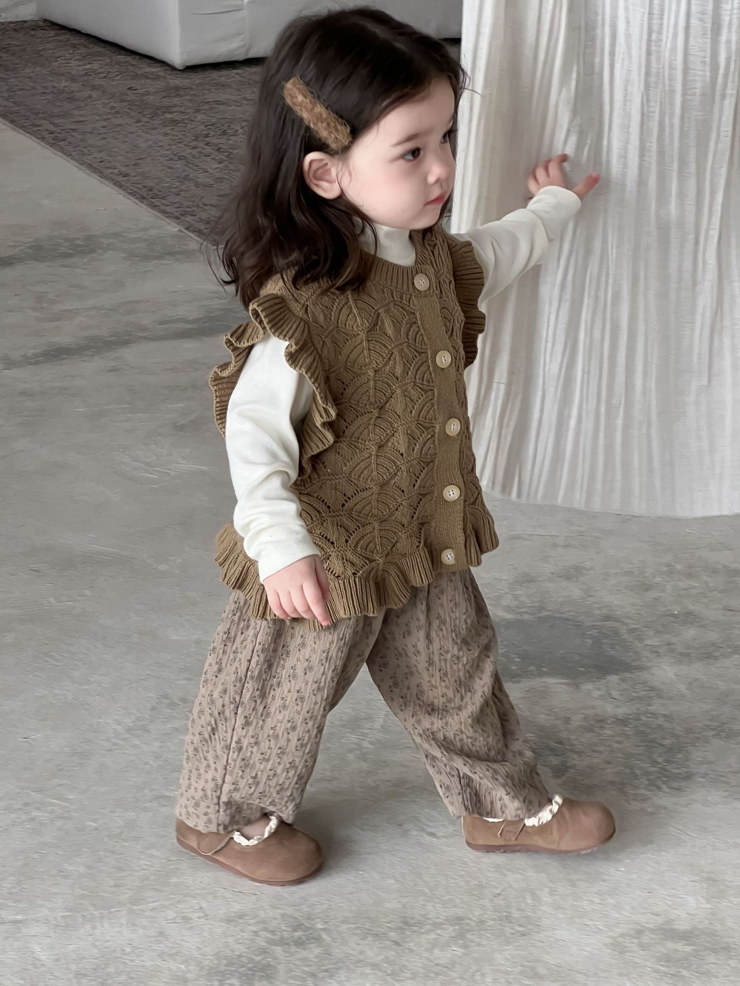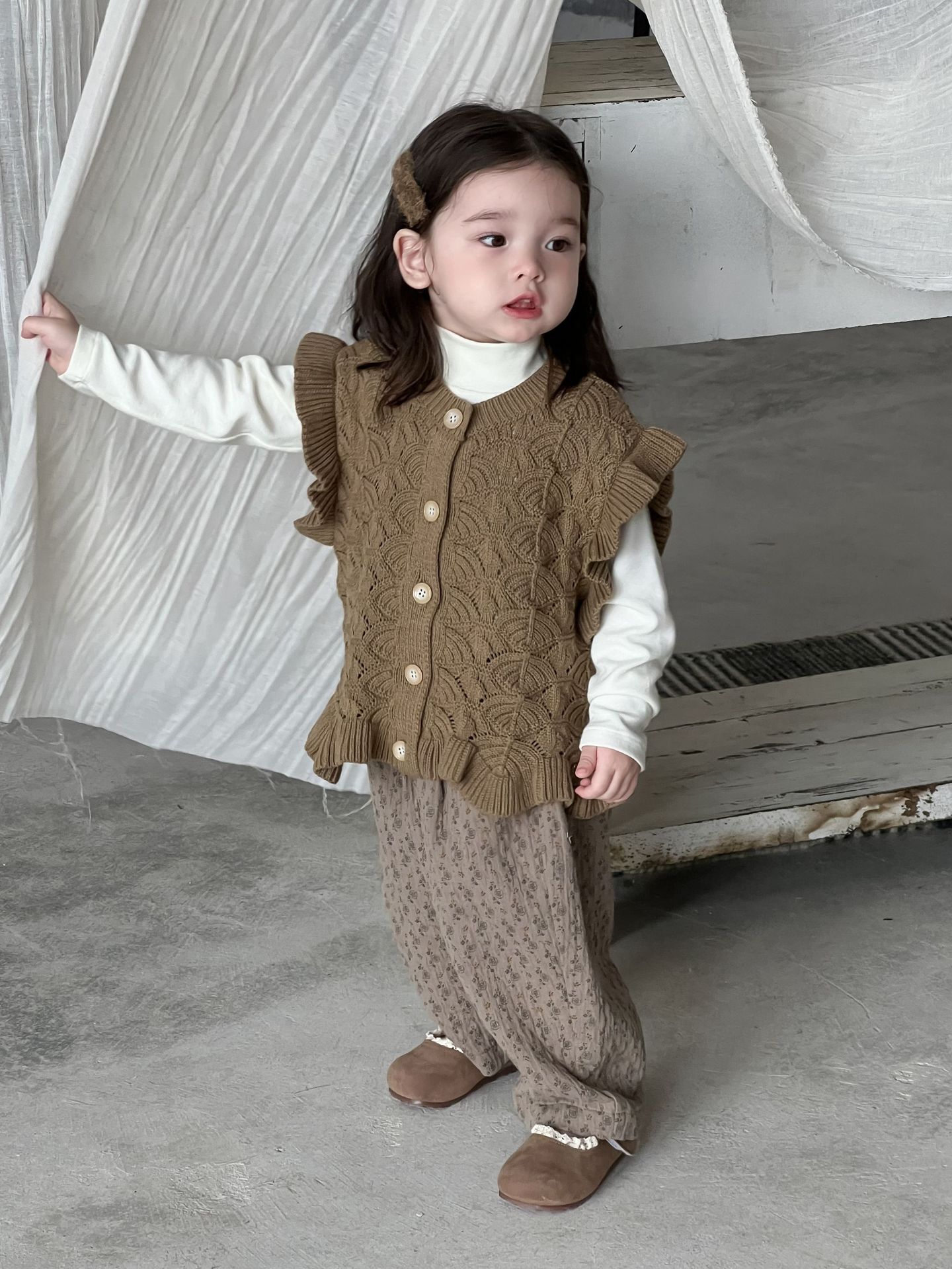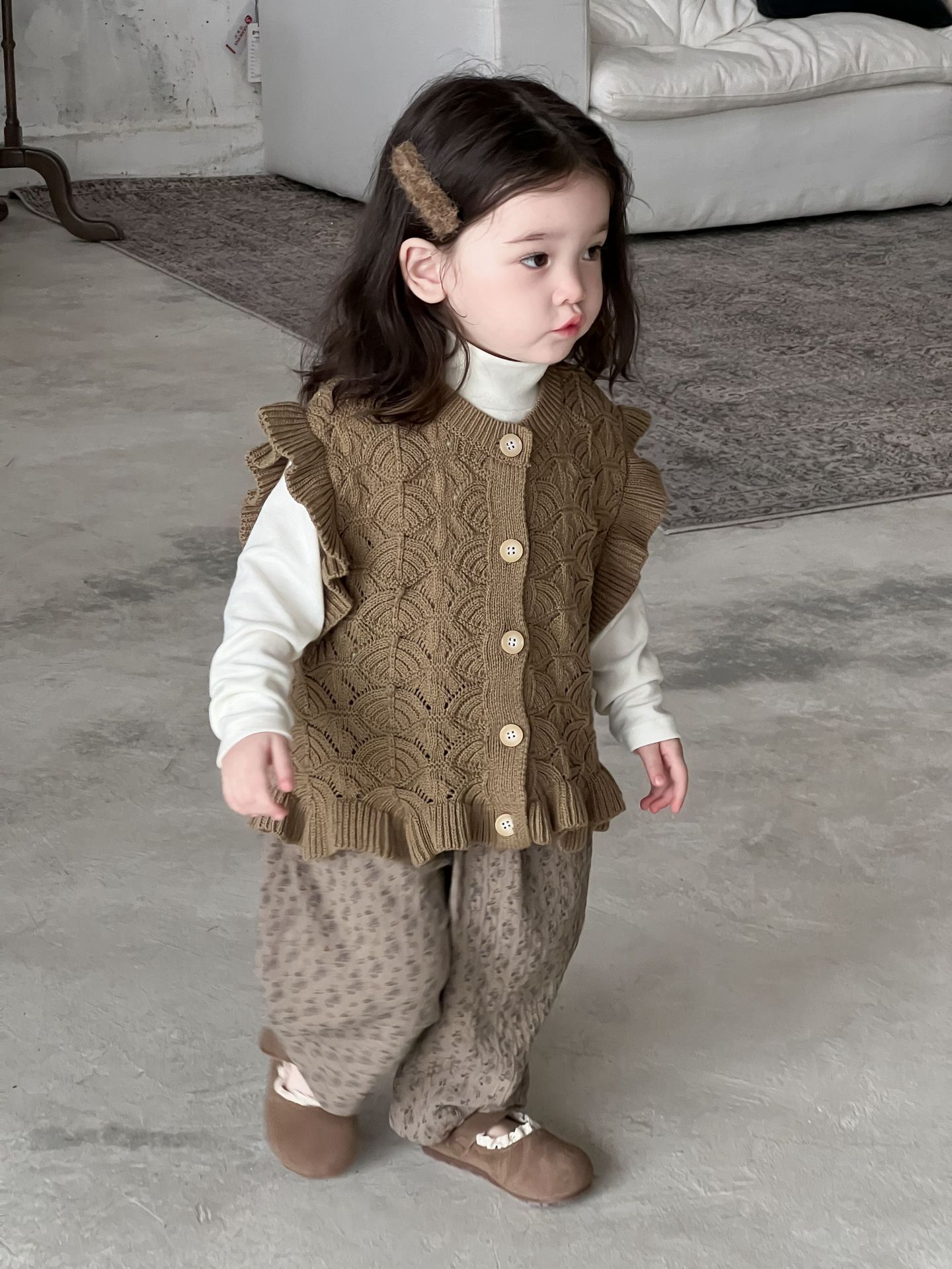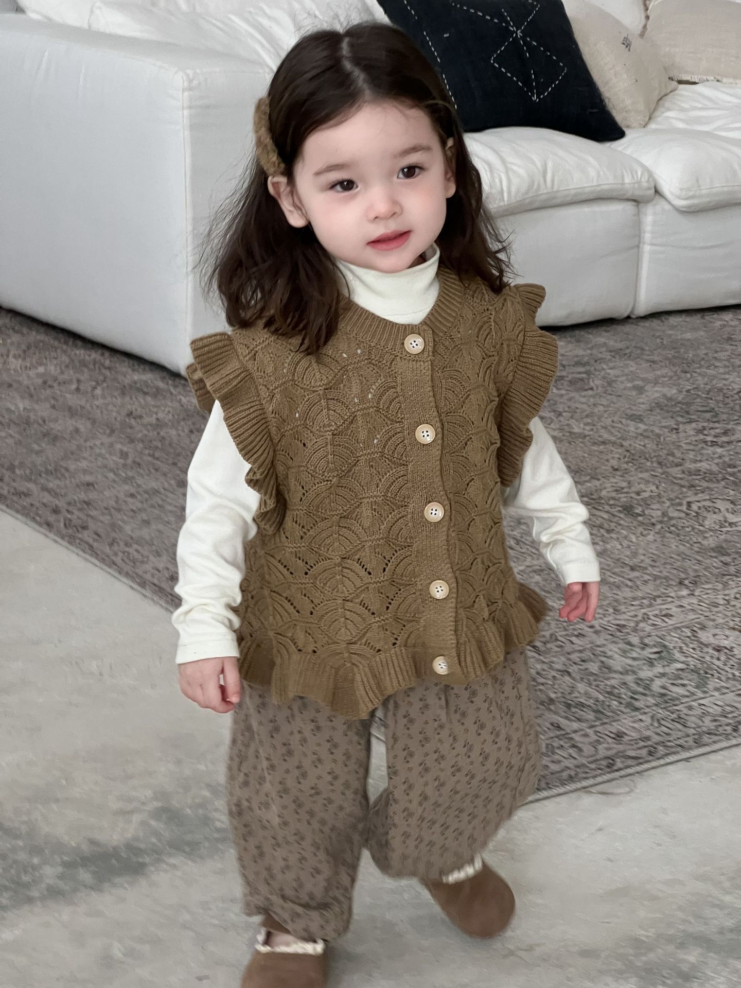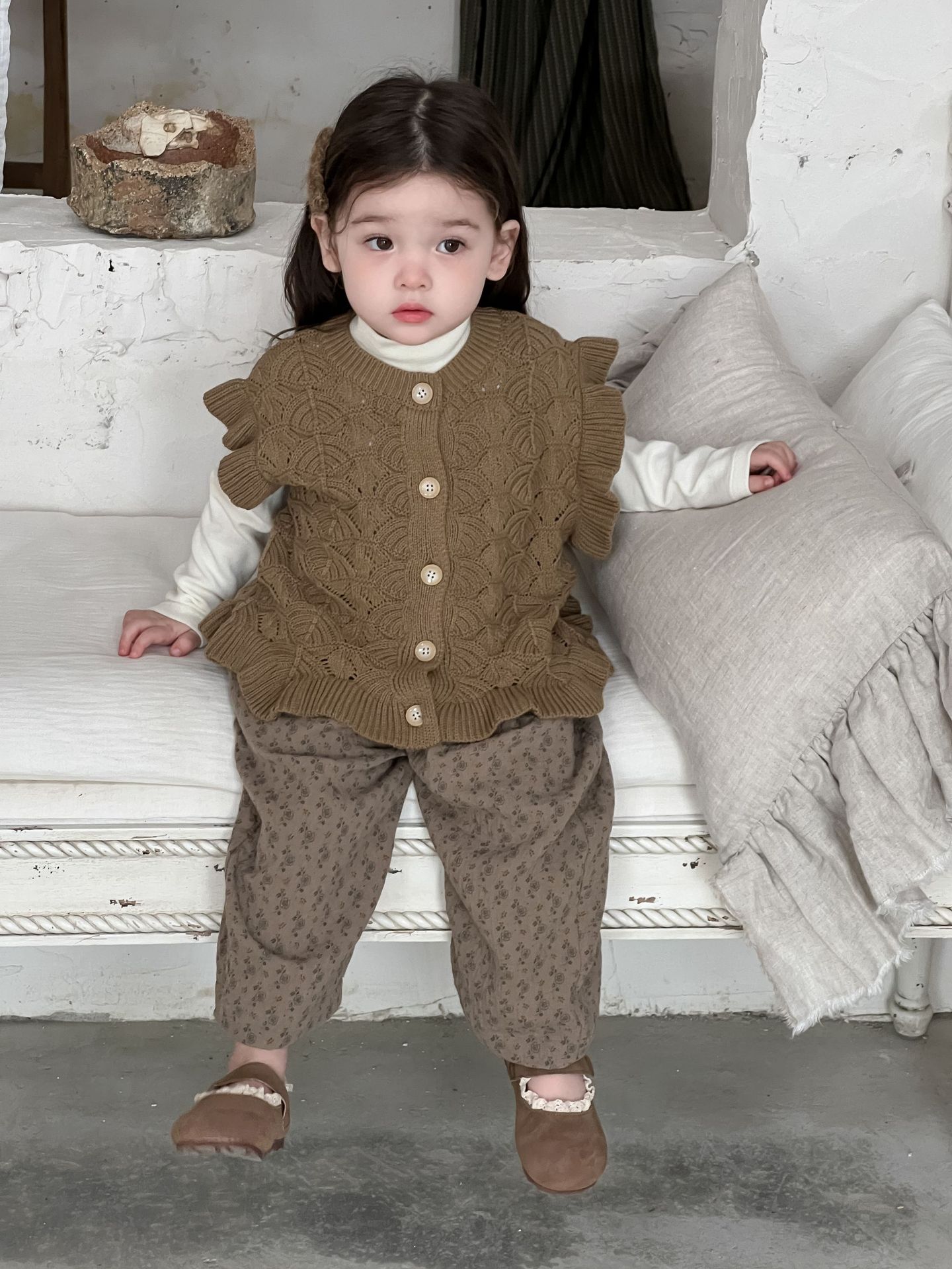 가을 아기 여아 니트 플로럴 팬츠와 스웨터 조끼 가디건 세트
