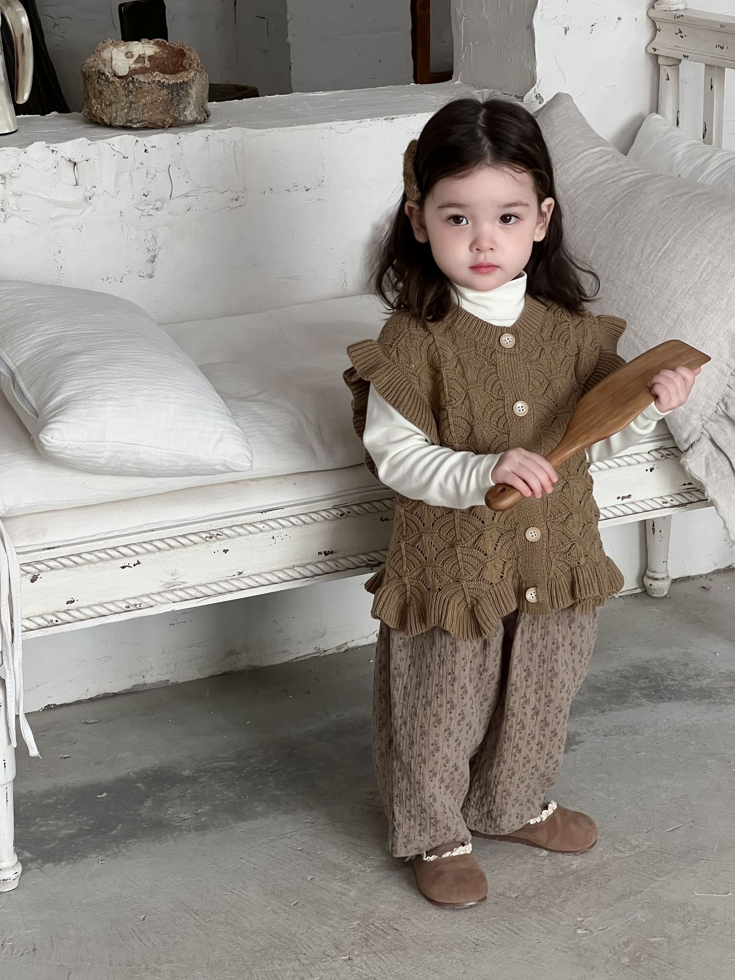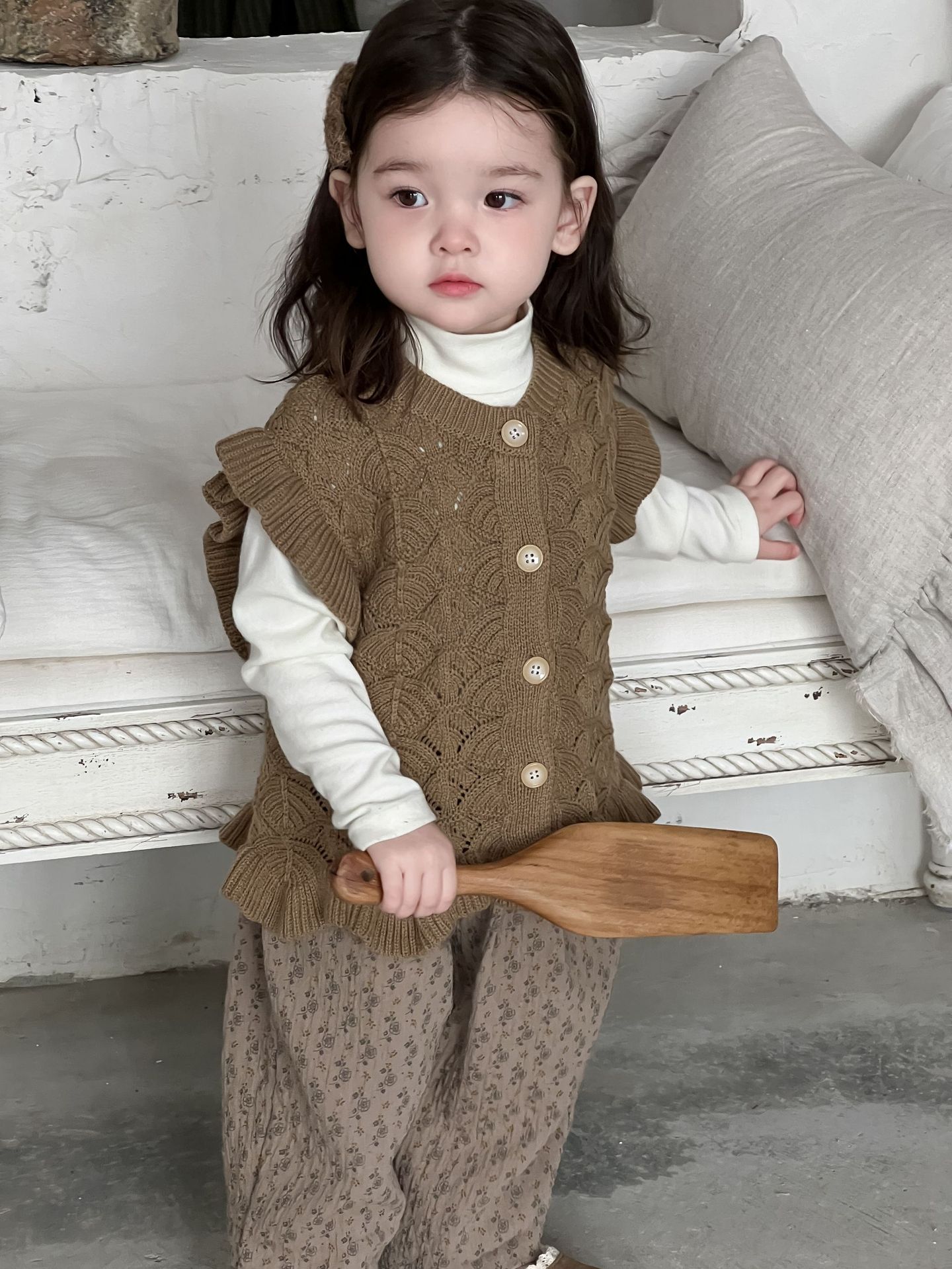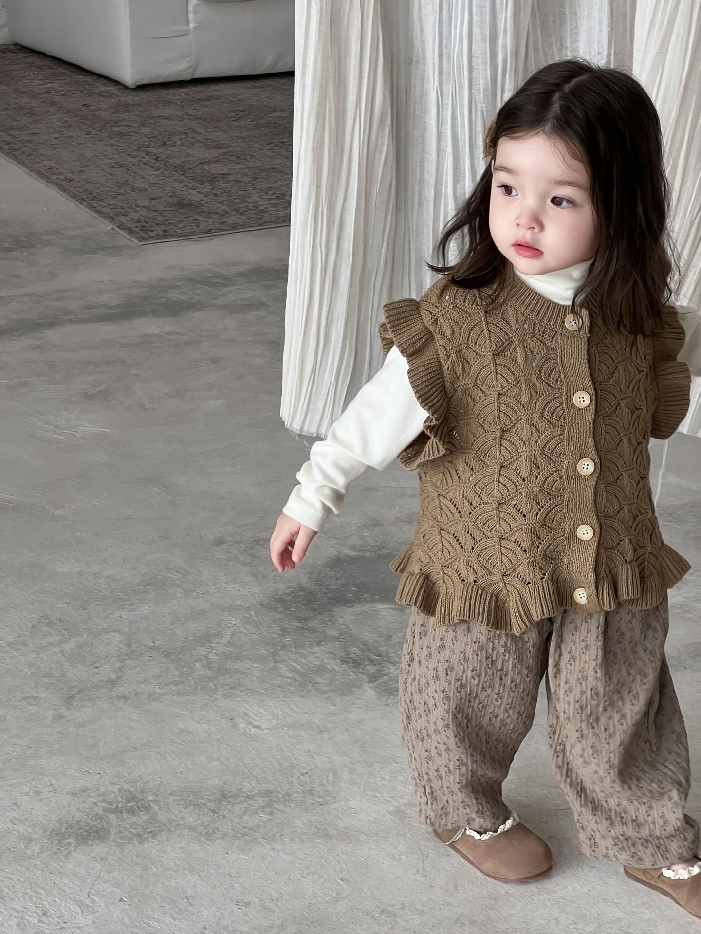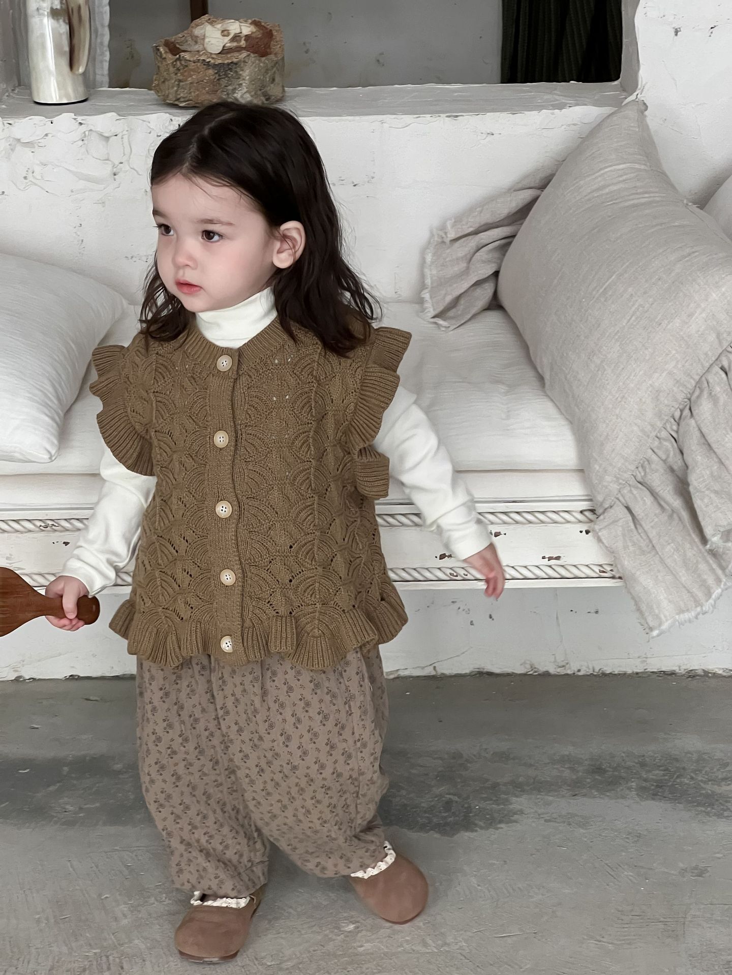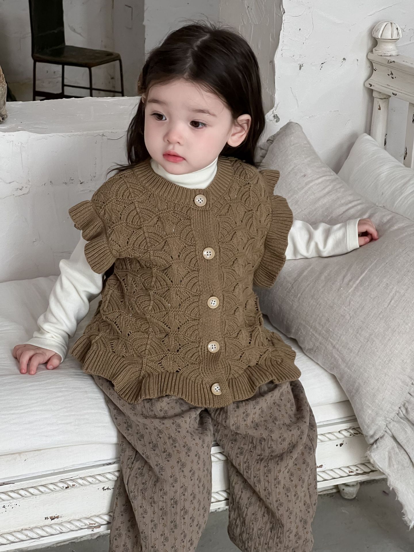 가을 아기 여아 니트 플로럴 팬츠와 스웨터 조끼 가디건 세트스토어 가기