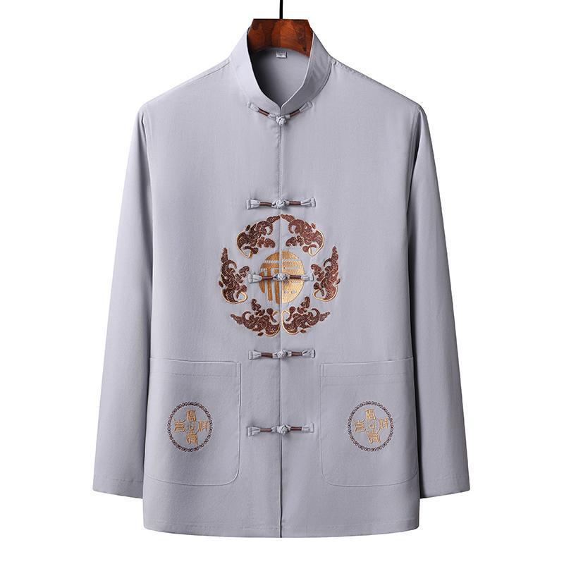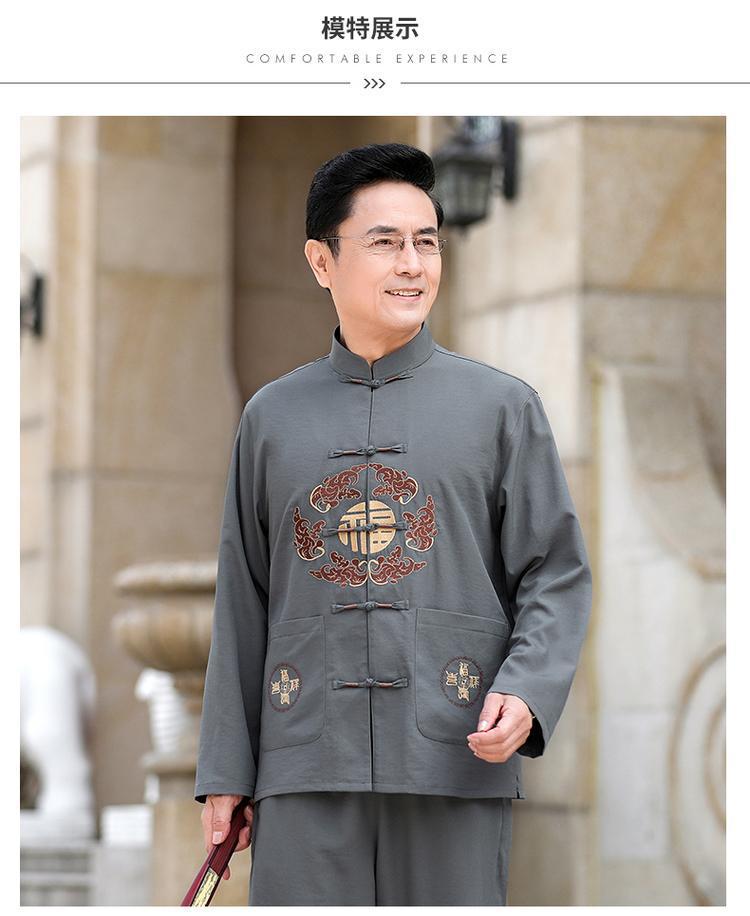 당나라 세트 남성 중년 · 고령자 아빠 봄 · 가을 긴팔 얼음실크 세트 70 세 할아버지 여름 세트 노인 얇은 한푸스토어 가기