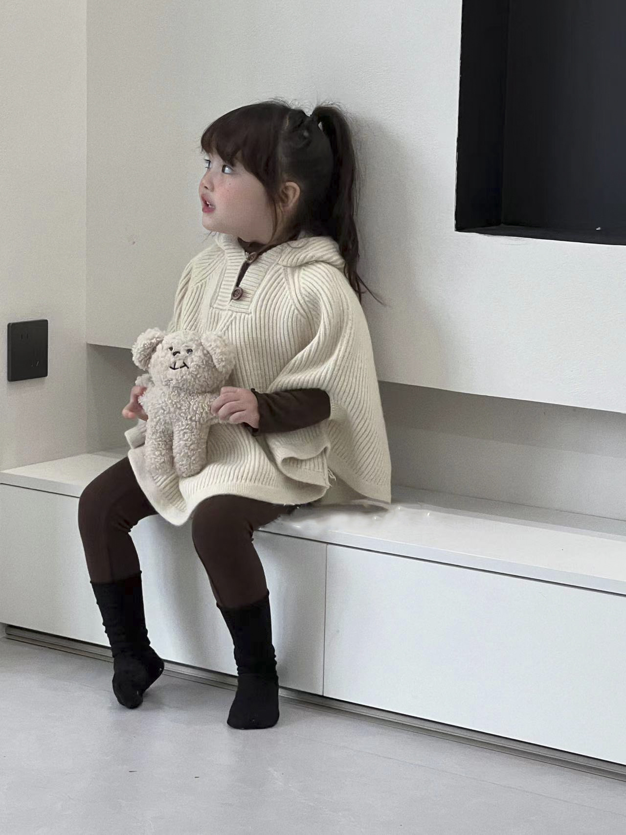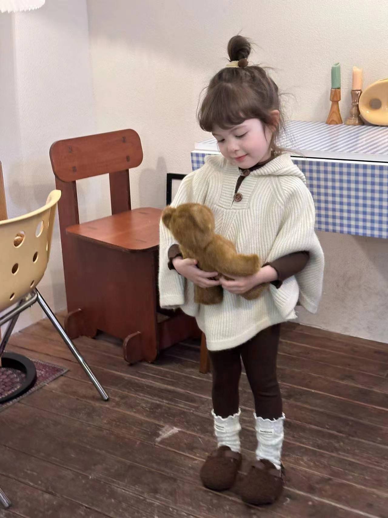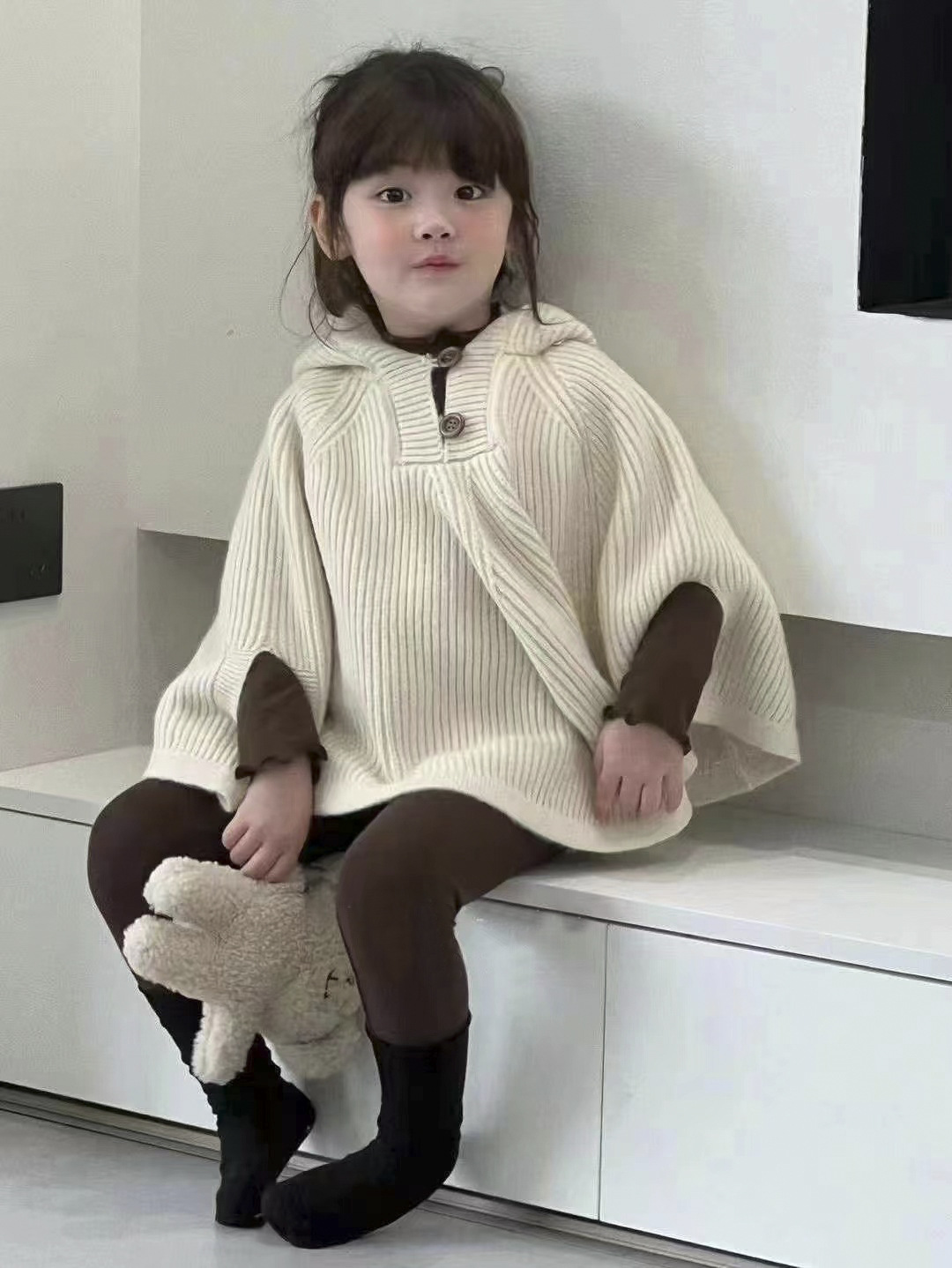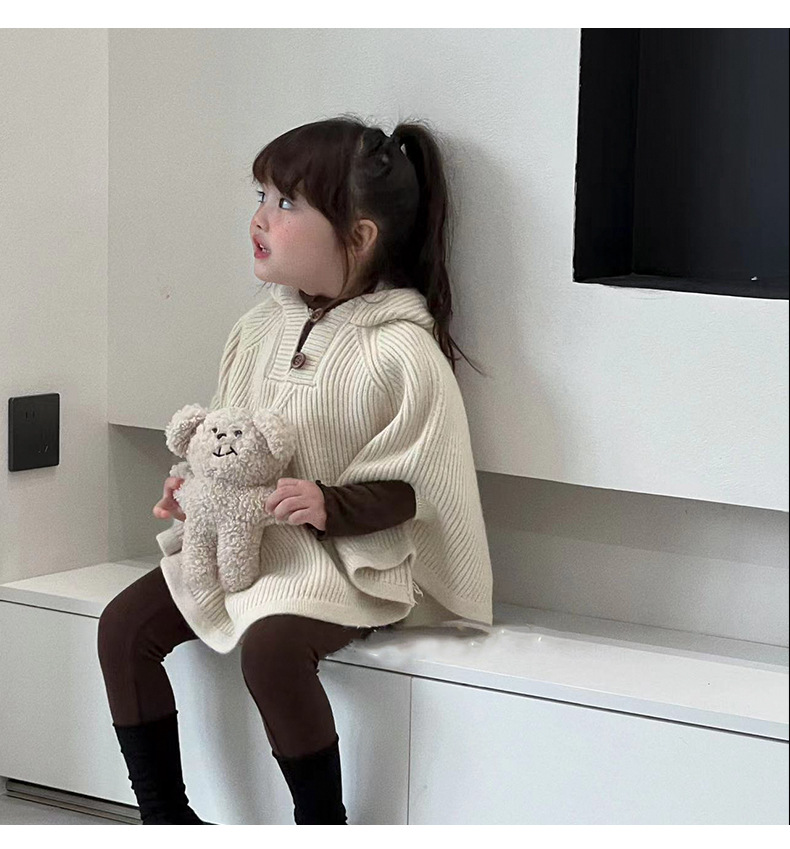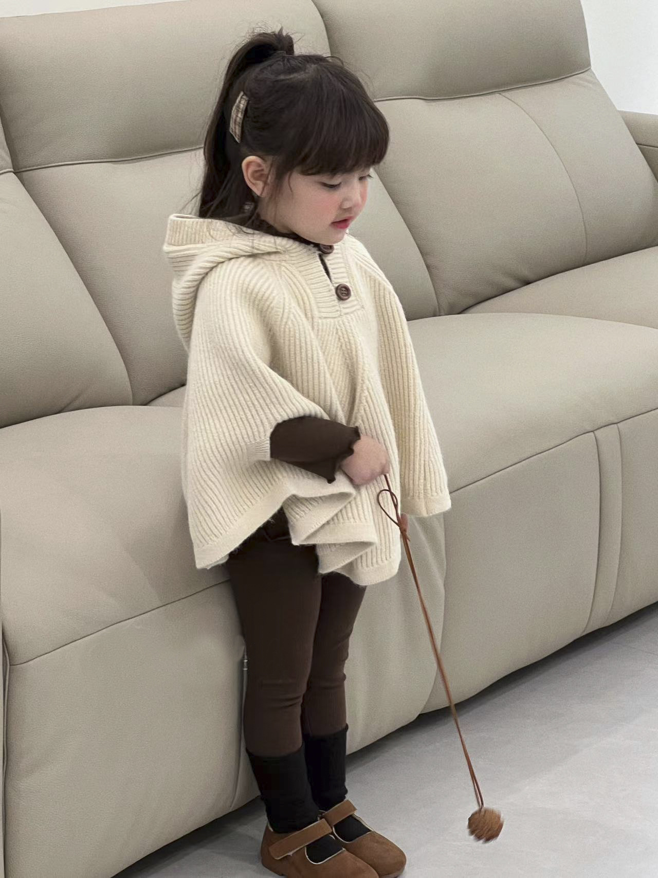 2024 가을과 겨울 새로운 아동복 한국 어린이 후드 스웨터 소녀 울 케이프 베이비 코트 스웨터 케이프
