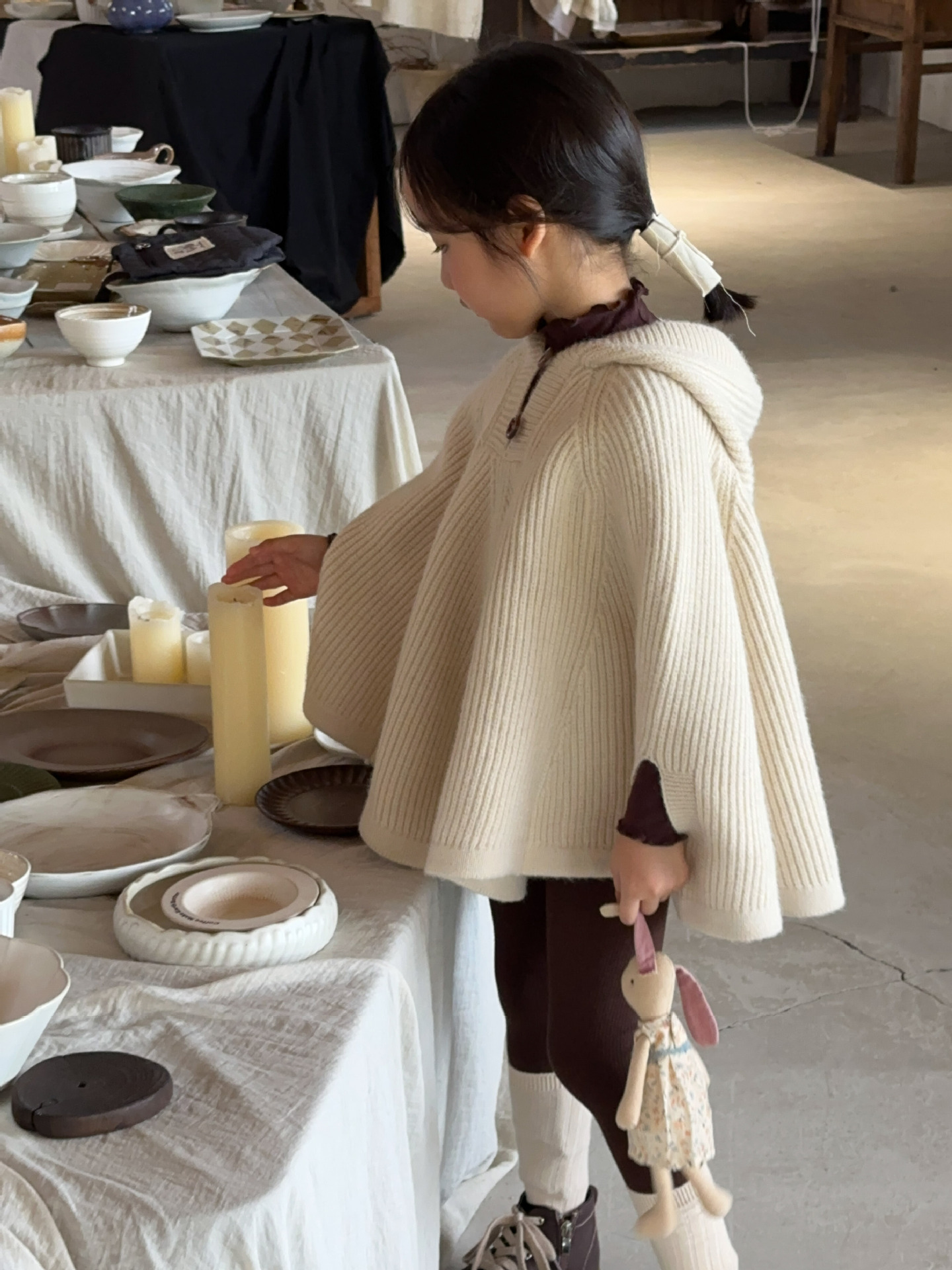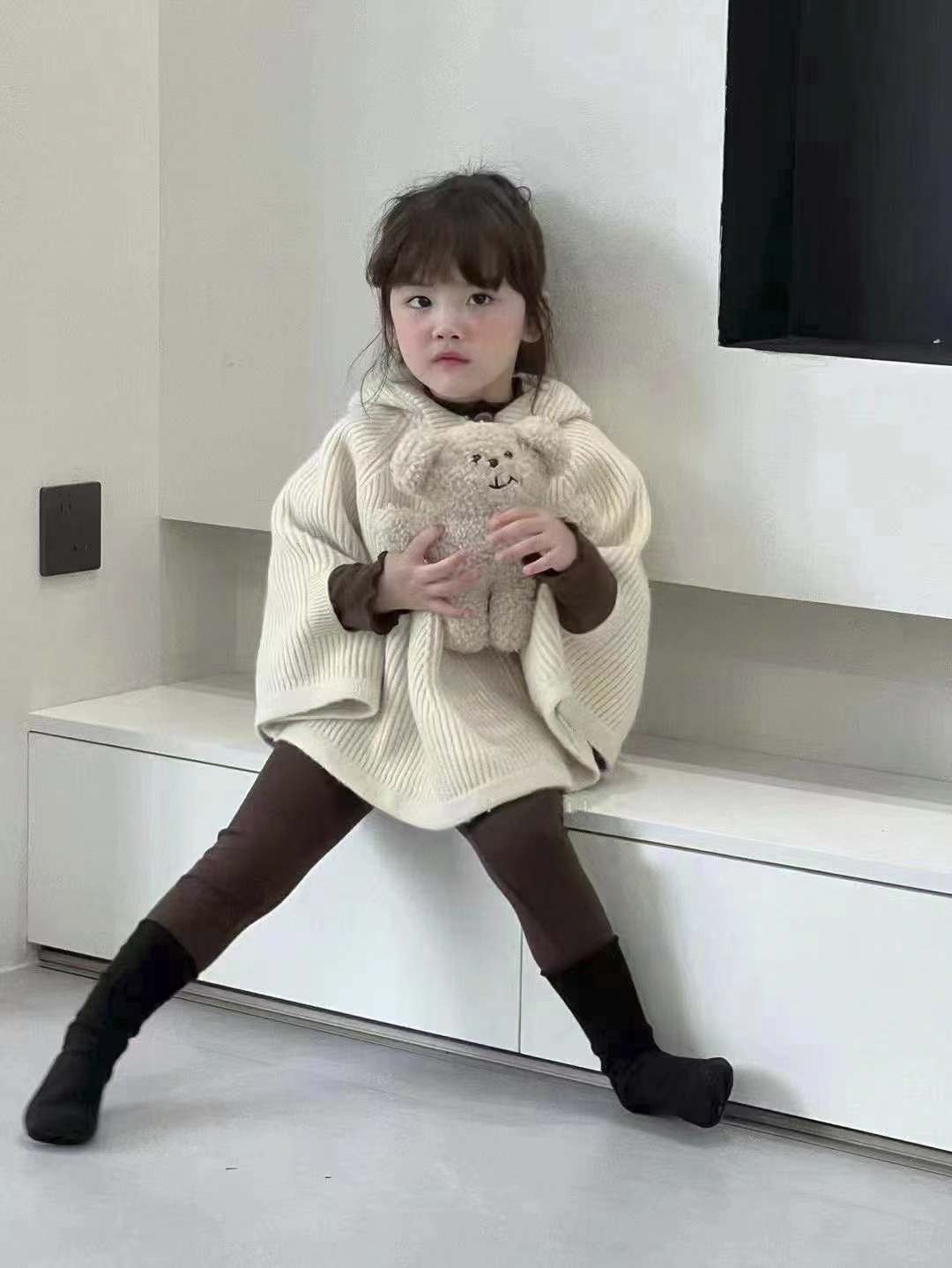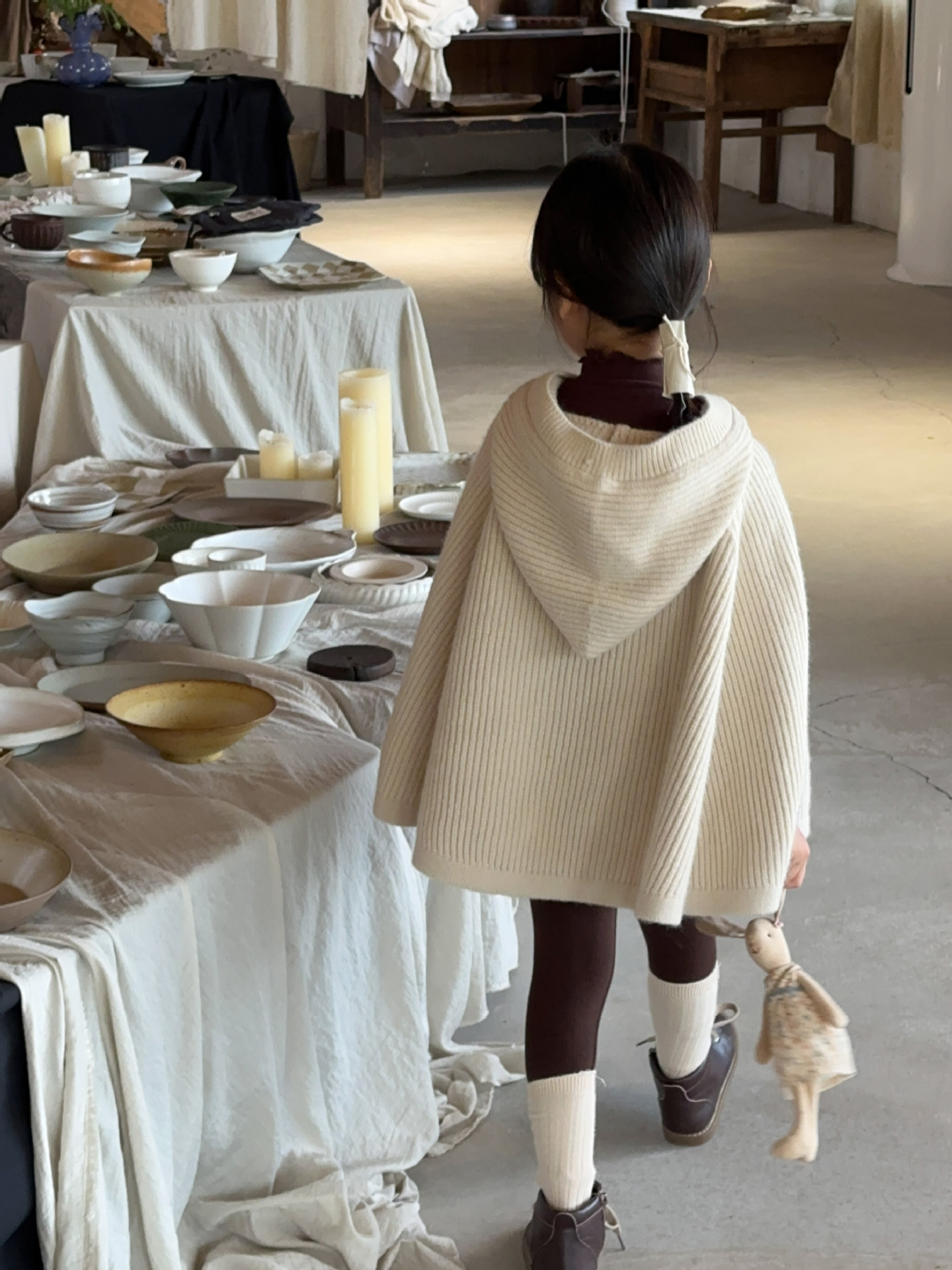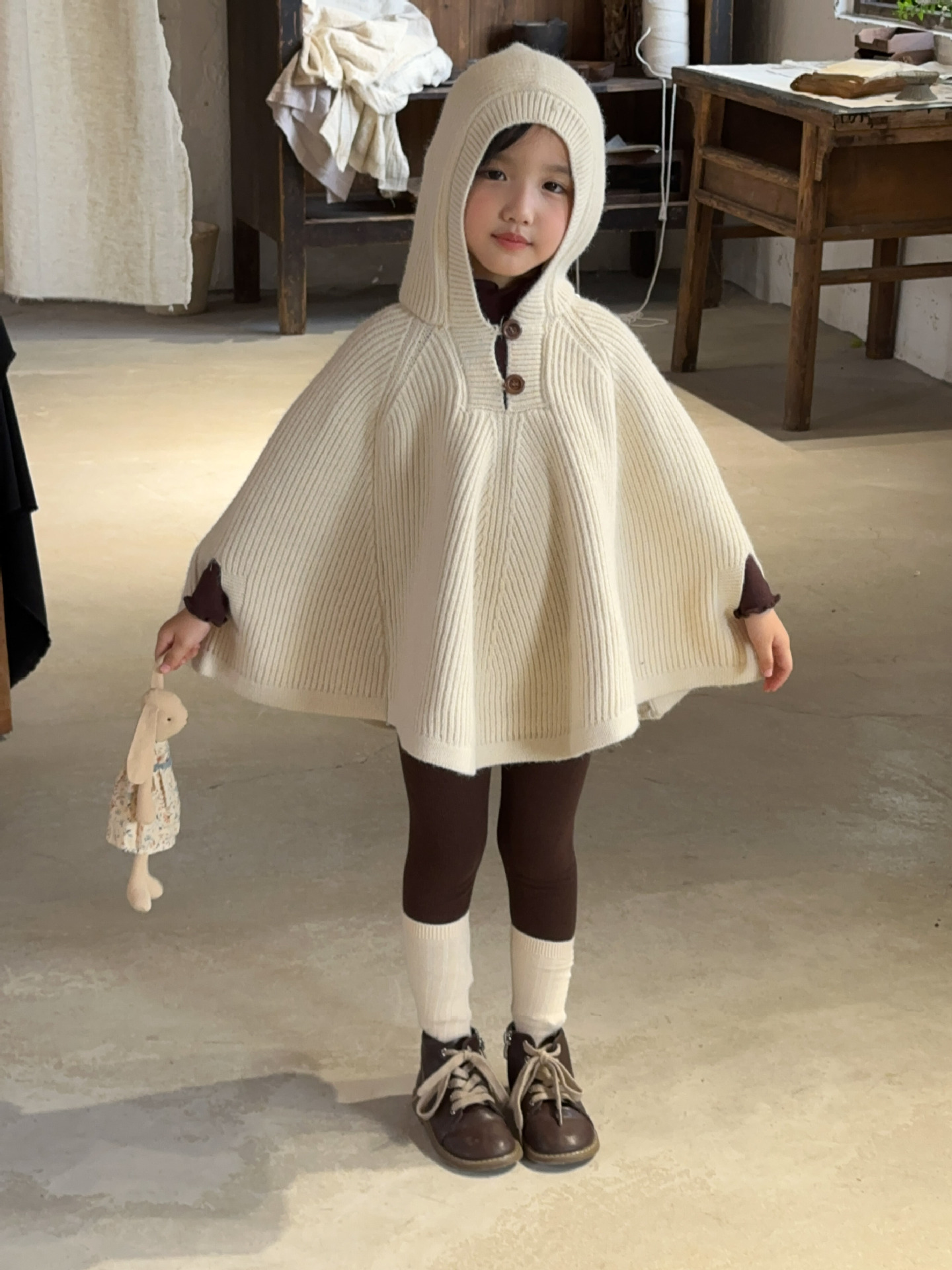 2024 가을과 겨울 새로운 아동복 한국 어린이 후드 스웨터 소녀 울 케이프 베이비 코트 스웨터 케이프