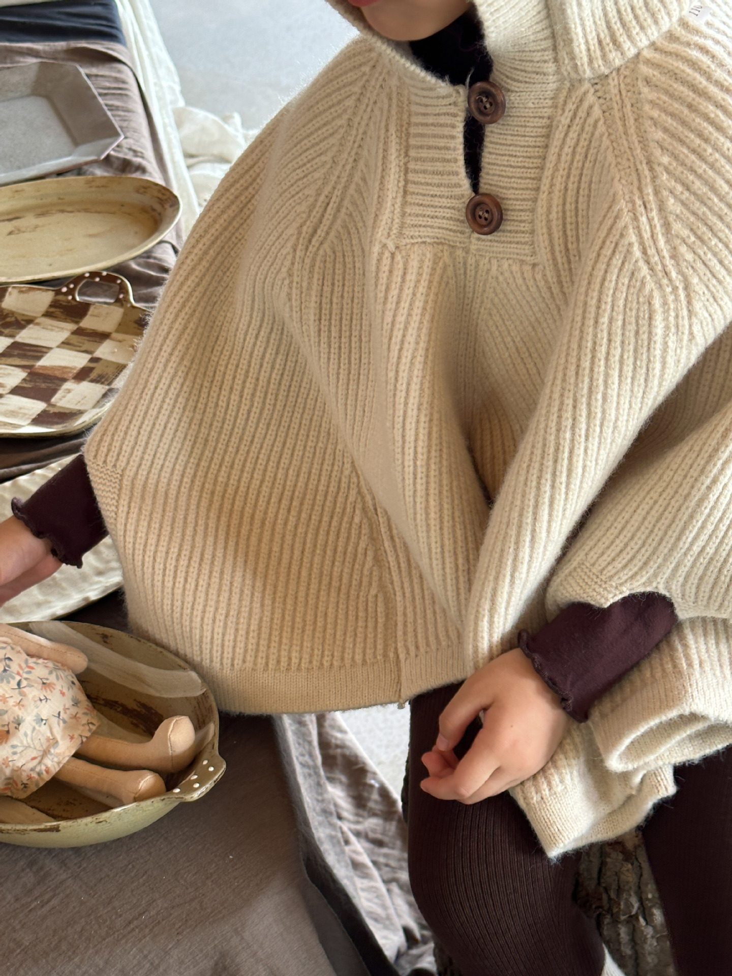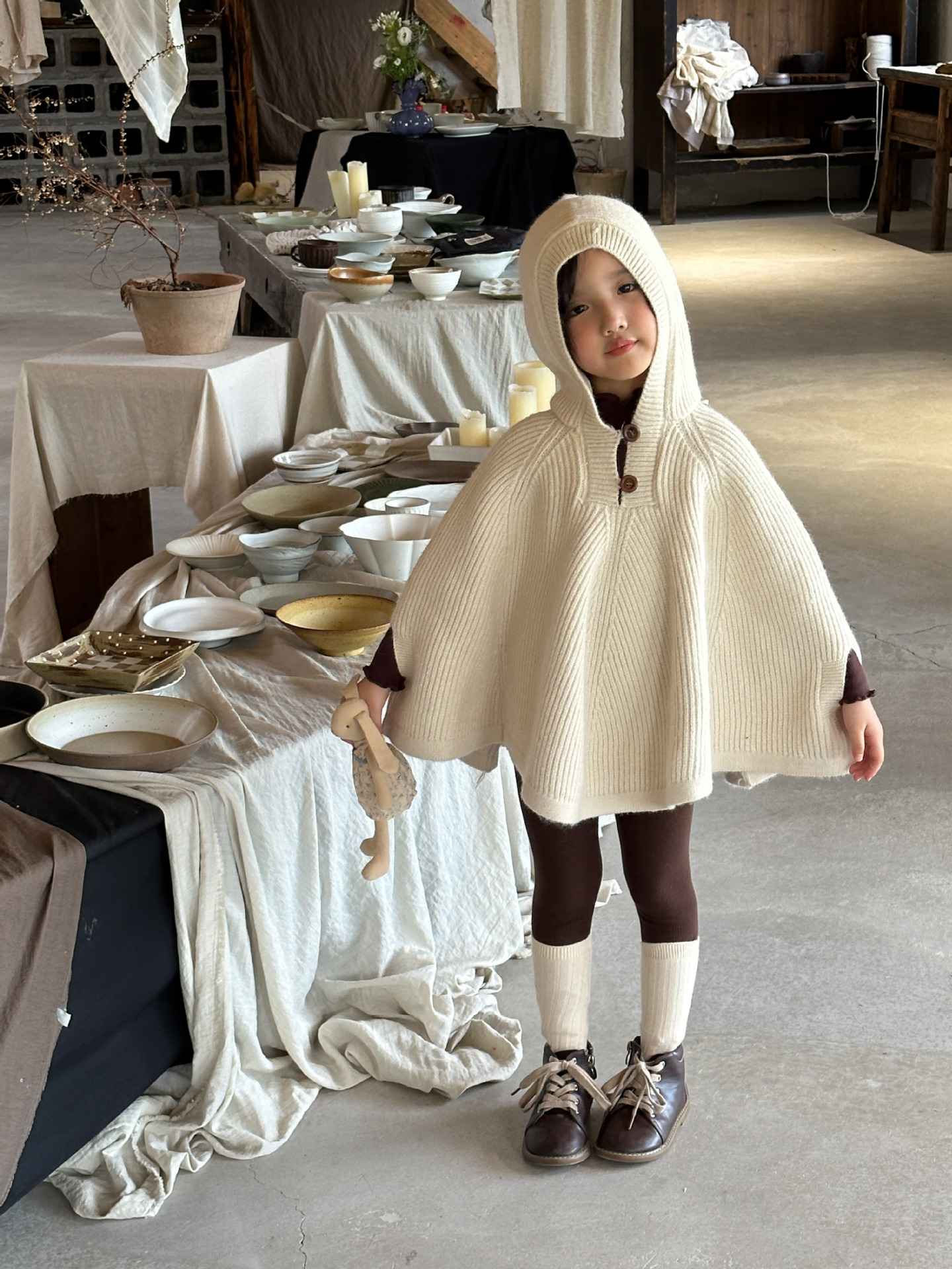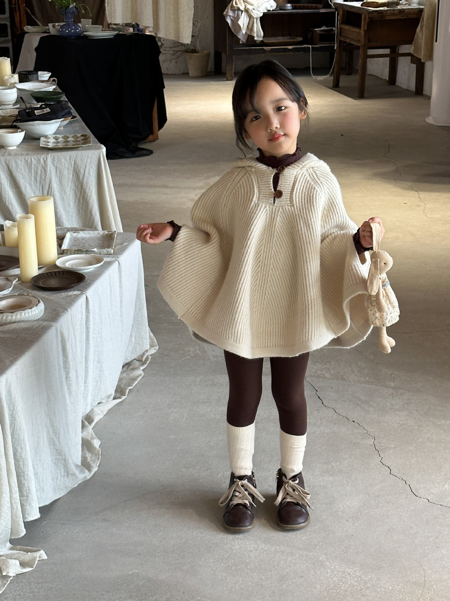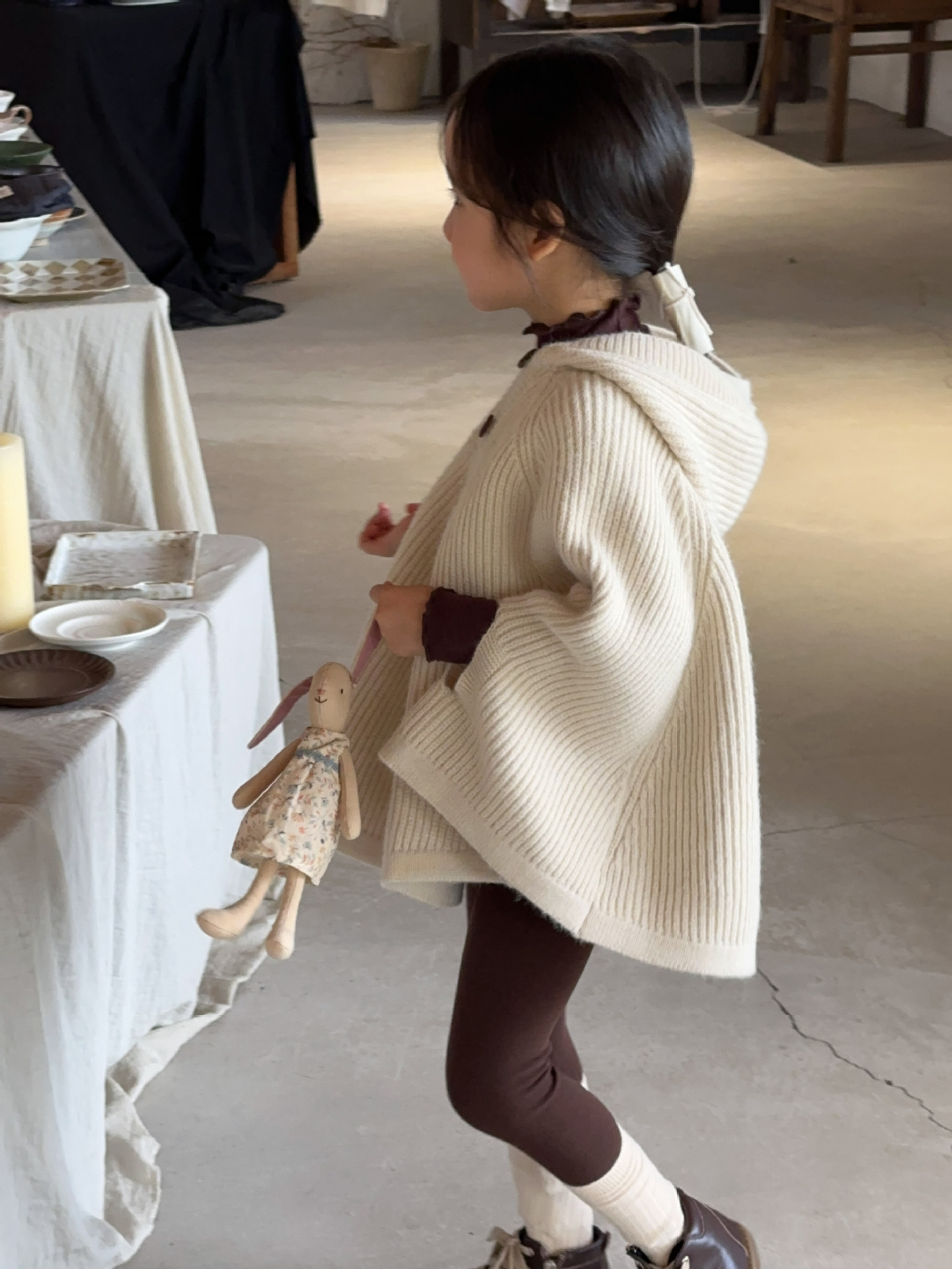 2024 가을과 겨울 새로운 아동복 한국 어린이 후드 스웨터 소녀 울 케이프 베이비 코트 스웨터 케이프