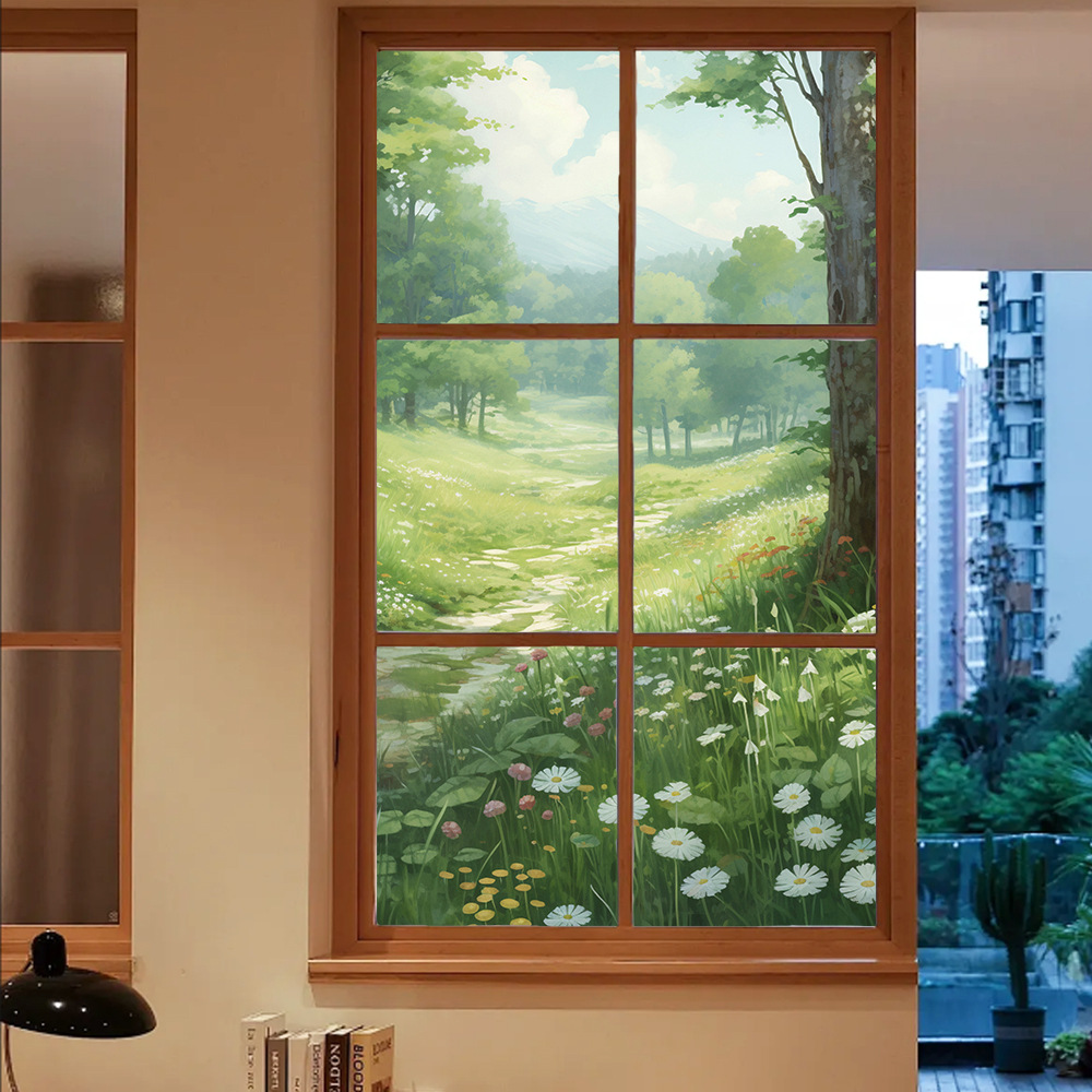 Yiyao BLT5133 녹색 숲 유리 스티커 욕실 장식 개인 정보 보호 유리 문 및 Windows 접착제없는 정전기 스티커