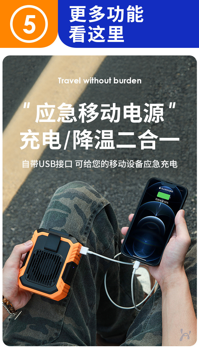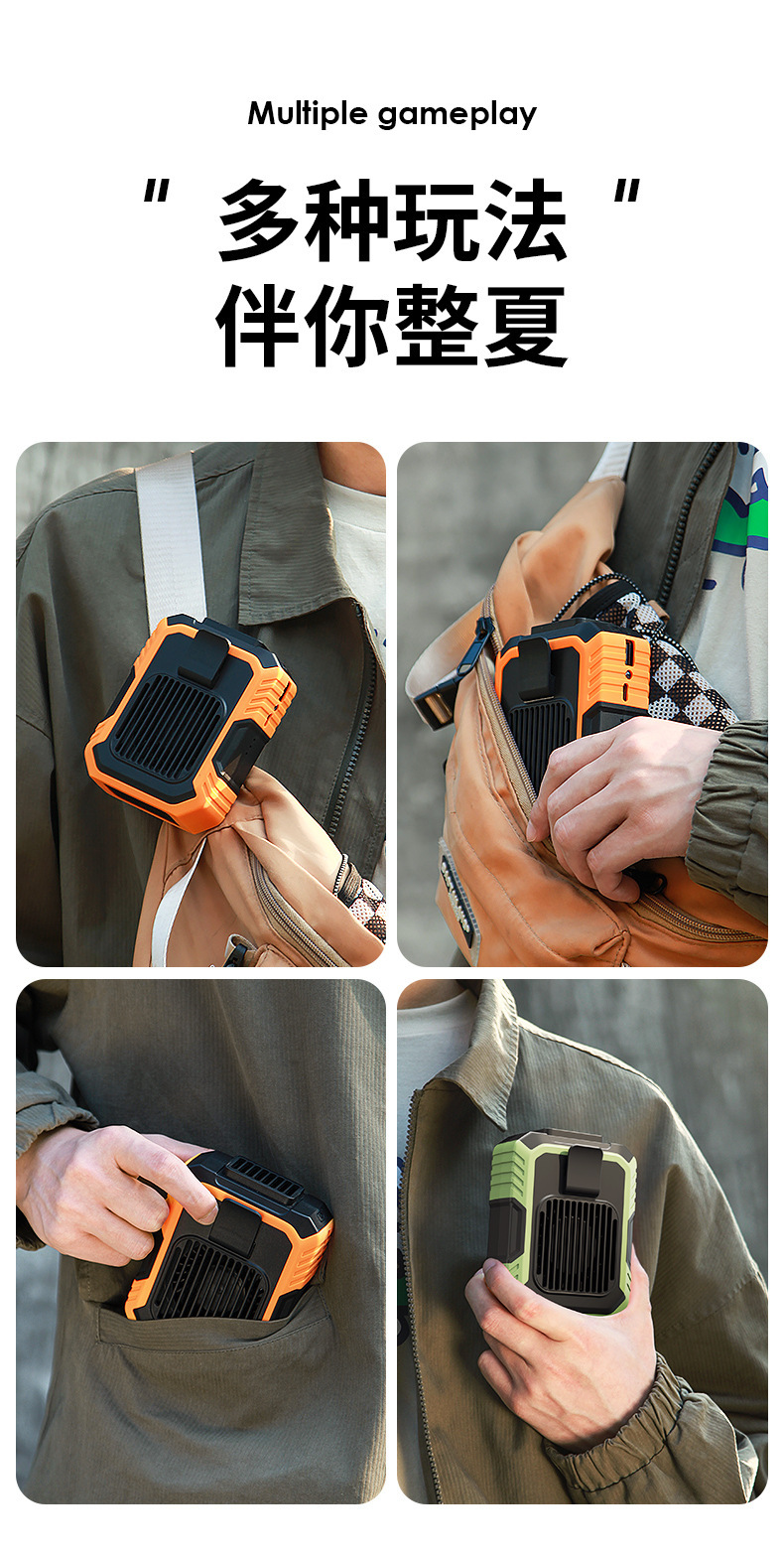 • 경량 F66 허리 장착형 팬 오렌지 + 벨트 * 보조베터리 + 야간 조명 * 4000mAh