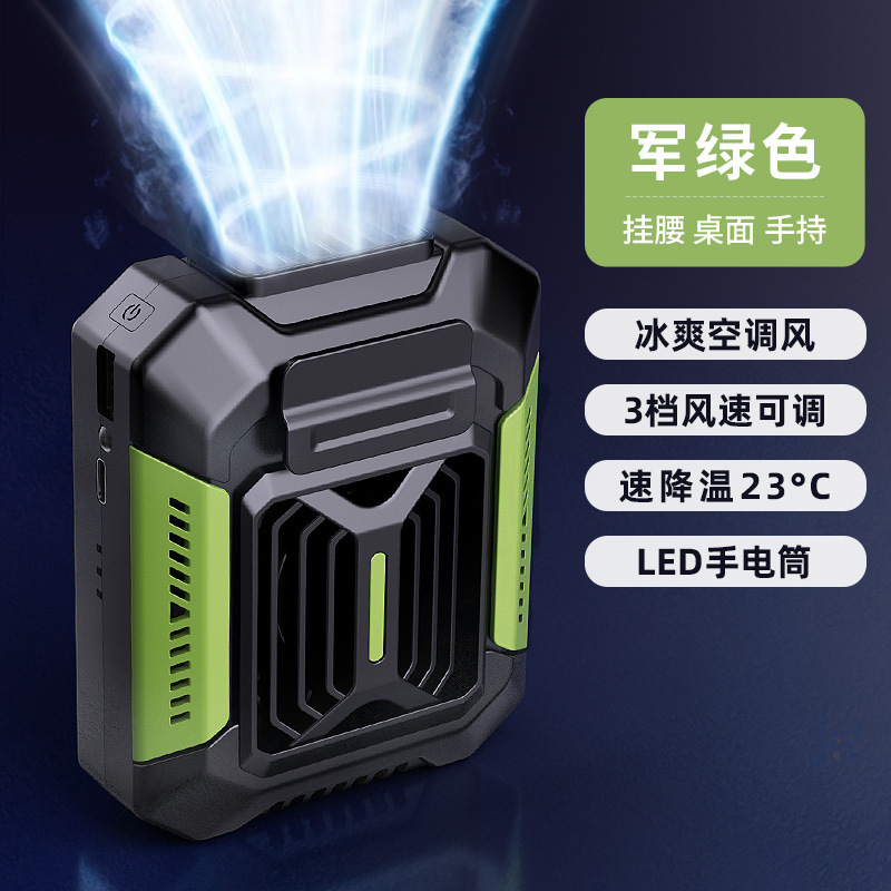 • 경량 F66 허리 장착형 팬 녹색 * 보조베터리 + 야간 조명 * 4000mAh