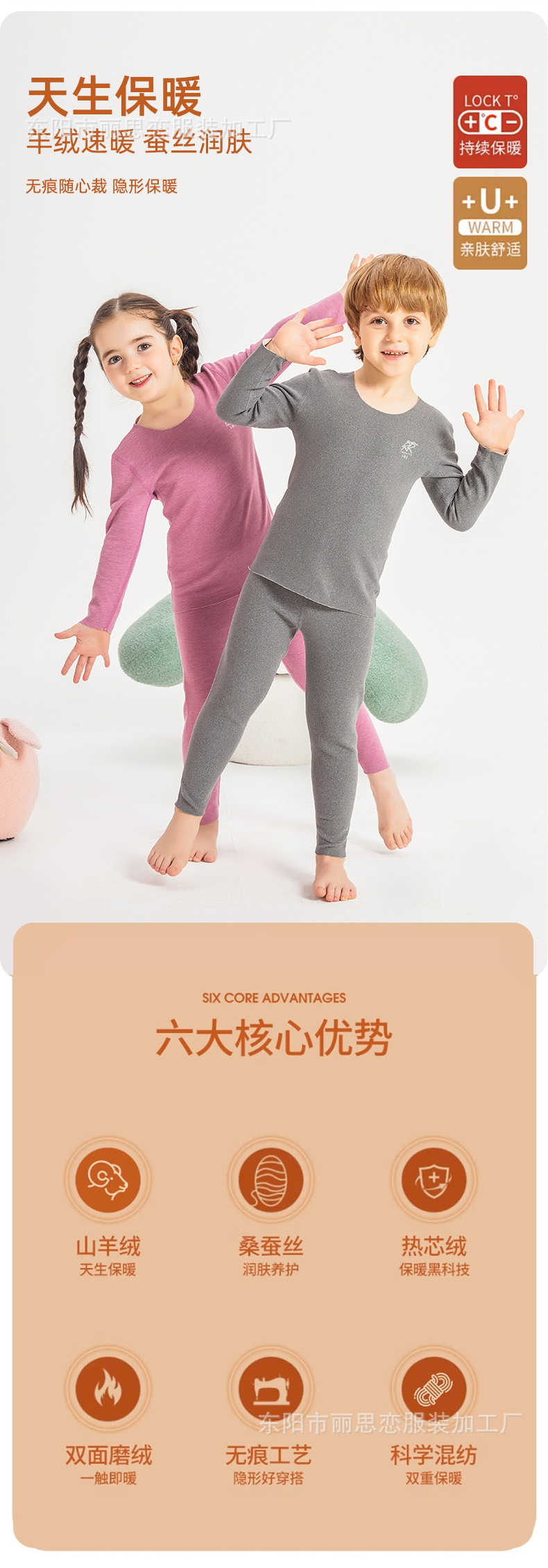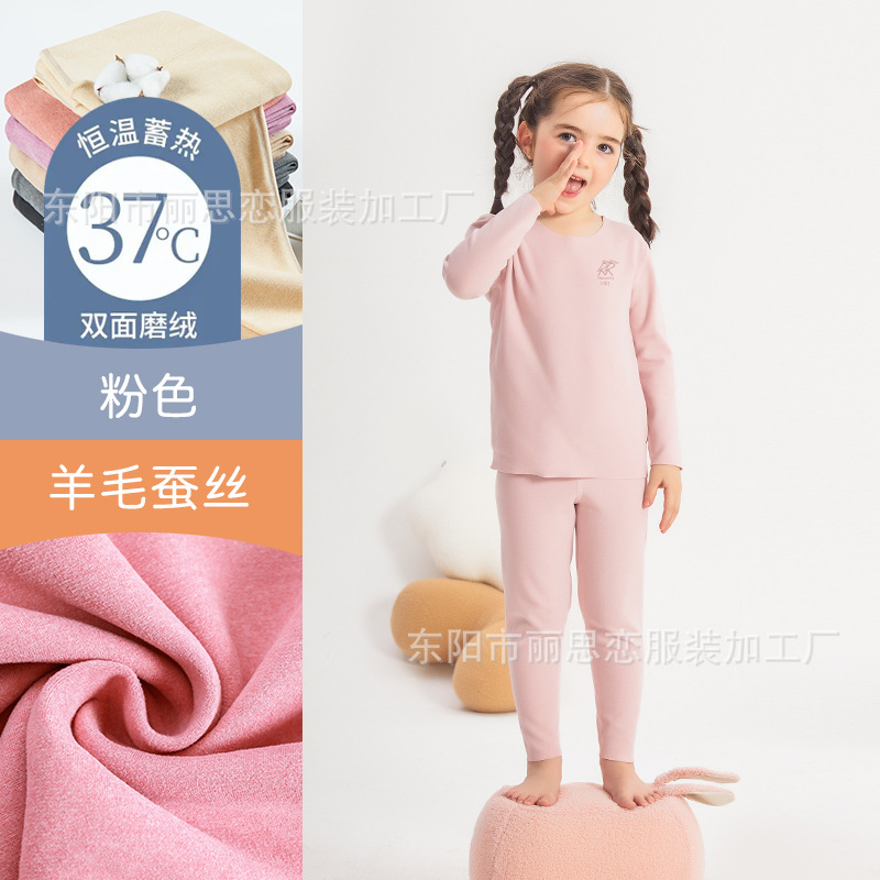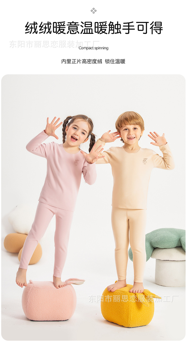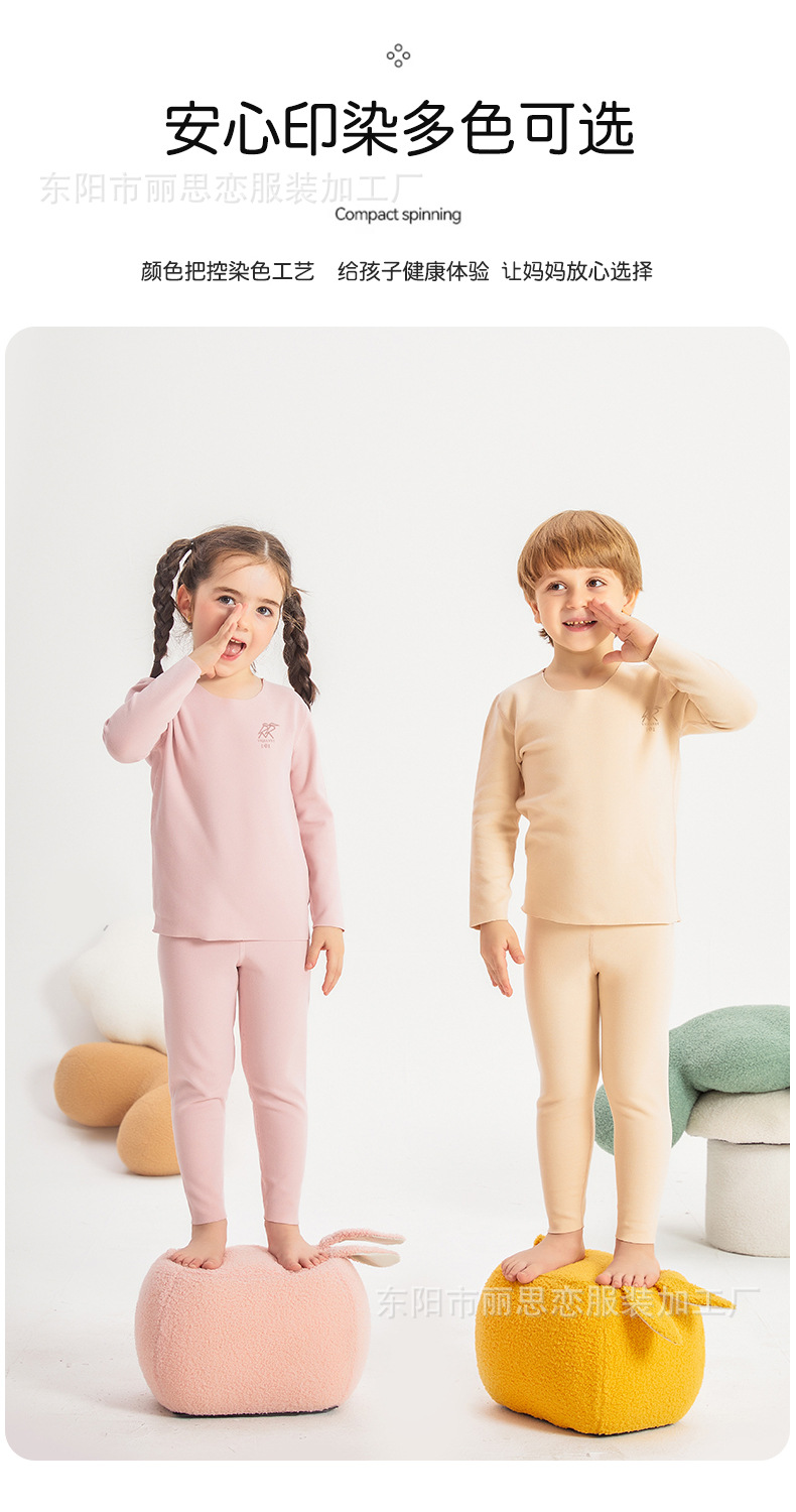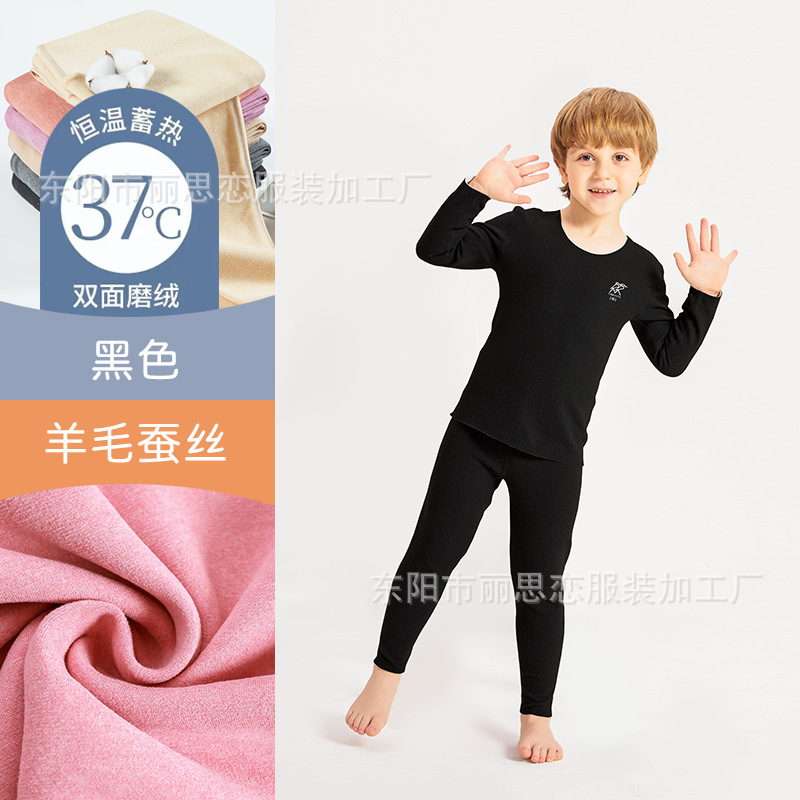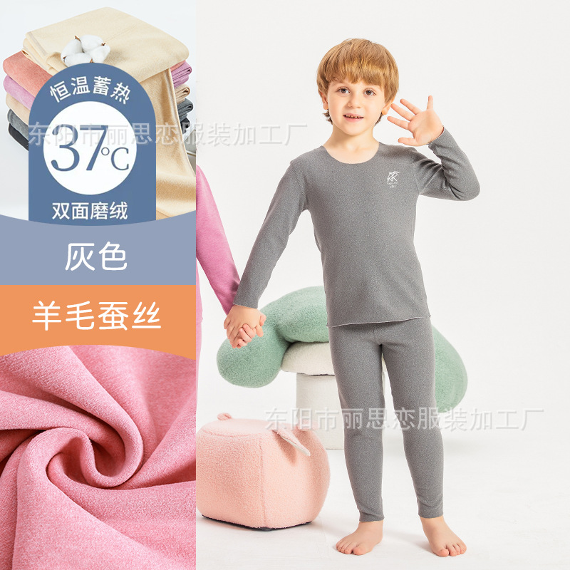 남학생과 여학생을위한 울 실크 따뜻한 속옷 세트 벨벳 어린이 가을 옷과 바지 중 큰 어린이를위한 겨울 백업 셔츠