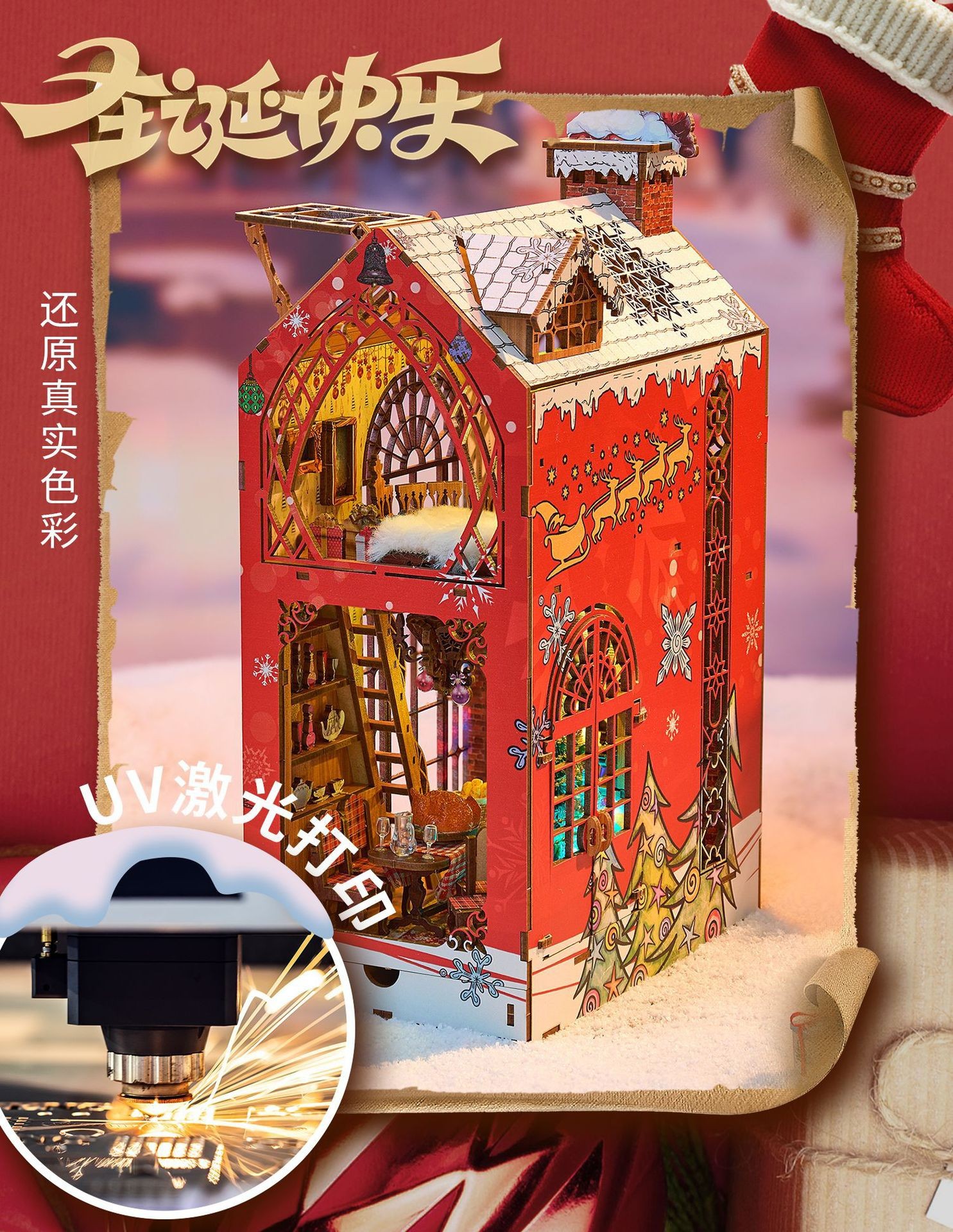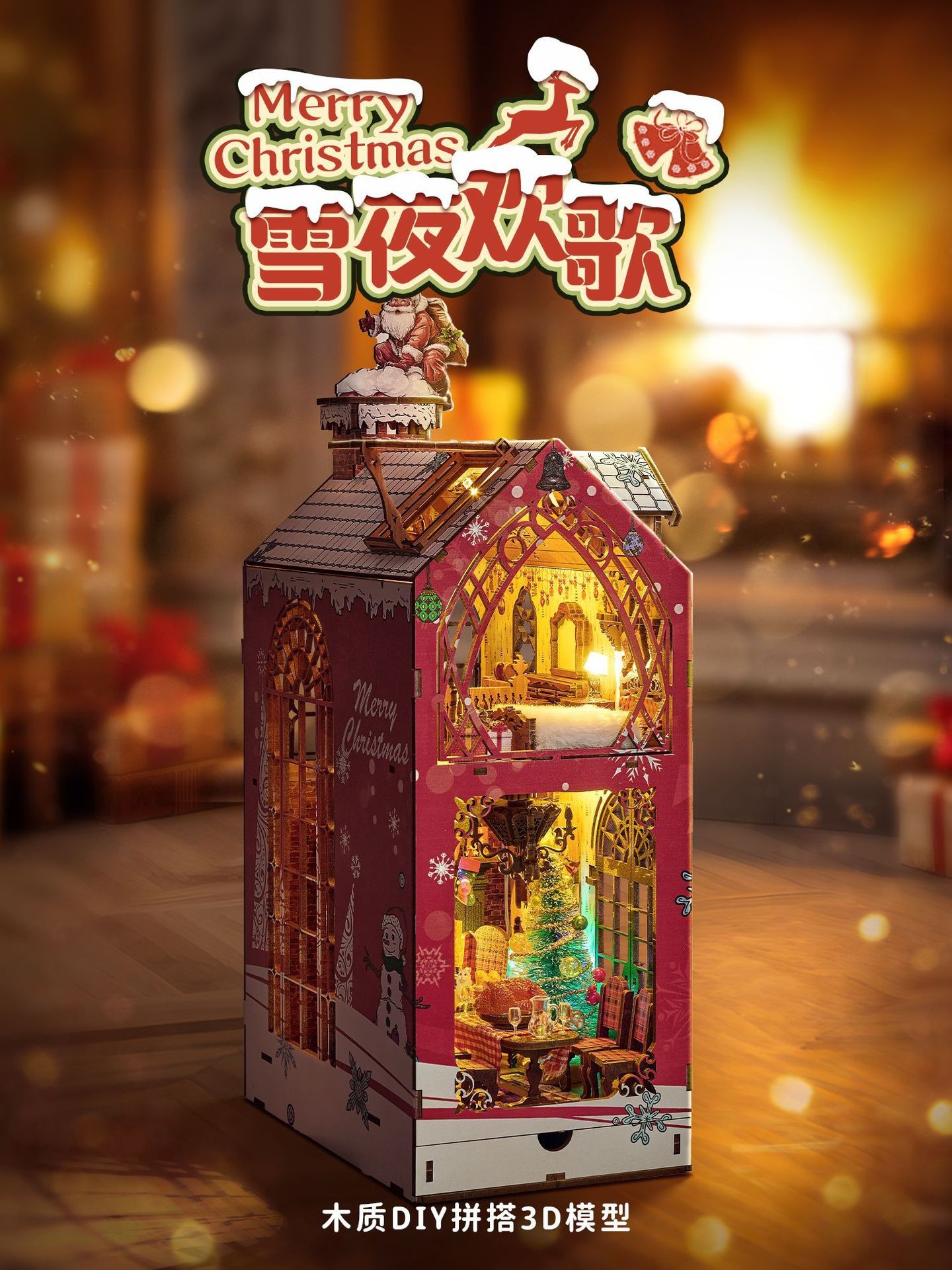 DIY 오두막 눈 밤 노래 3D 수제 조립 책 스탠드 마이크로 모델 건물 장난감 특별 선물스토어 가기