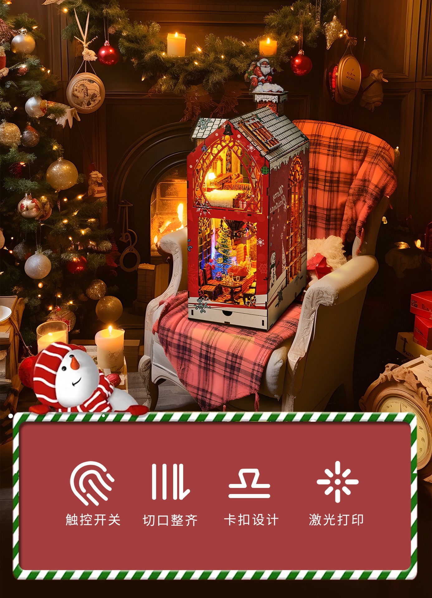 DIY 오두막 눈 밤 노래 3D 수제 조립 책 스탠드 마이크로 모델 건물 장난감 특별 선물