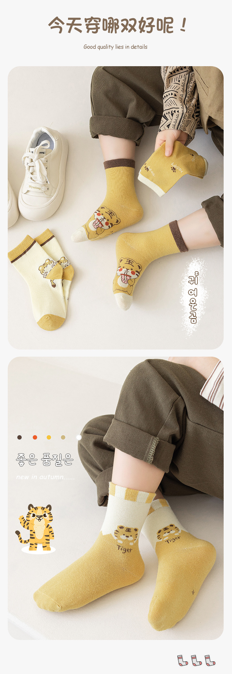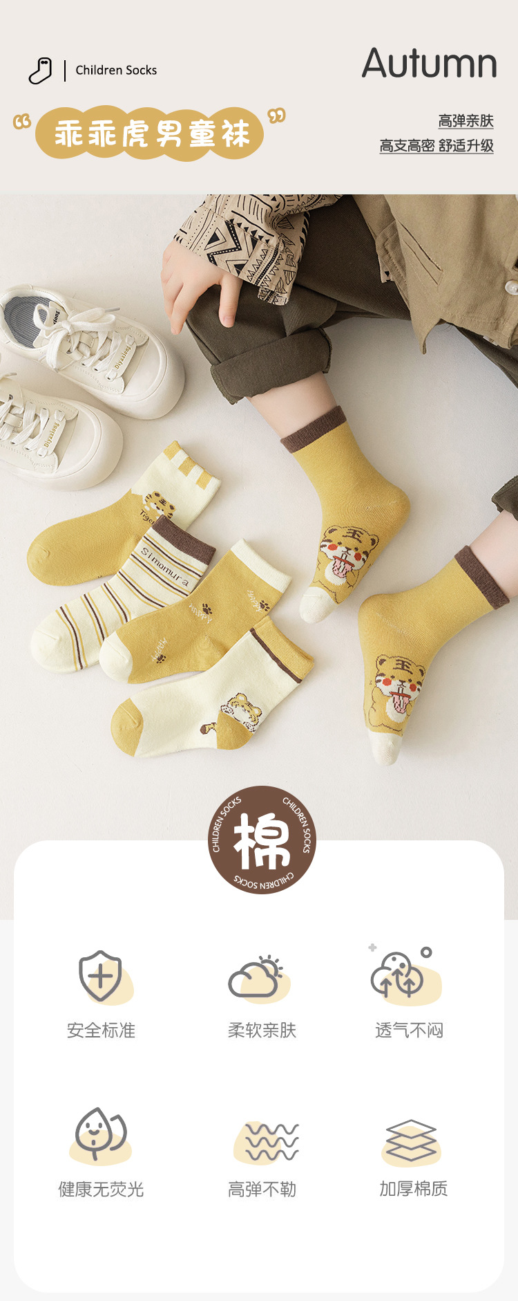 소년 양말 가을과 겨울 남성 아기 양말 부드러운 피부 친화적 인 학생 양말 높은 탄성 클래스 면화 순종 호랑이 어린이 양말 도매스토어 가기
