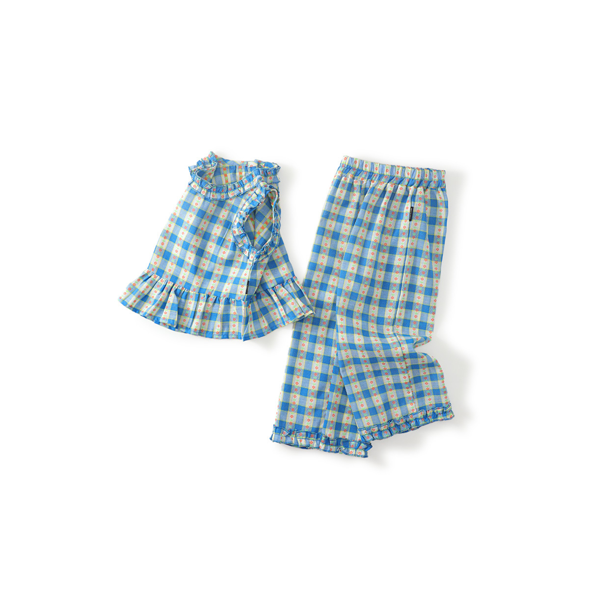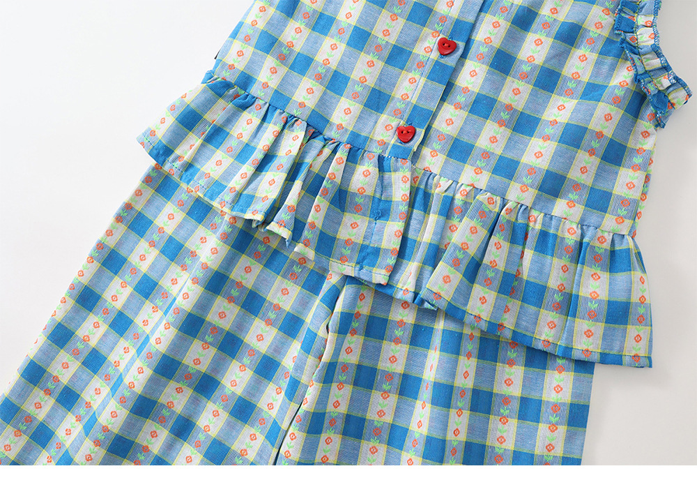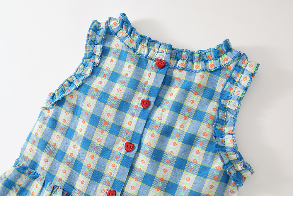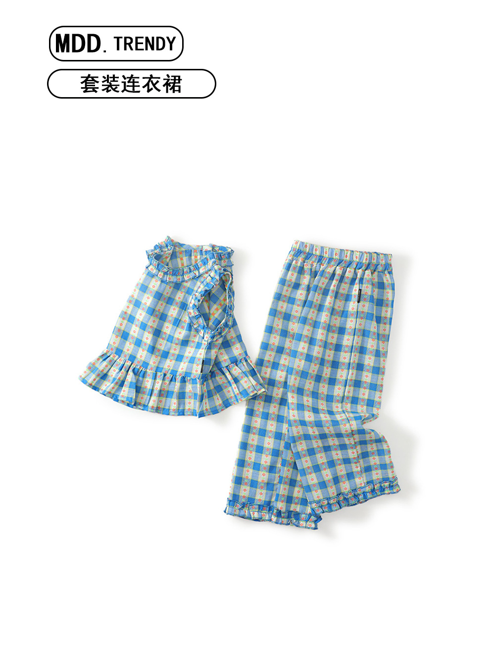 MDD 한국 스타일 2024 새로운 여름 소녀 격자 무늬 원피스 소녀 아기 소녀 스타일 바느질 휴가 원피스 공주 원피스