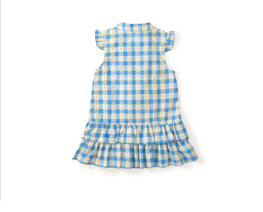MDD 한국 스타일 2024 새로운 여름 소녀 격자 무늬 원피스 소녀 아기 소녀 스타일 바느질 휴가 원피스 공주 원피스스토어 가기