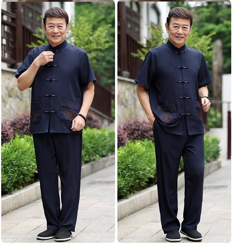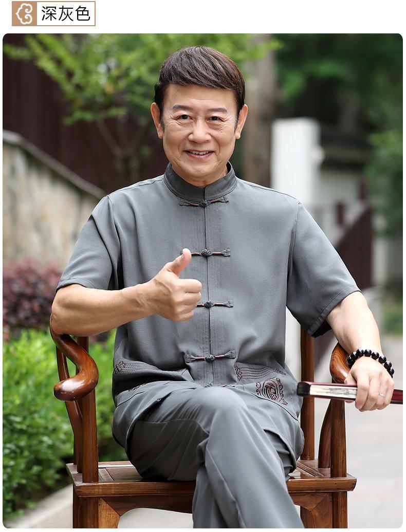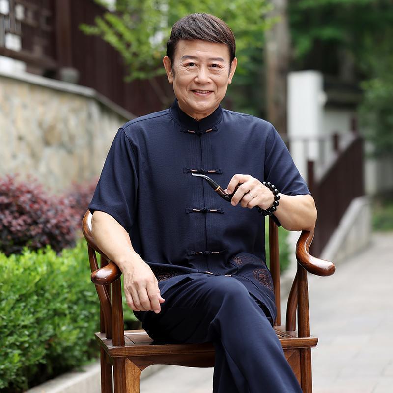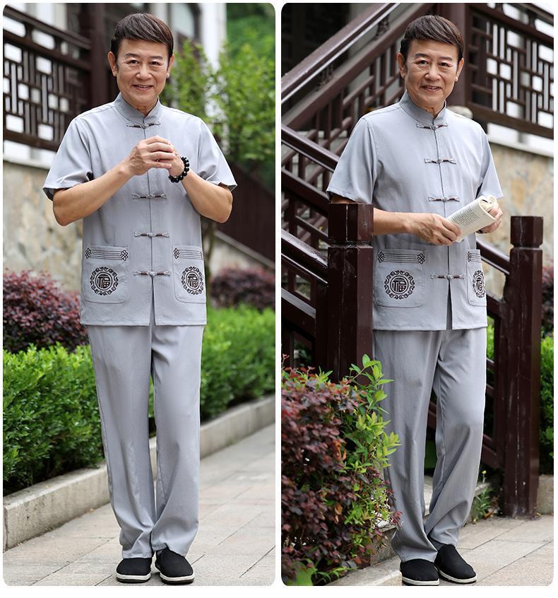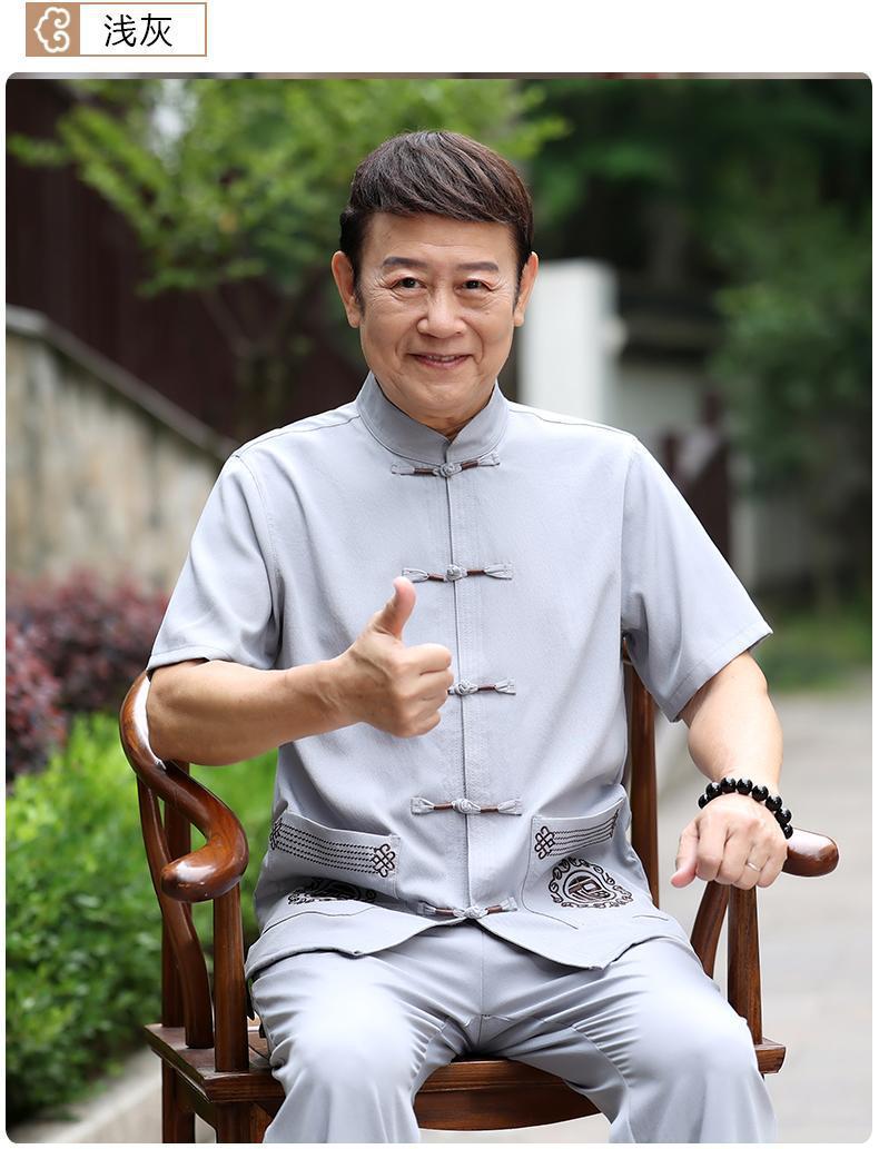 Tang 세트 남성 중년 및 노인 아버지의 여름 반팔 세트 중국식 할아버지의 여름 면화와 노인 린넨 얇은 옷스토어 가기