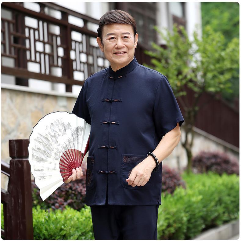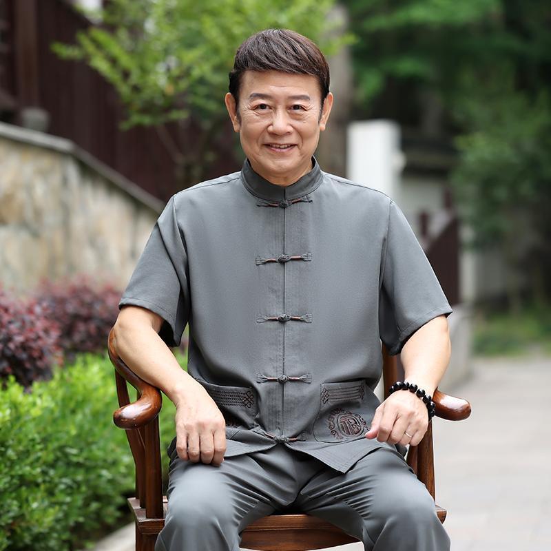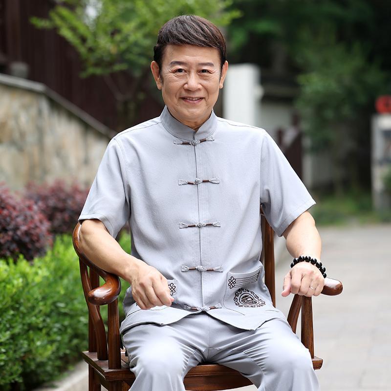 Tang 세트 남성 중년 및 노인 아버지의 여름 반팔 세트 중국식 할아버지의 여름 면화와 노인 린넨 얇은 옷